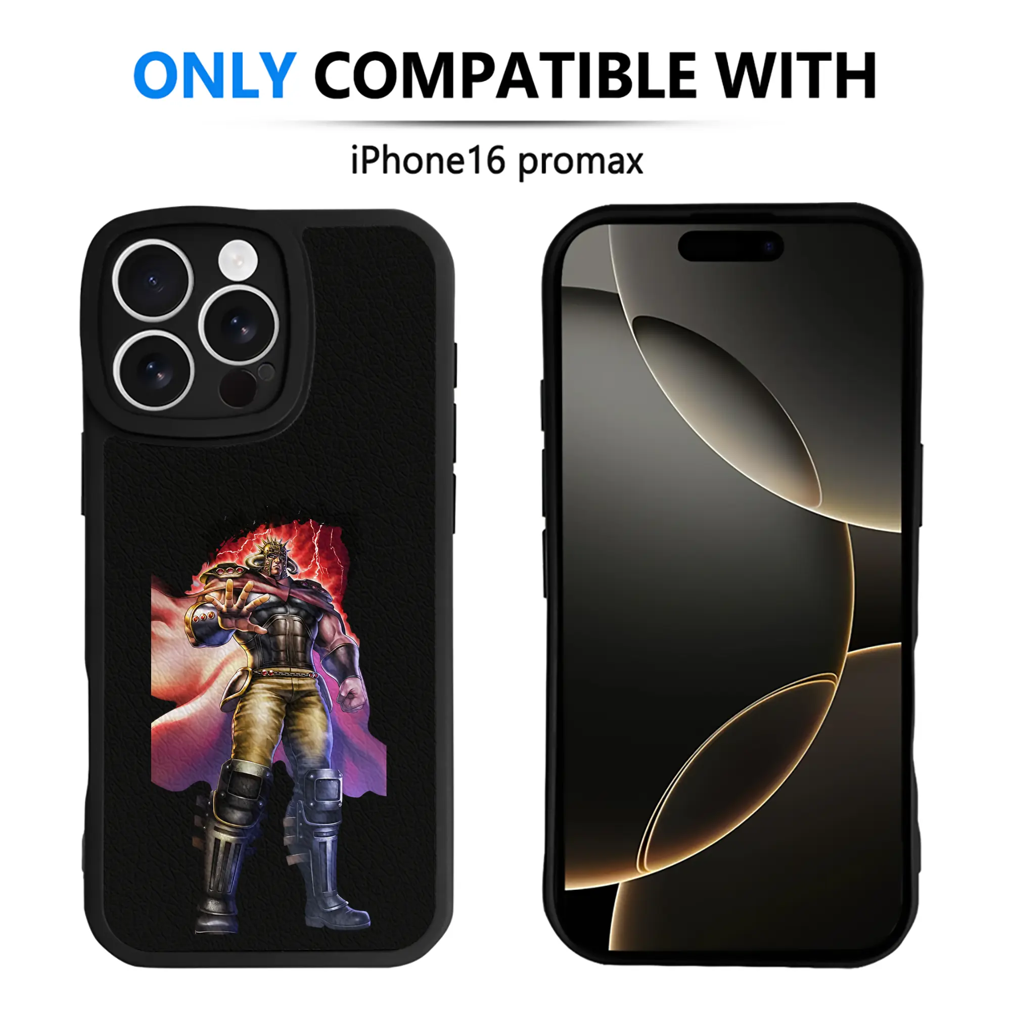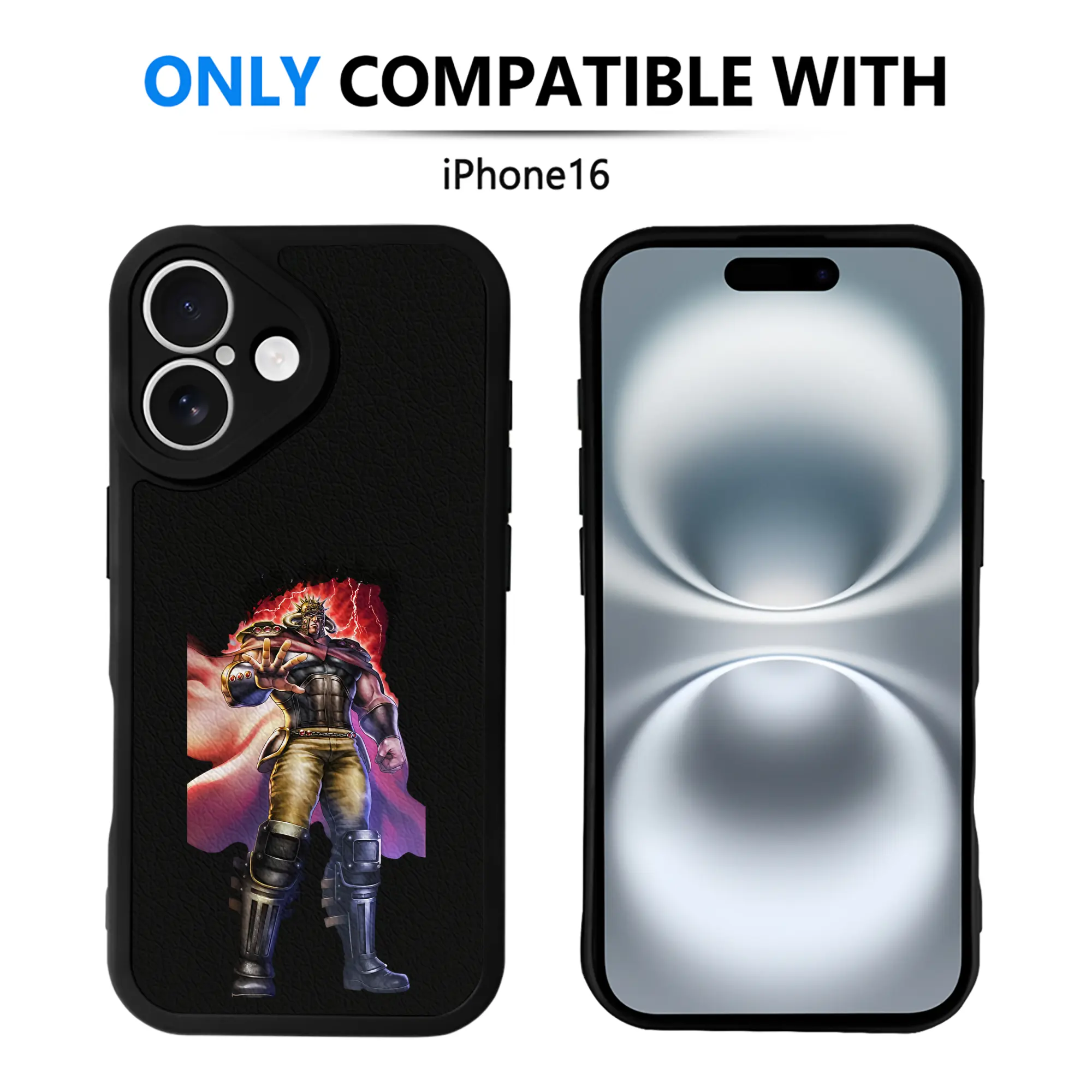 北斗の拳 グッズ,ラオウ - IPhone 16シリーズ対応 ・ シリコンスマホケース ・ レザー調 ・ 高精度フィット ・ 耐衝撃 ・ ワイヤレス充電対応 ・ 精密カット