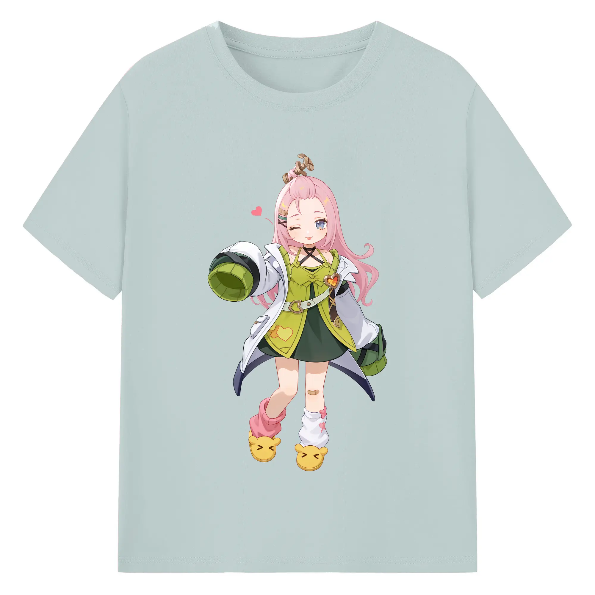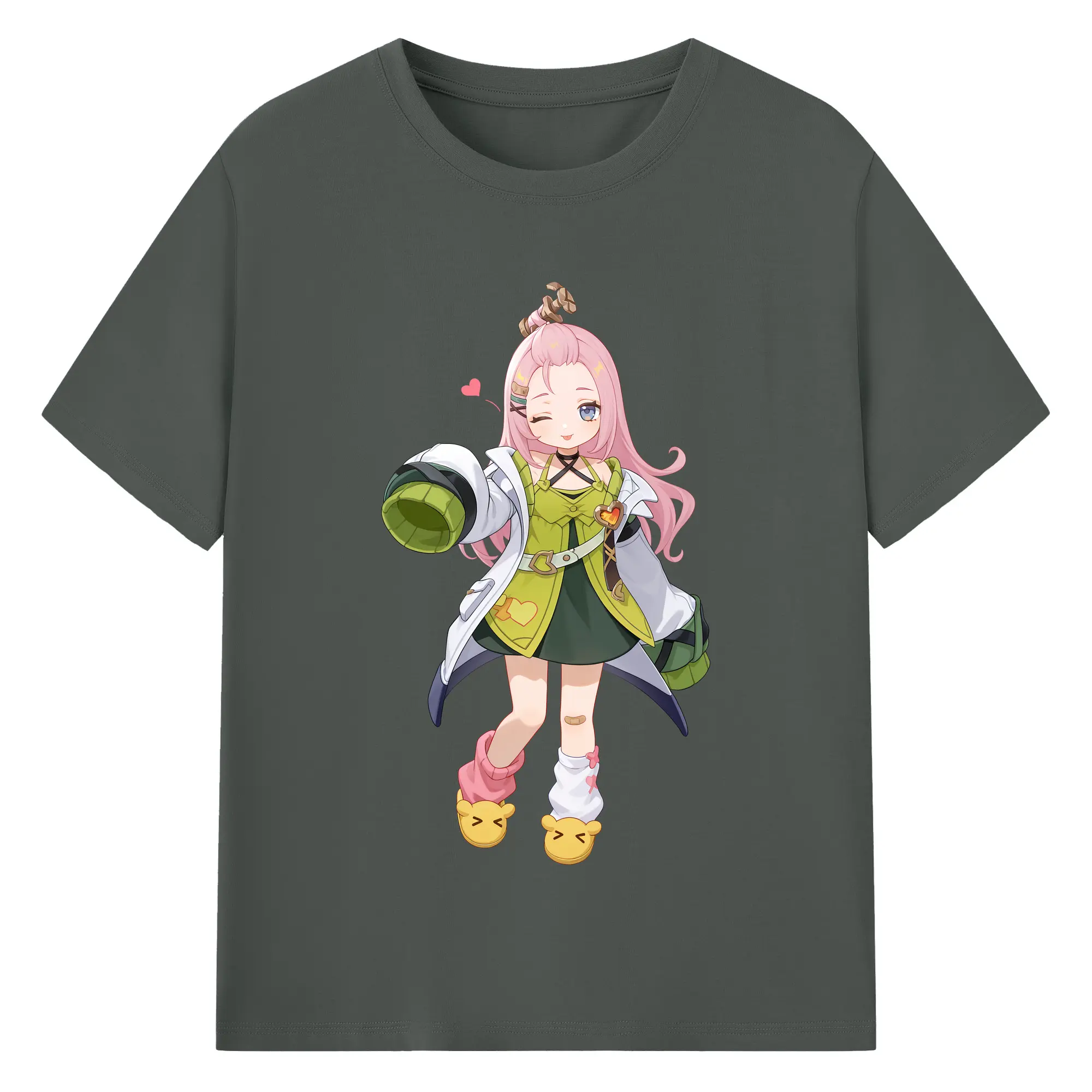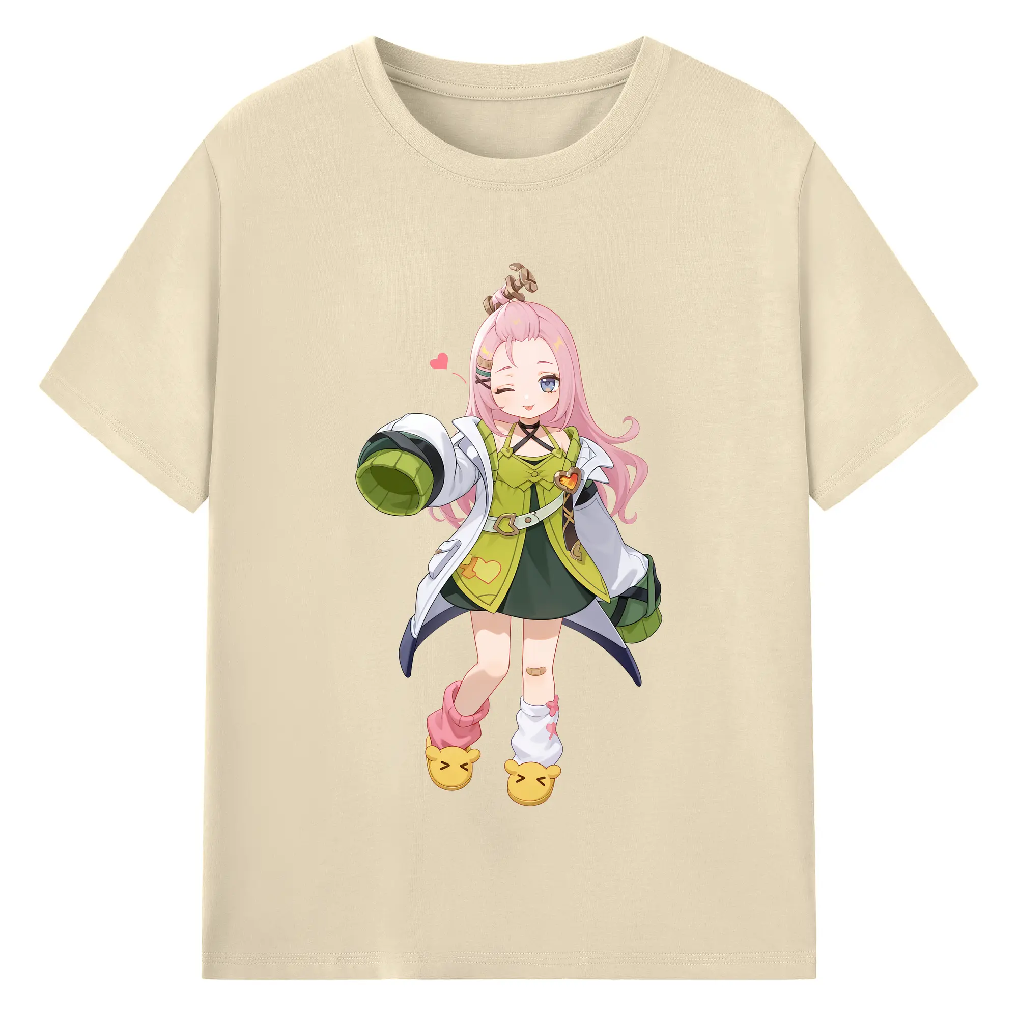 原 神 グッズ アイノ - 綿100% ヴィンテージ風 半袖Tシャツ ・ フロントプリント ・ 柔らか肌触り ・ 通気性 快適 ・ スポーツ カジュアル 外出用