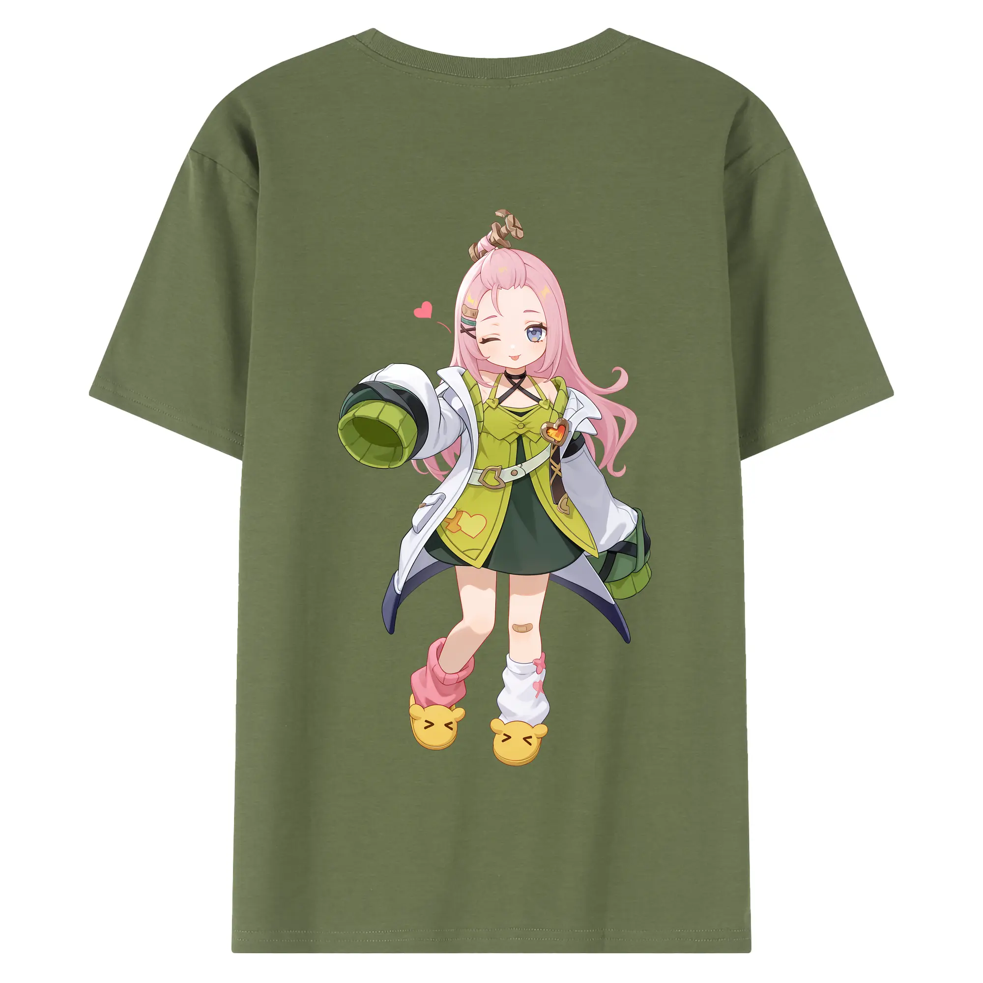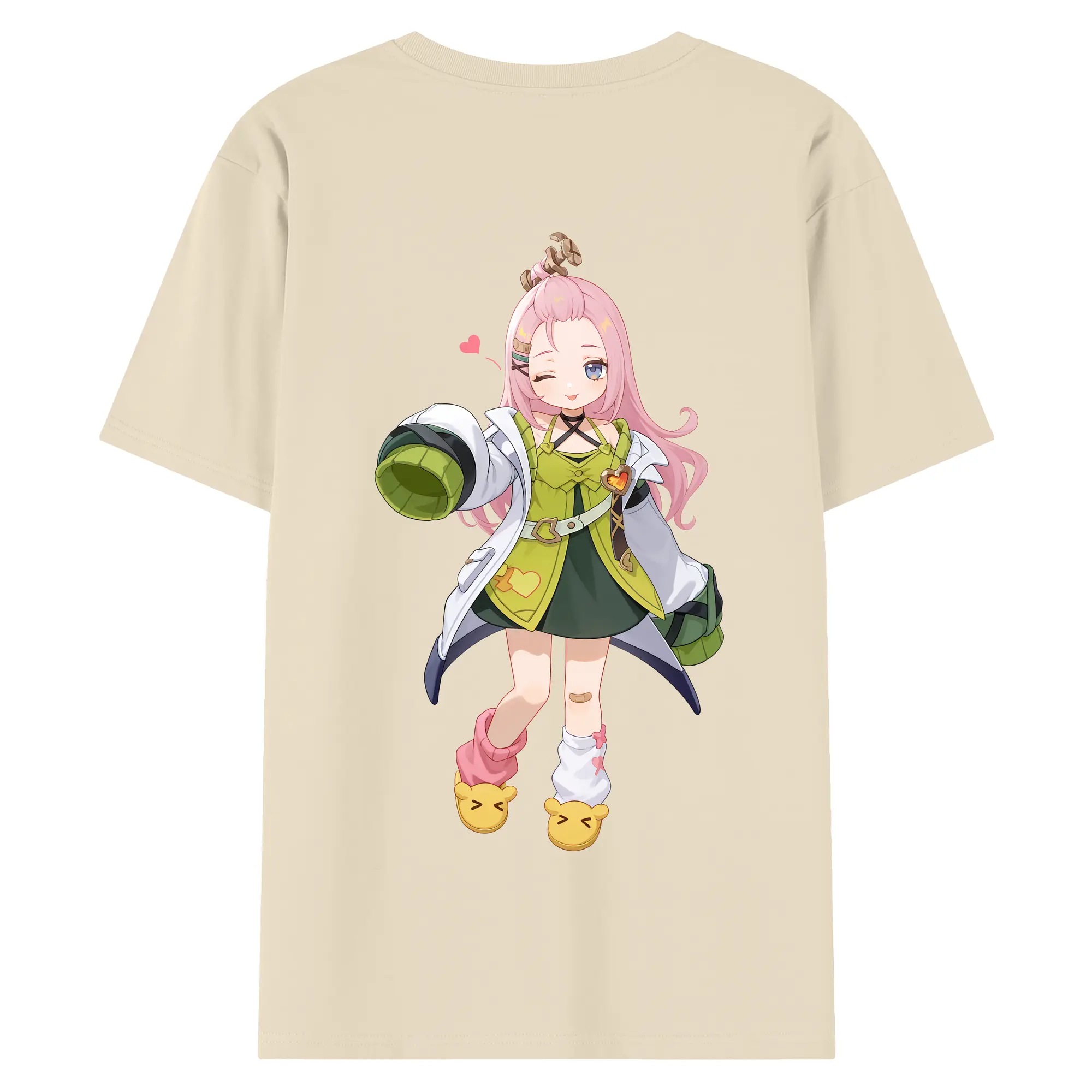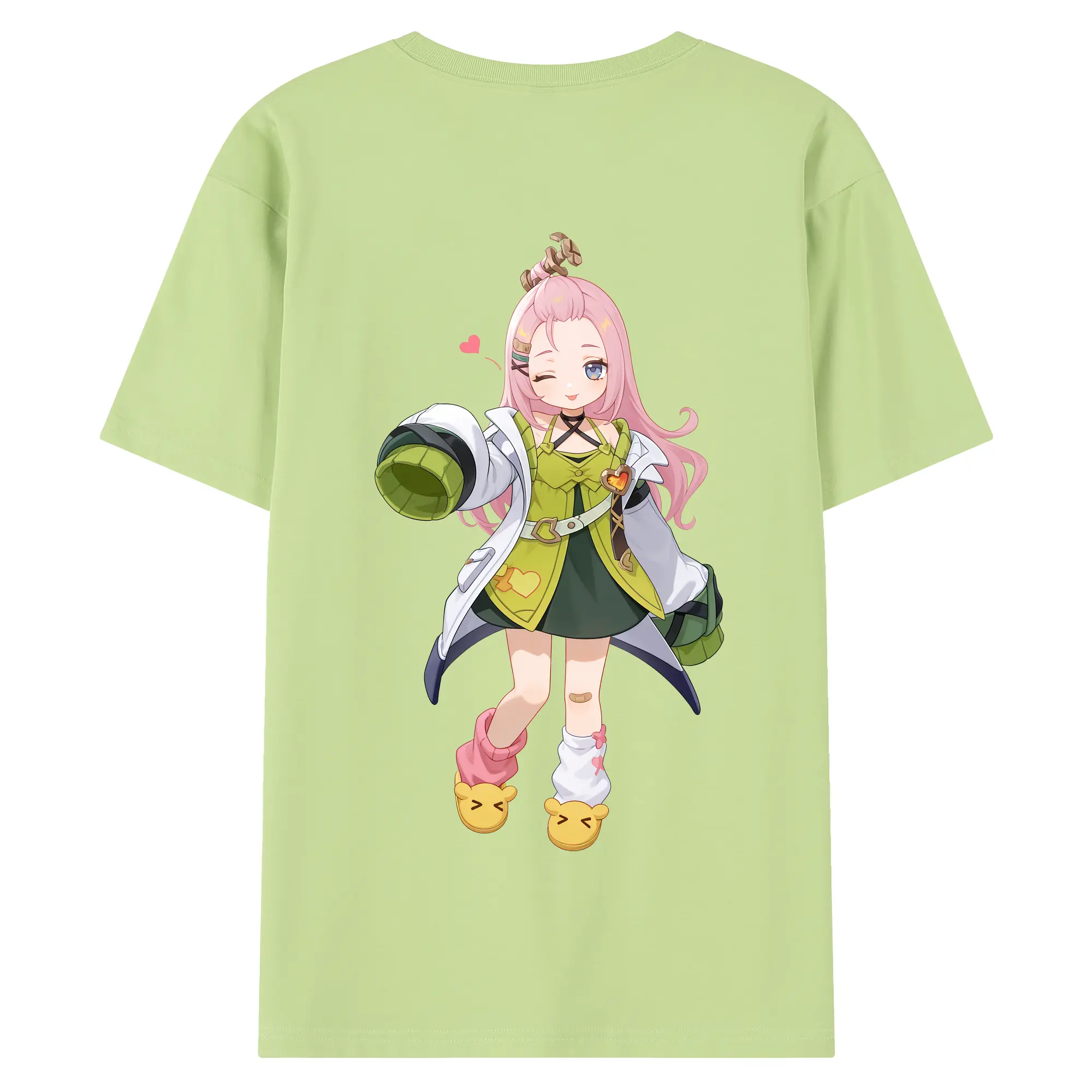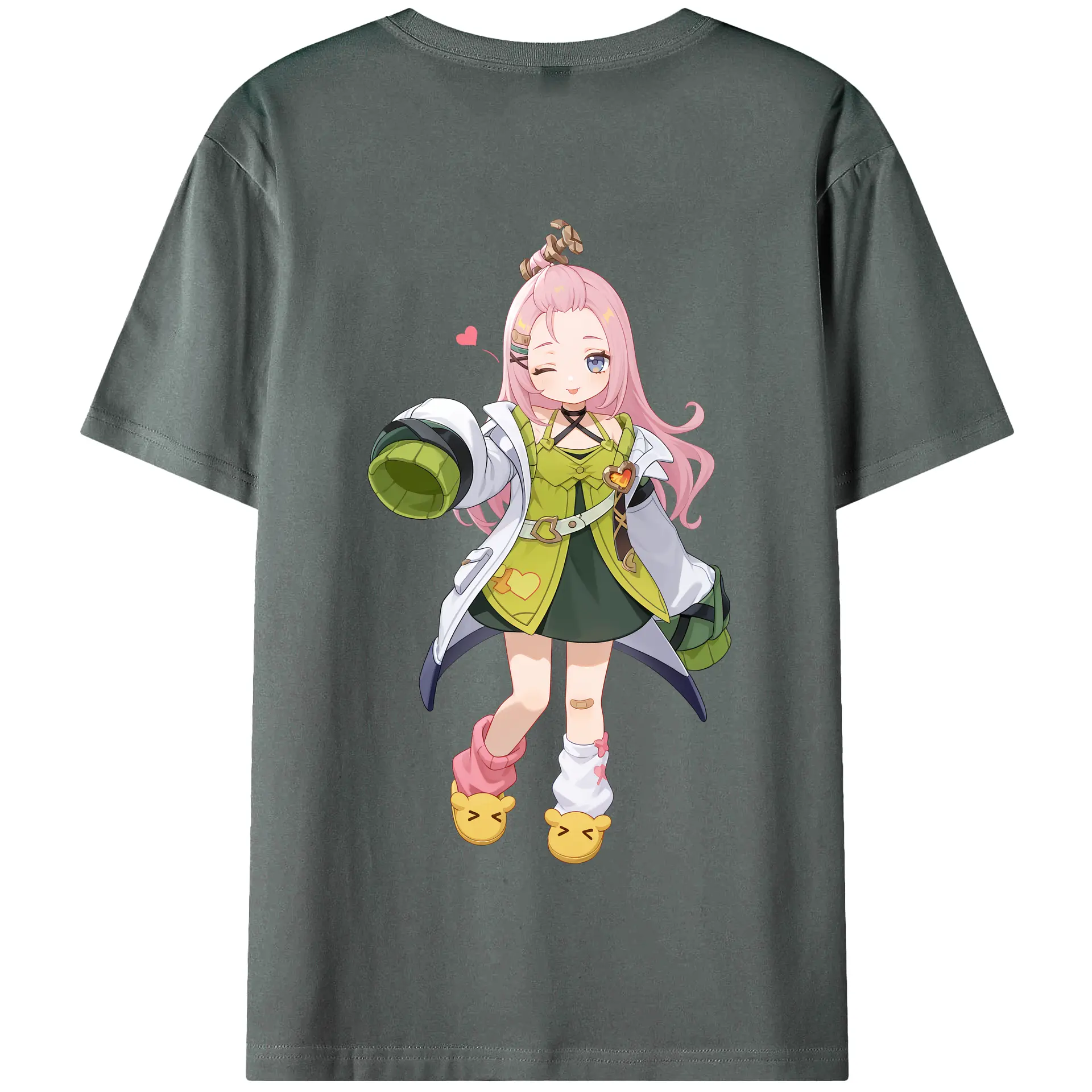 原 神 グッズ アイノ - 綿100% ヴィンテージ風 半袖Tシャツ ・ フロントプリント ・ 柔らか肌触り ・ 通気性 快適 ・ スポーツ カジュアル 外出用