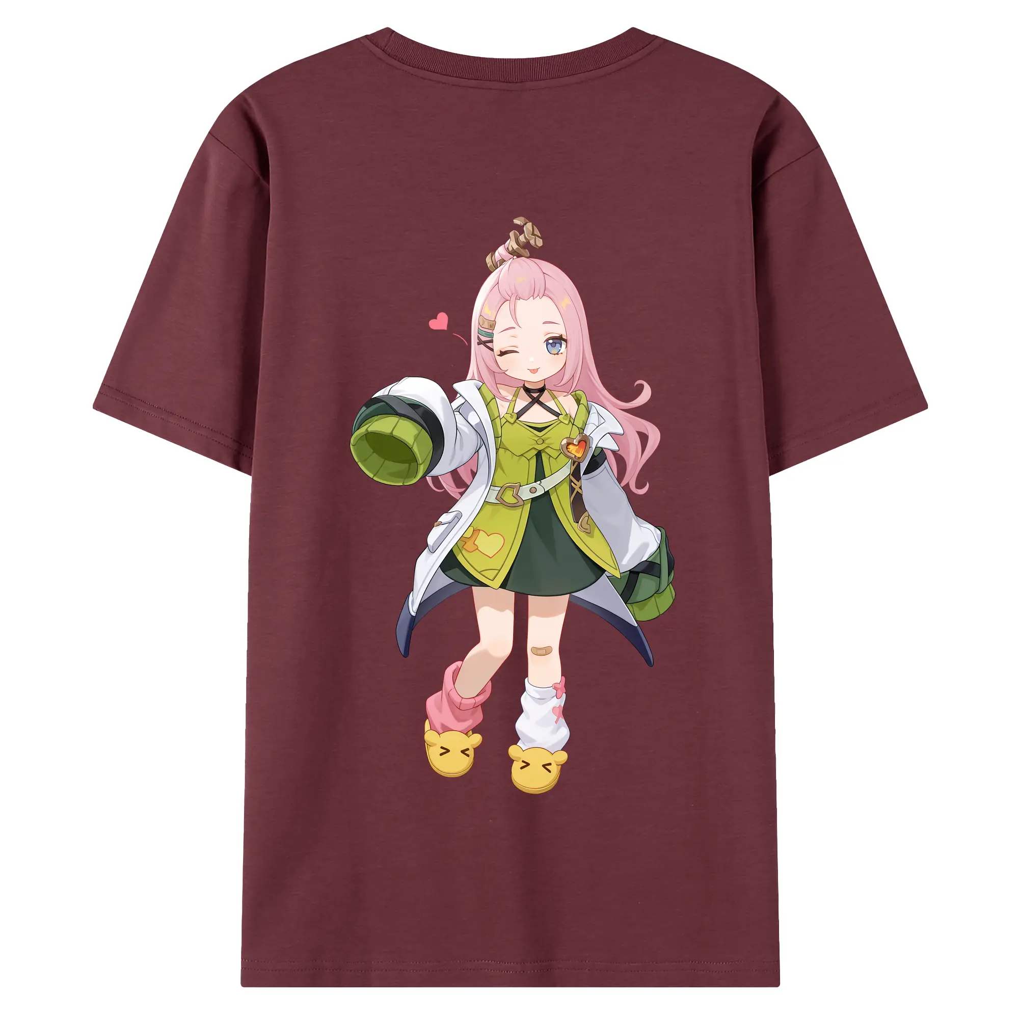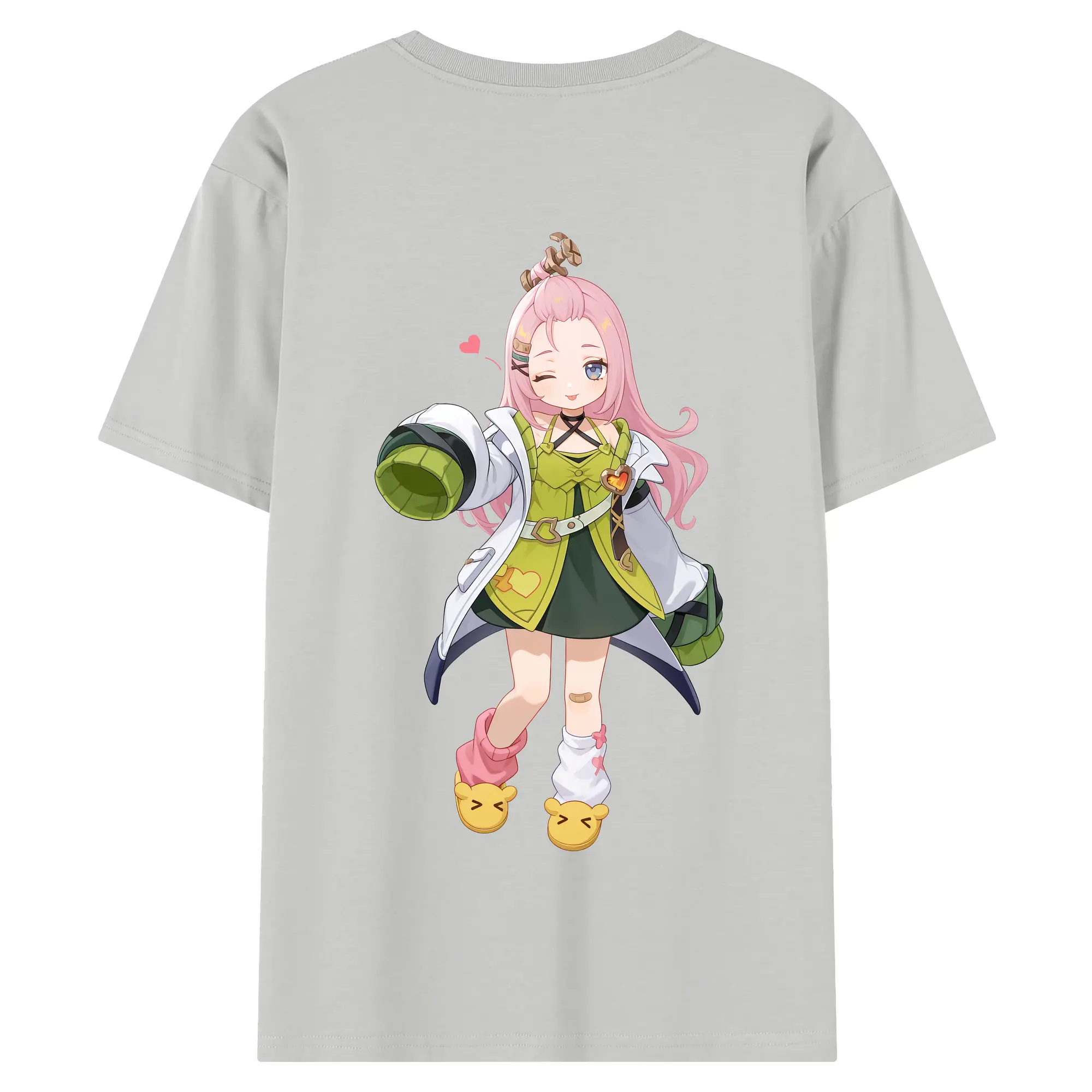 原 神 グッズ アイノ - 綿100% ヴィンテージ風 半袖Tシャツ ・ 背面プリント ・ 柔らか肌触り ・ 通気性 快適 ・ スポーツ カジュアル 外出用