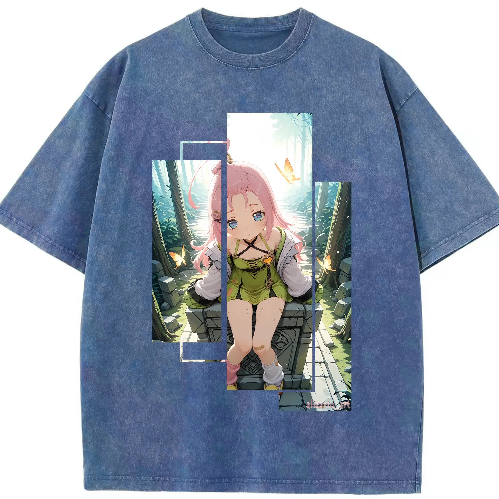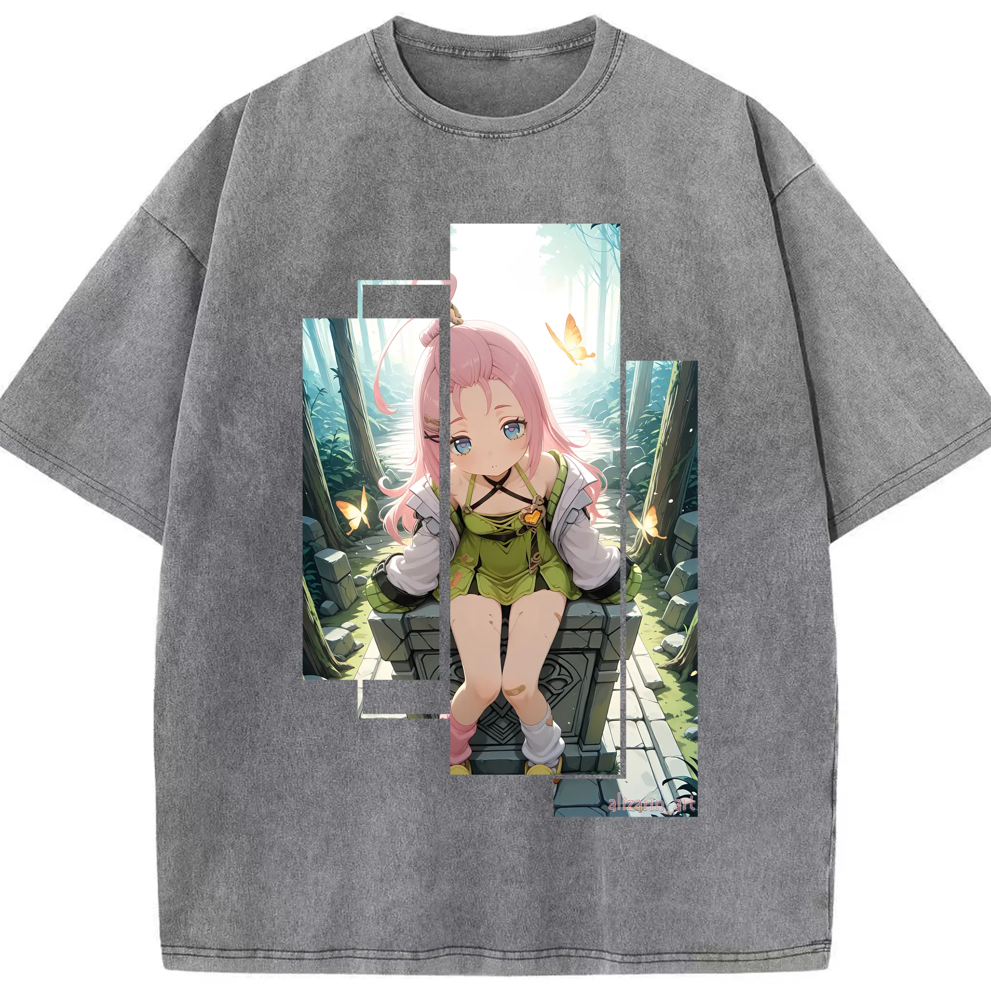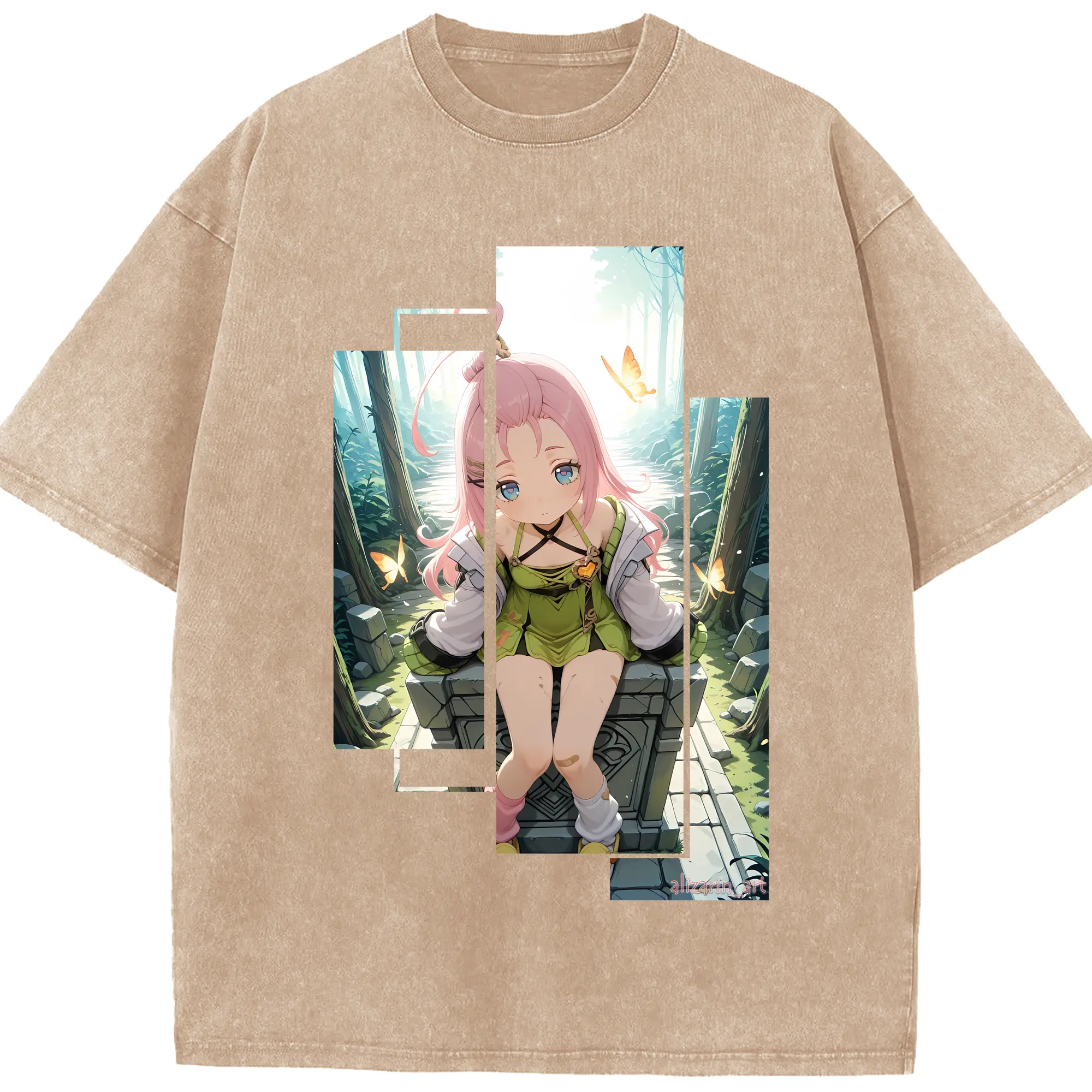 原 神 グッズ アイノ - 綿100% ヴィンテージ風 半袖Tシャツ ・ 背面プリント ・ 柔らか肌触り ・ 通気性 快適 ・ スポーツ カジュアル 外出用