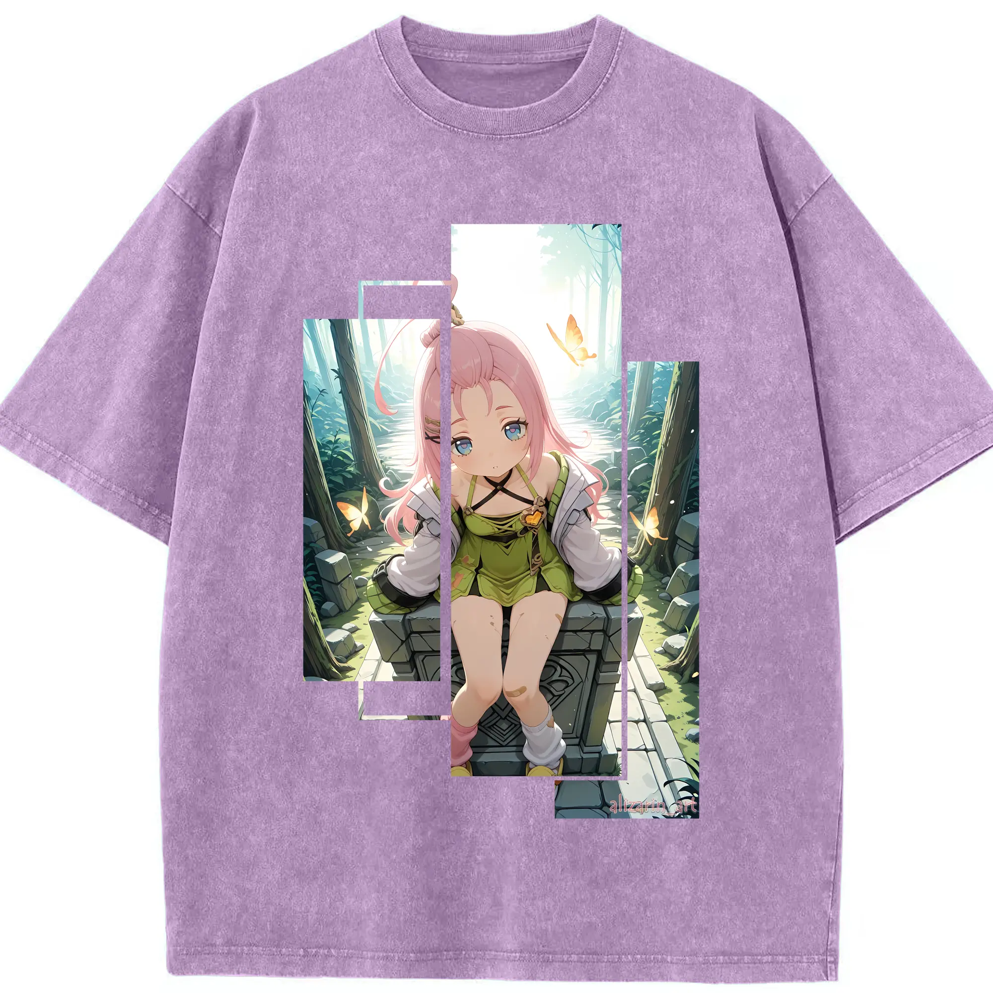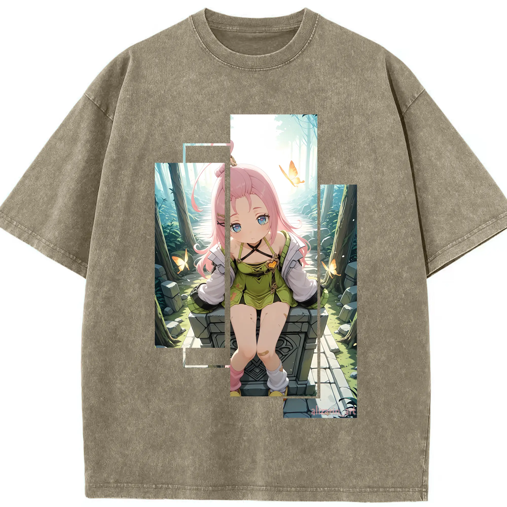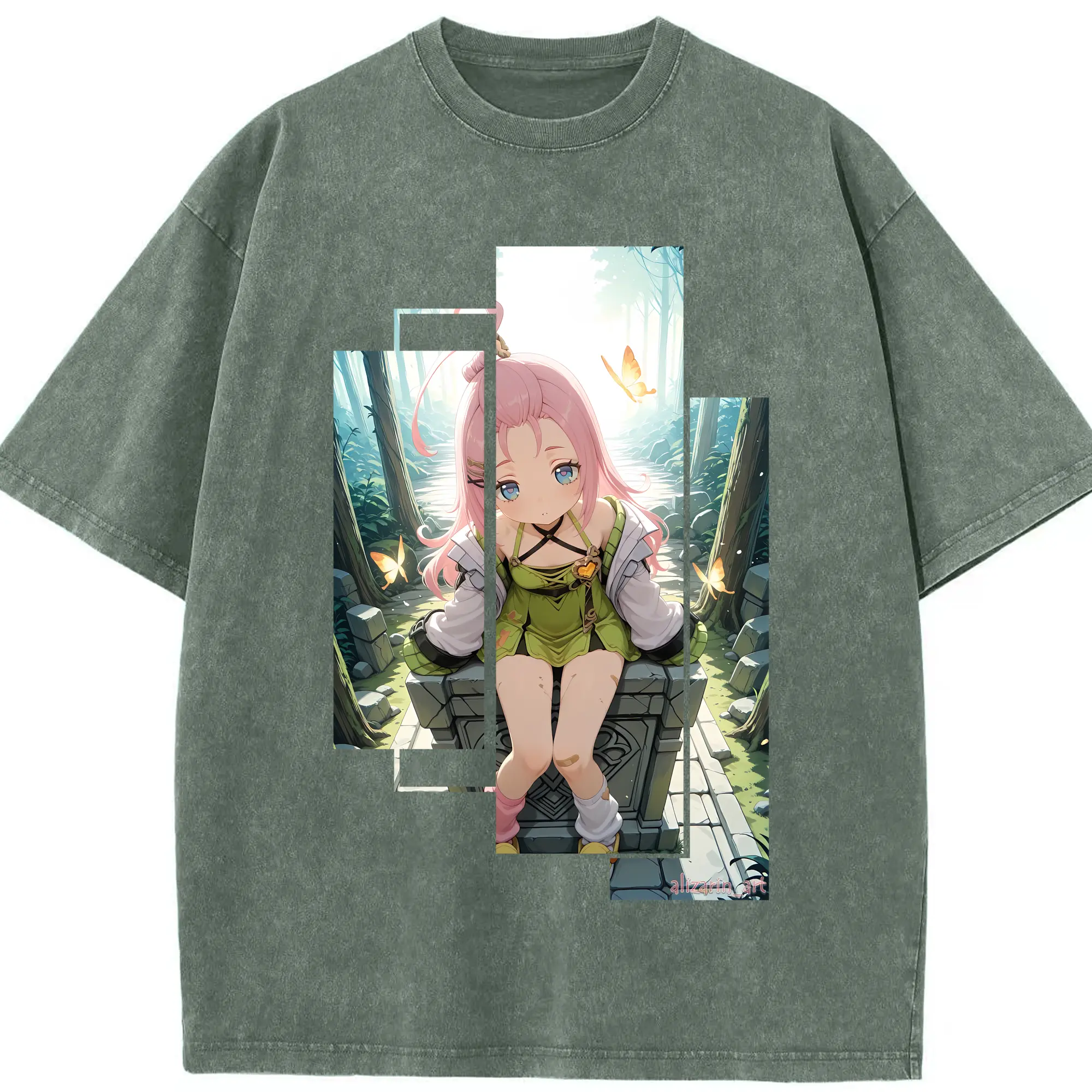 原 神 グッズ アイノ - 綿100% ヴィンテージ風 半袖Tシャツ ・ 背面プリント ・ 柔らか肌触り ・ 通気性 快適 ・ スポーツ カジュアル 外出用
