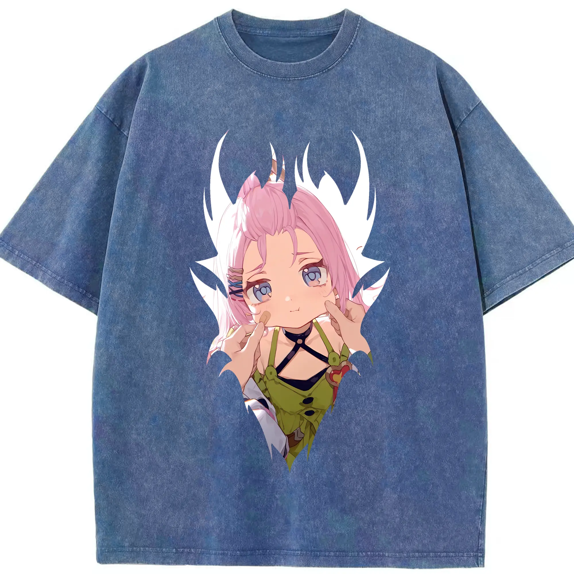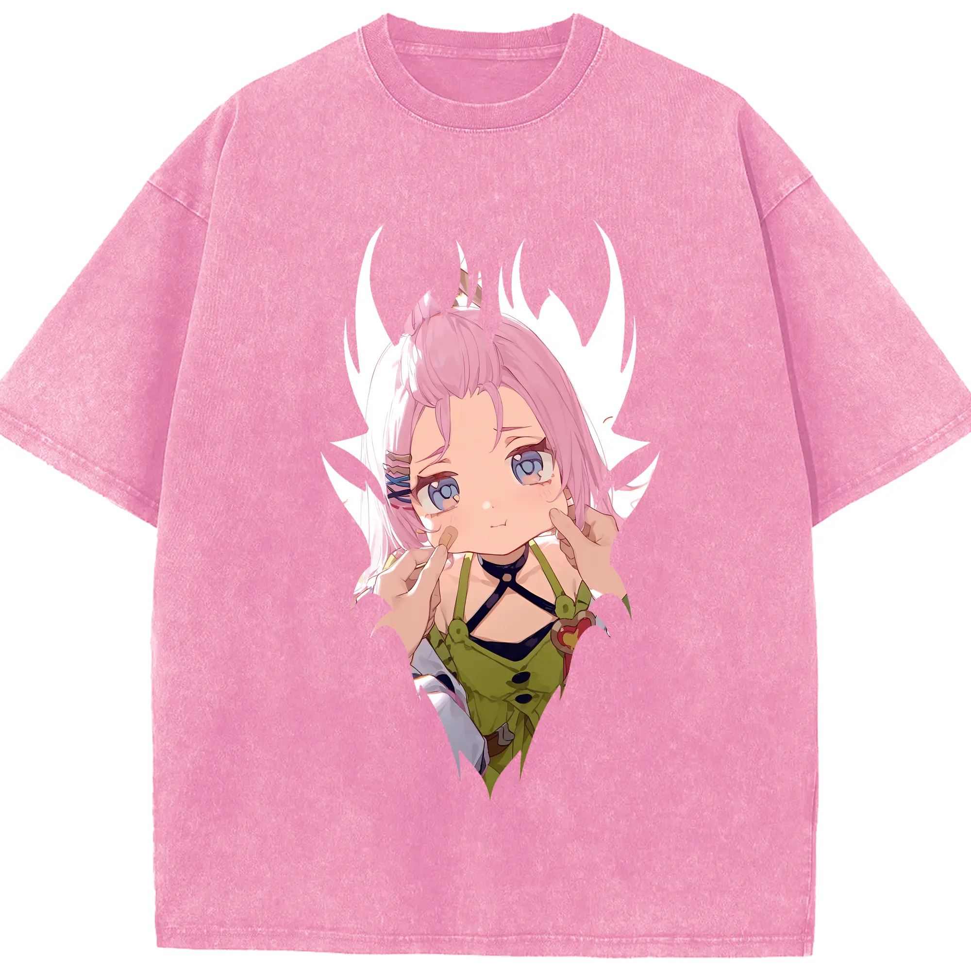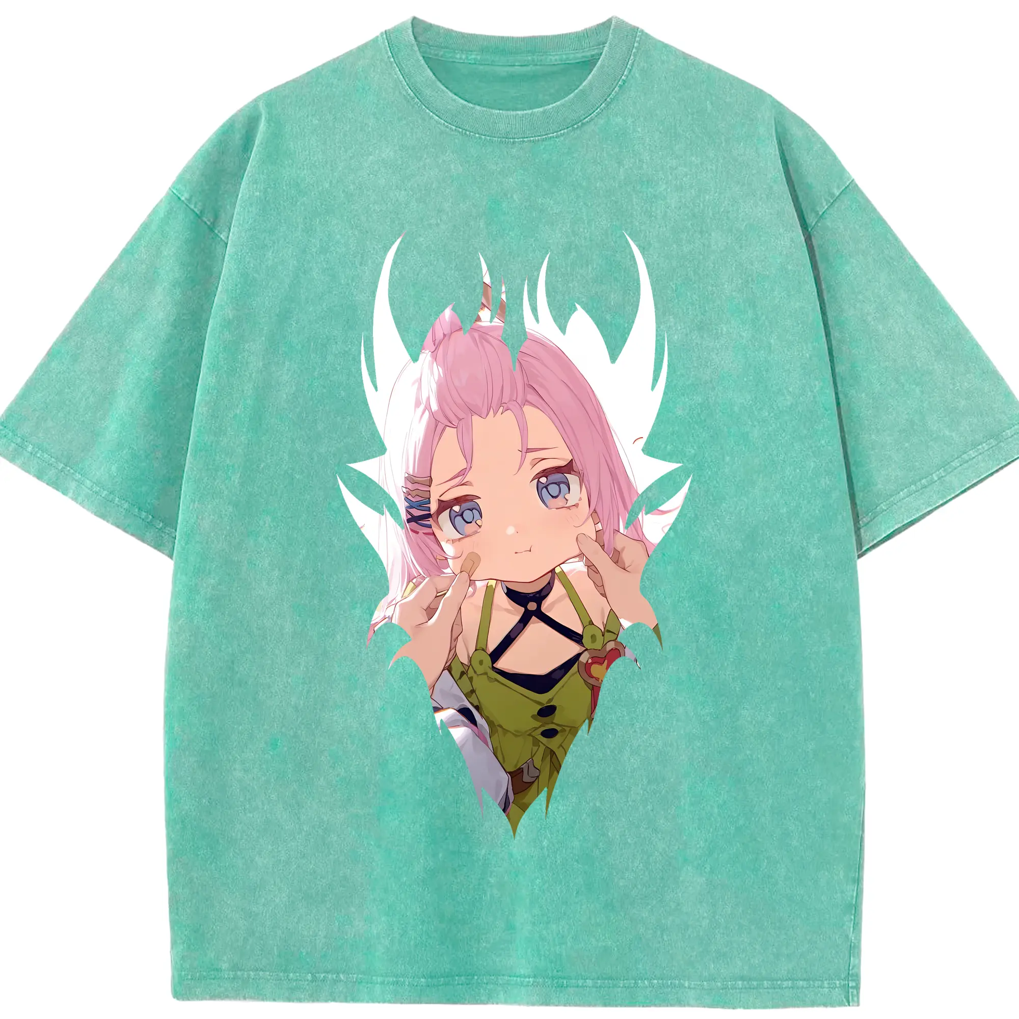 原 神 グッズ フリーナ - 綿100% ヴィンテージ風 半袖Tシャツ ・ フロントプリント ・ 柔らか肌触り ・ 通気性 快適 ・ スポーツ カジュアル 外出用