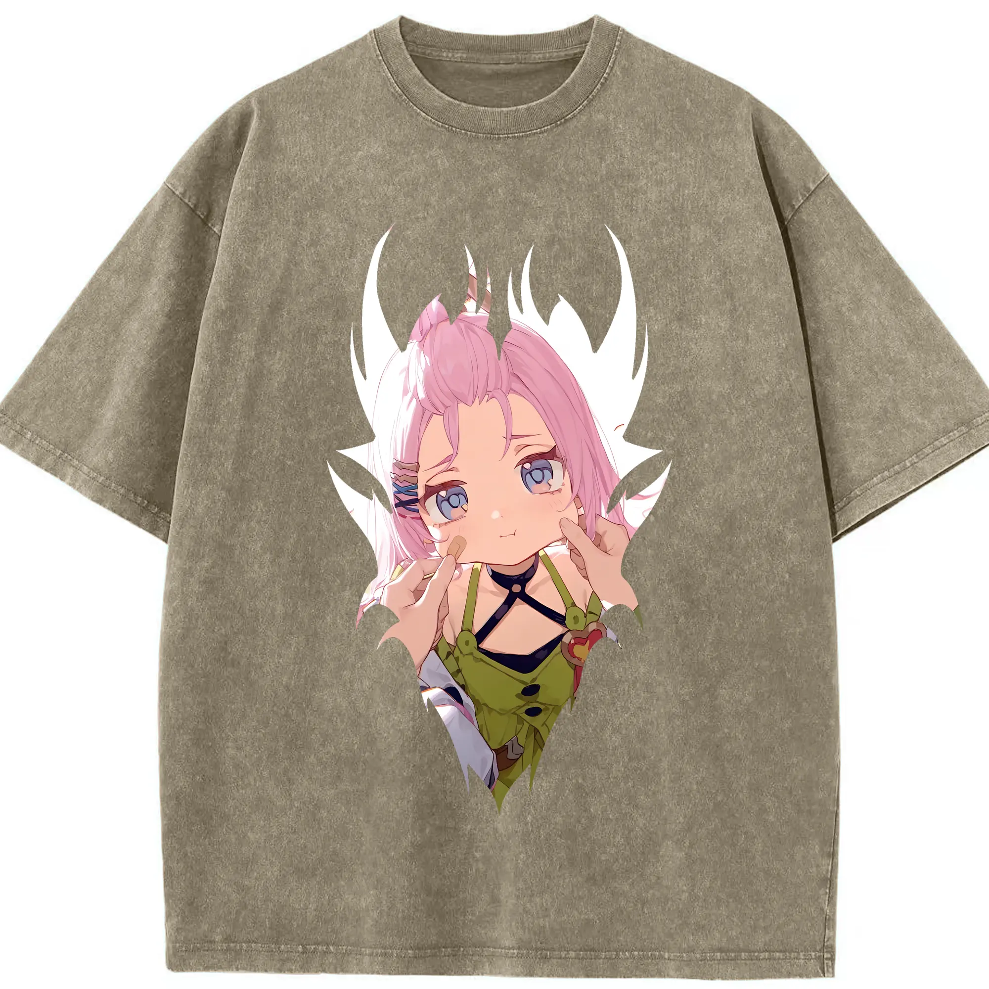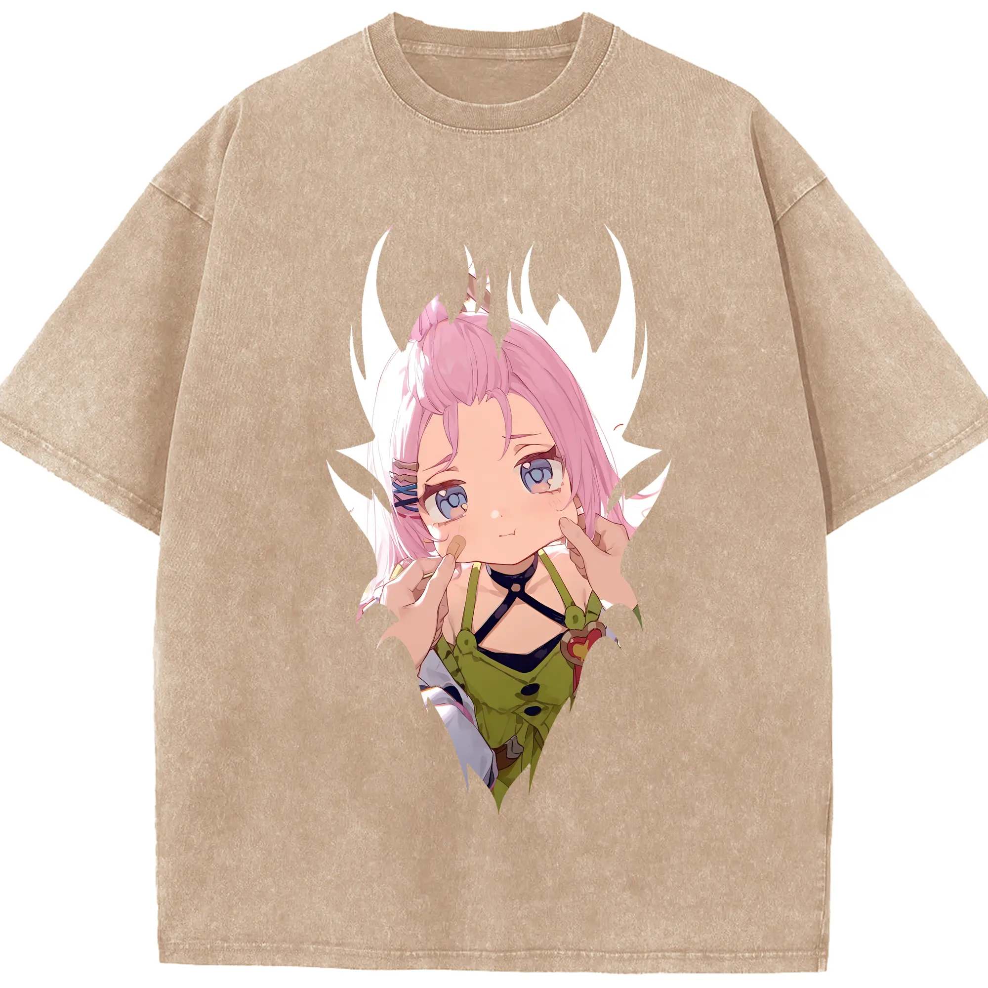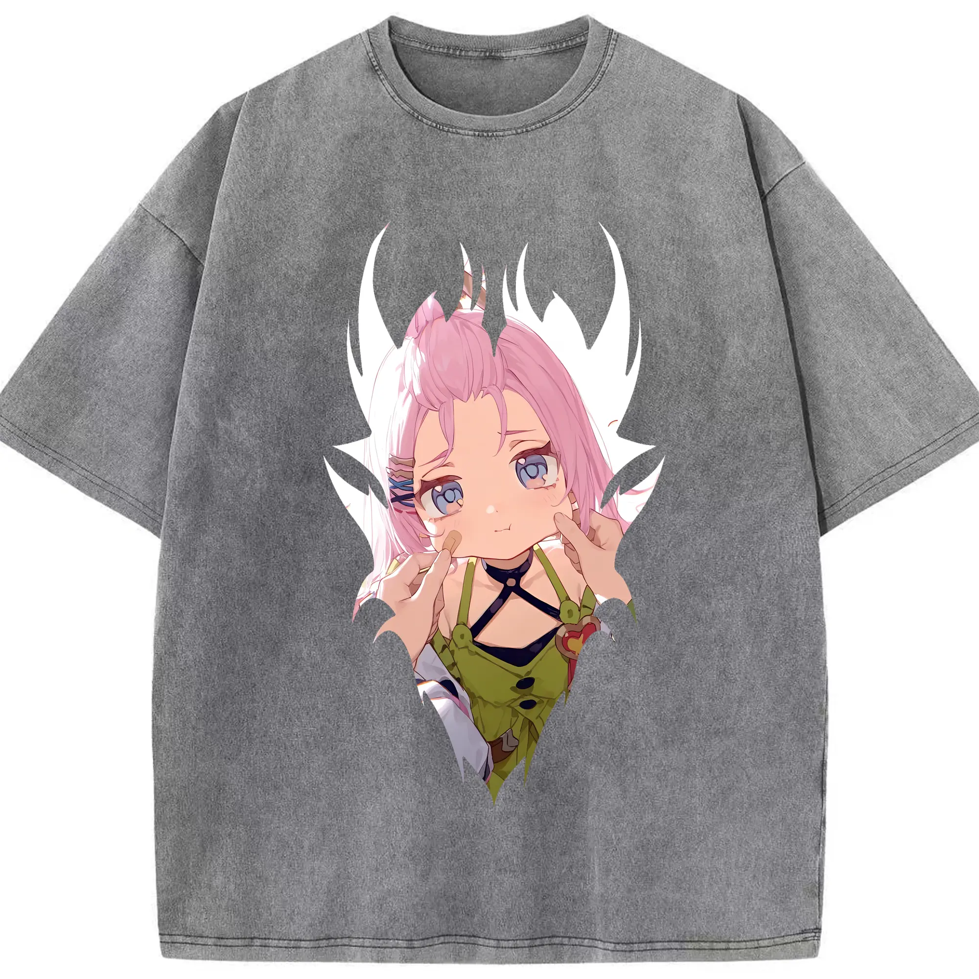 原 神 グッズ フリーナ - 綿100% ヴィンテージ風 半袖Tシャツ ・ フロントプリント ・ 柔らか肌触り ・ 通気性 快適 ・ スポーツ カジュアル 外出用