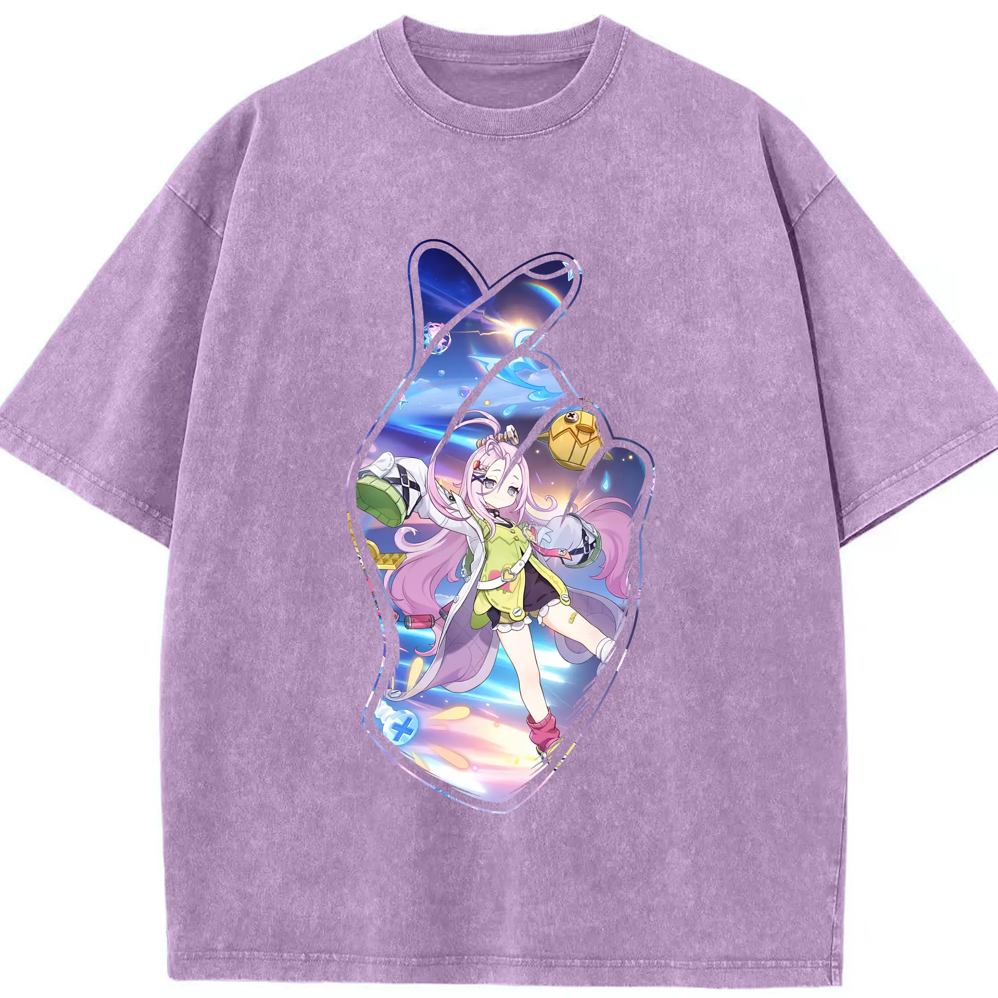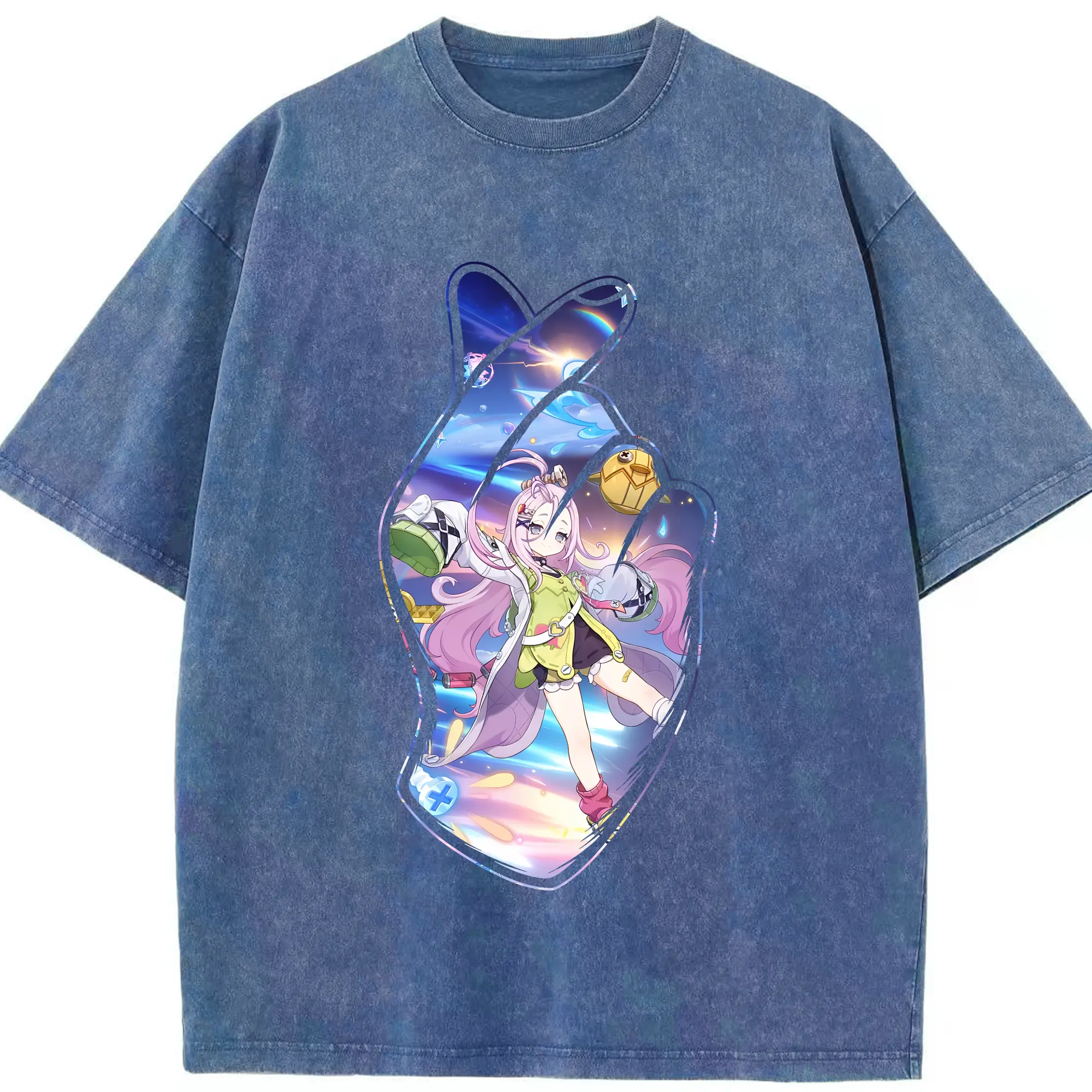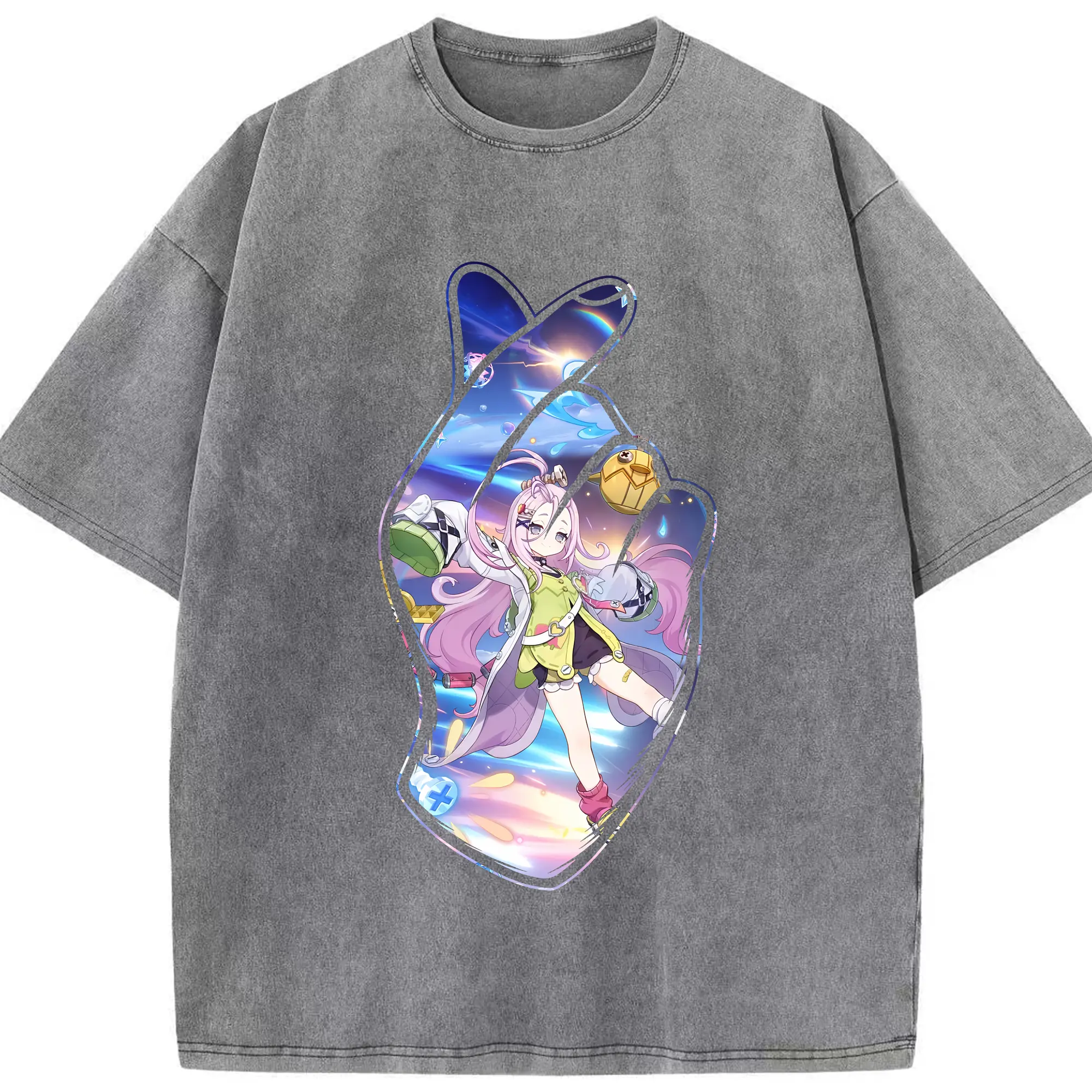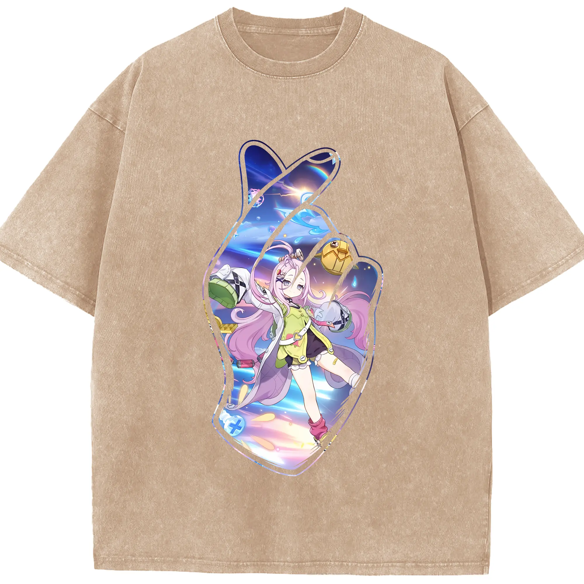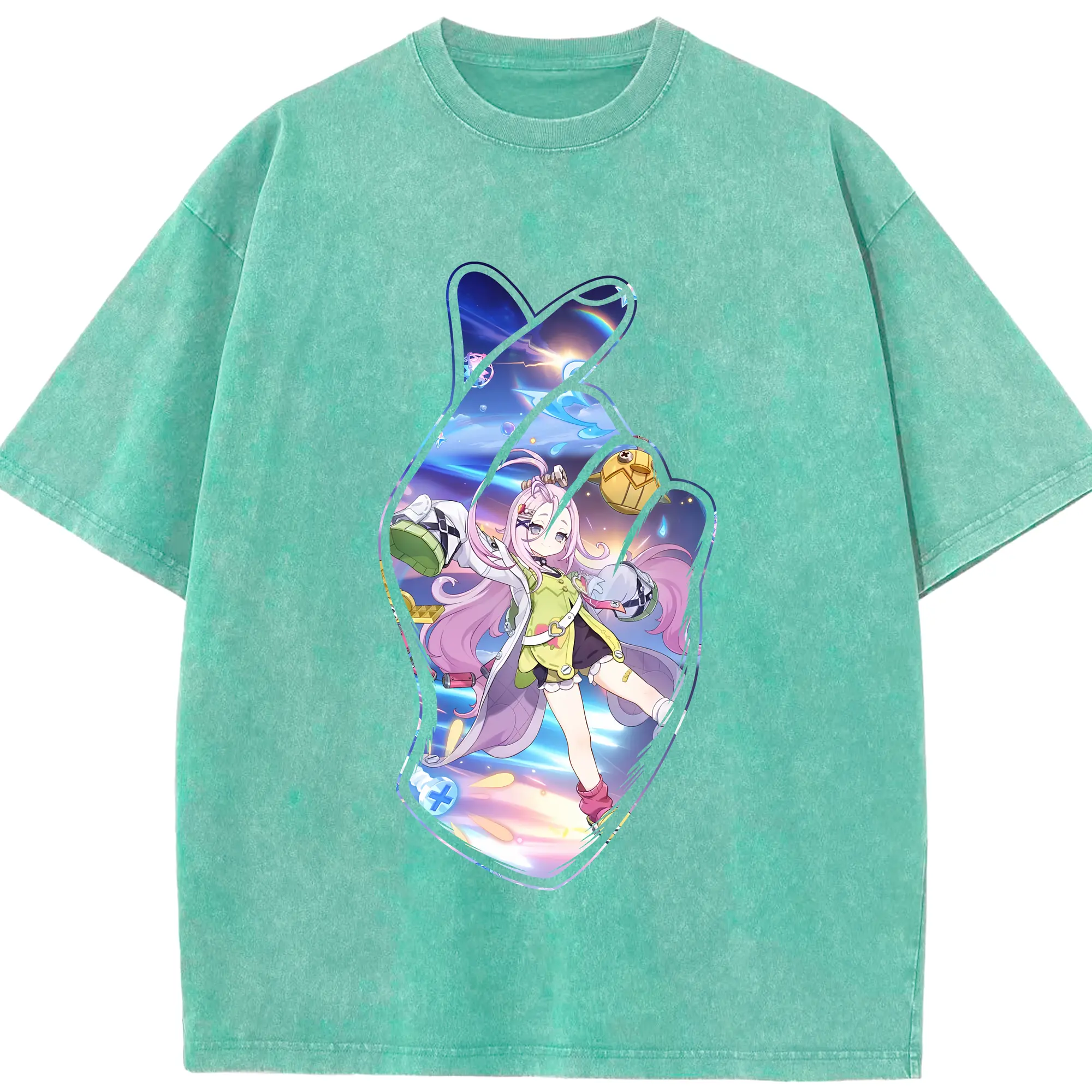 原 神 グッズ アイノ - 綿100% ヴィンテージ風 半袖Tシャツ ・ 背面プリント ・ 柔らか肌触り ・ 通気性 快適 ・ スポーツ カジュアル 外出用