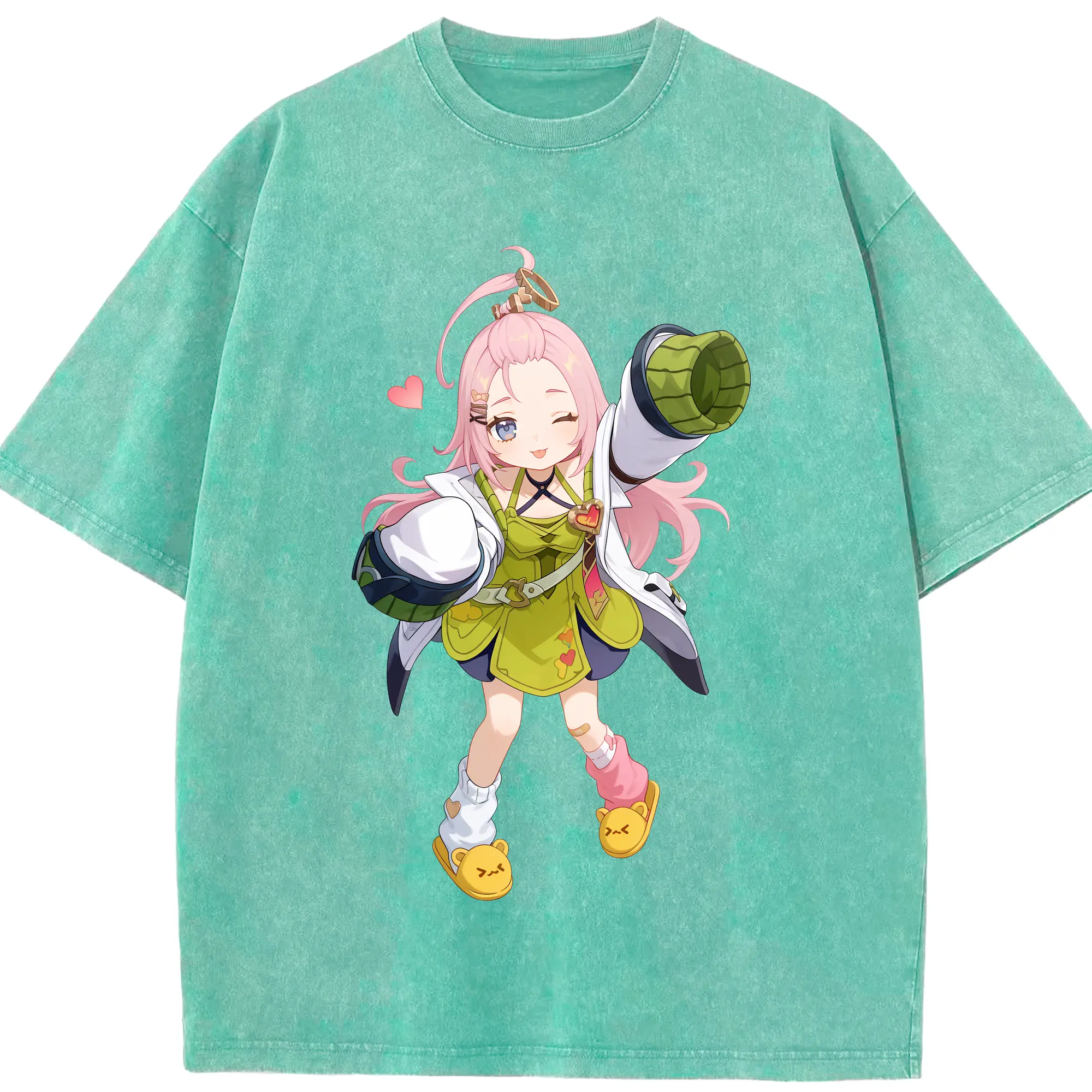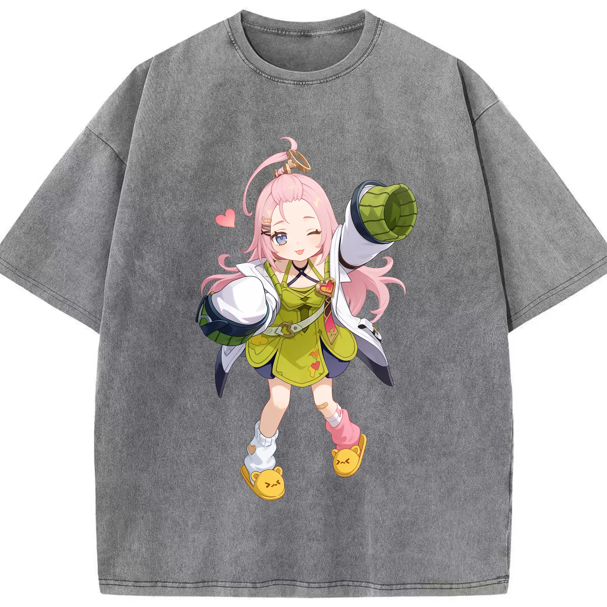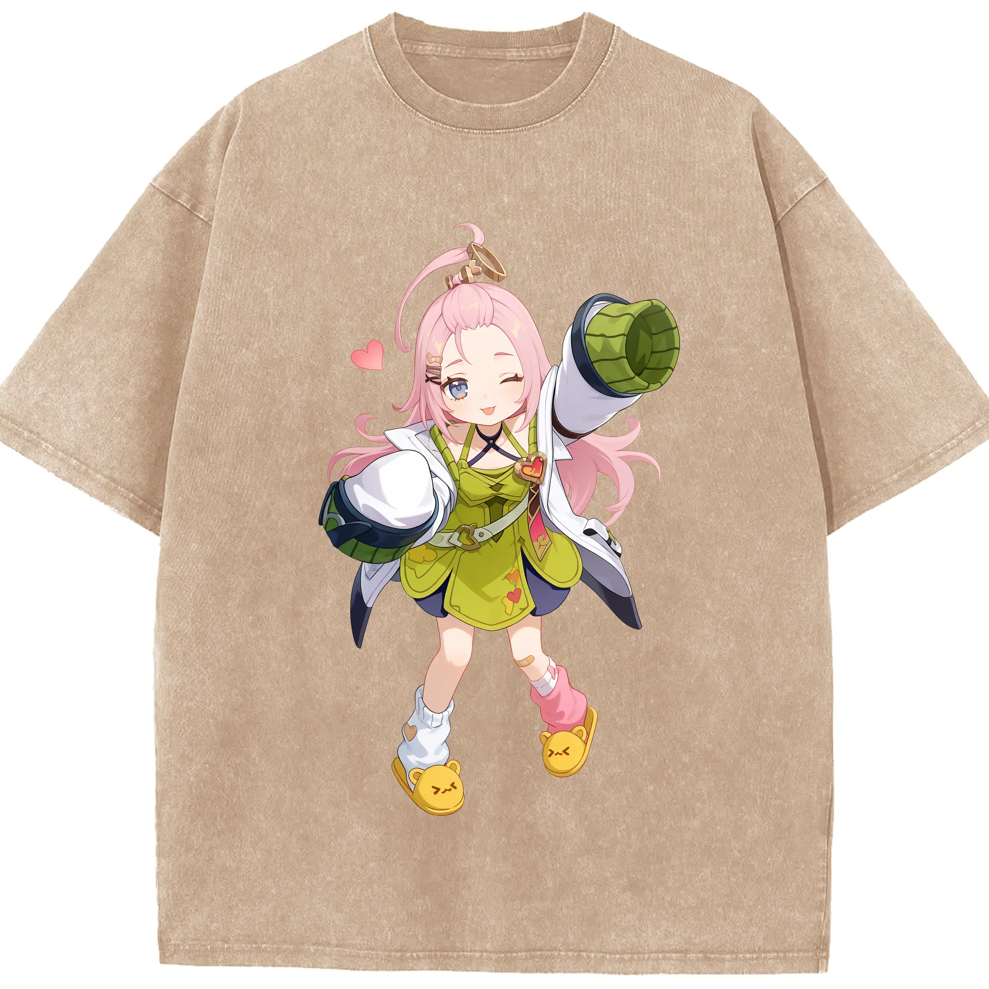 原 神 グッズ アイノ - 綿100% ヴィンテージ風 半袖Tシャツ ・ 背面プリント ・ 柔らか肌触り ・ 通気性 快適 ・ スポーツ カジュアル 外出用