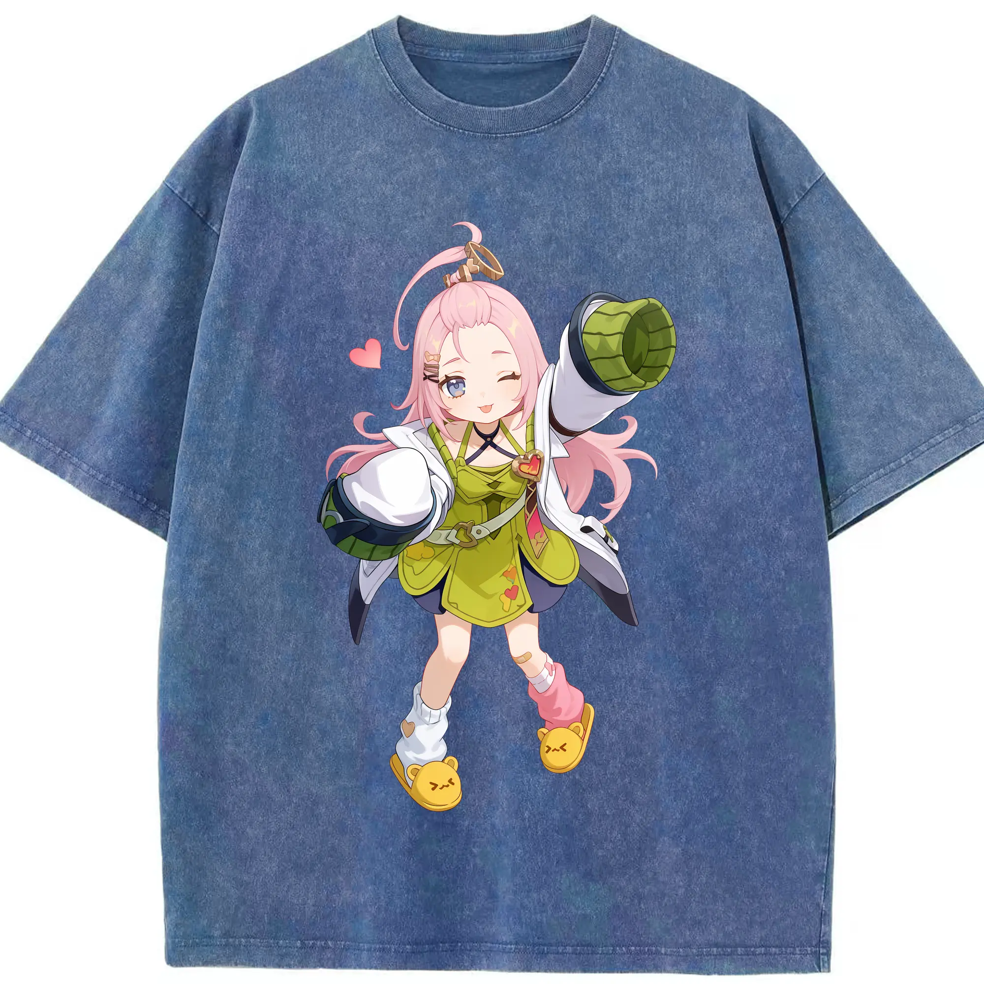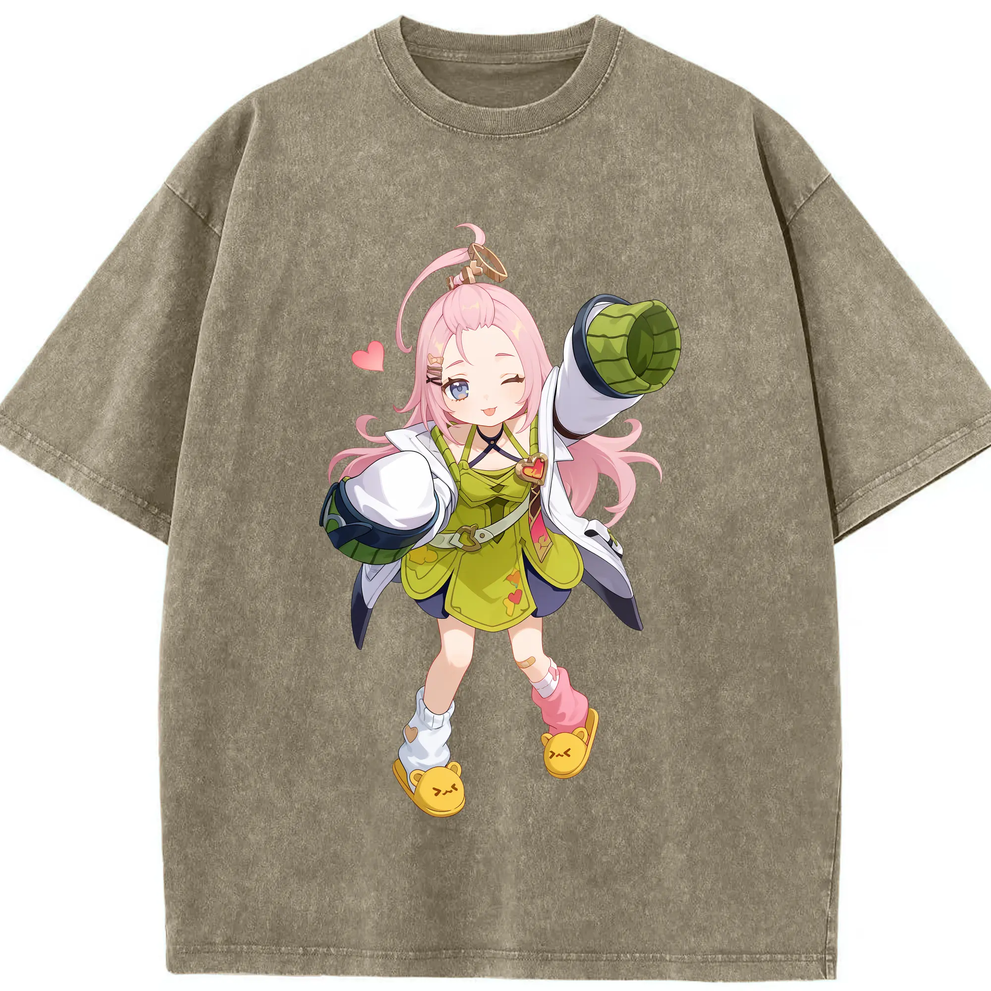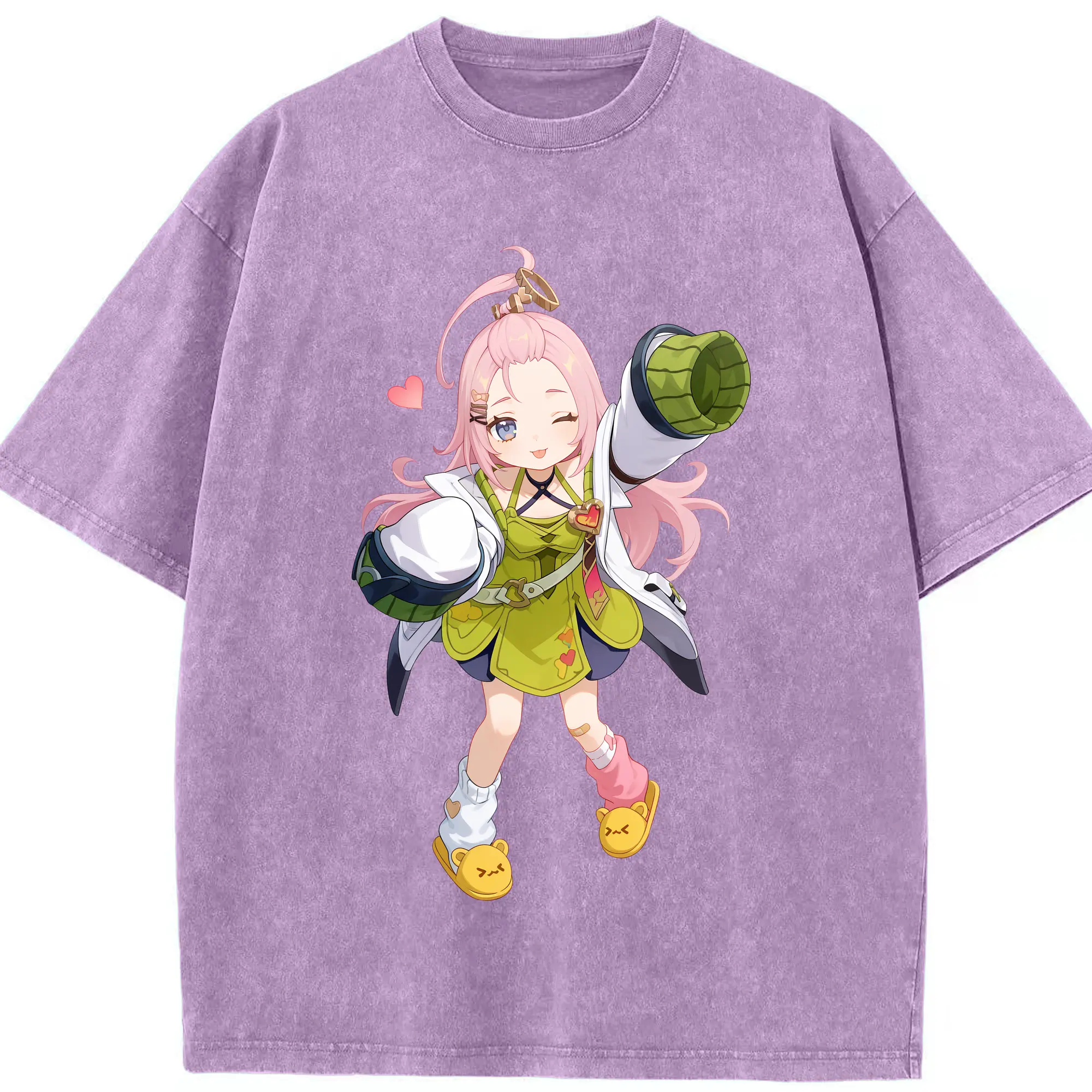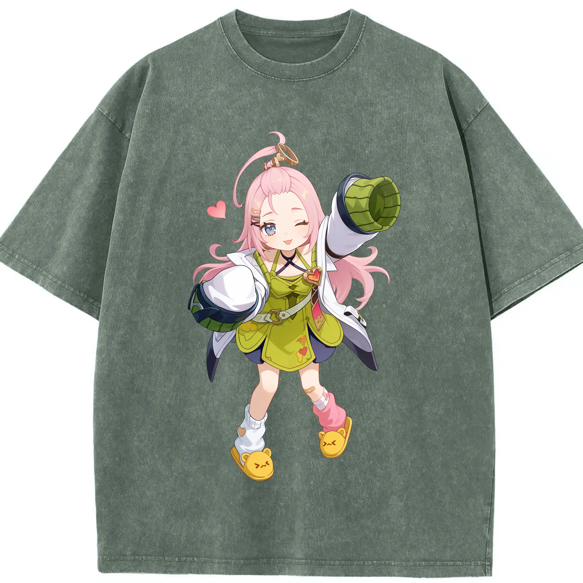 原 神 グッズ アイノ - 綿100% ヴィンテージ風 半袖Tシャツ ・ 背面プリント ・ 柔らか肌触り ・ 通気性 快適 ・ スポーツ カジュアル 外出用