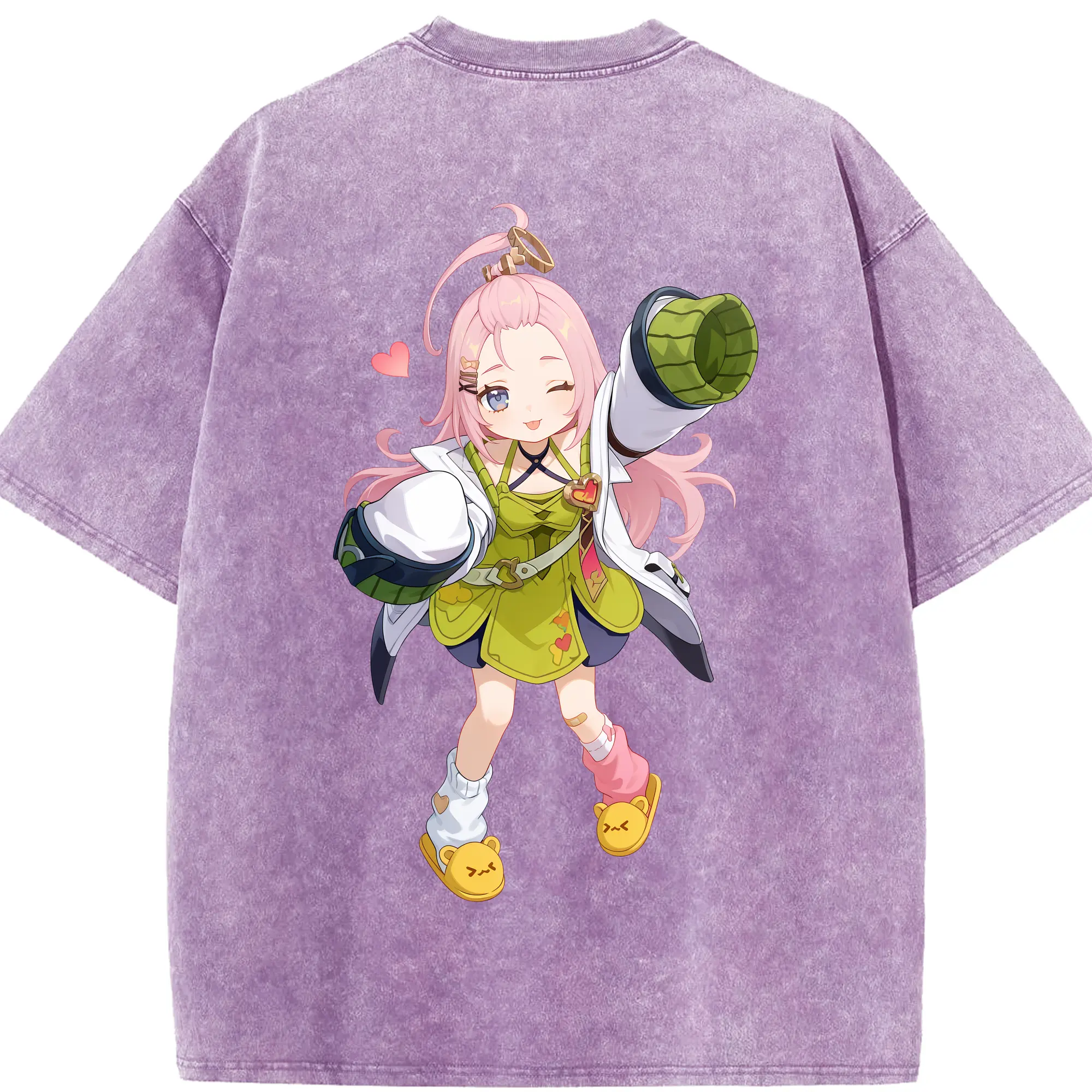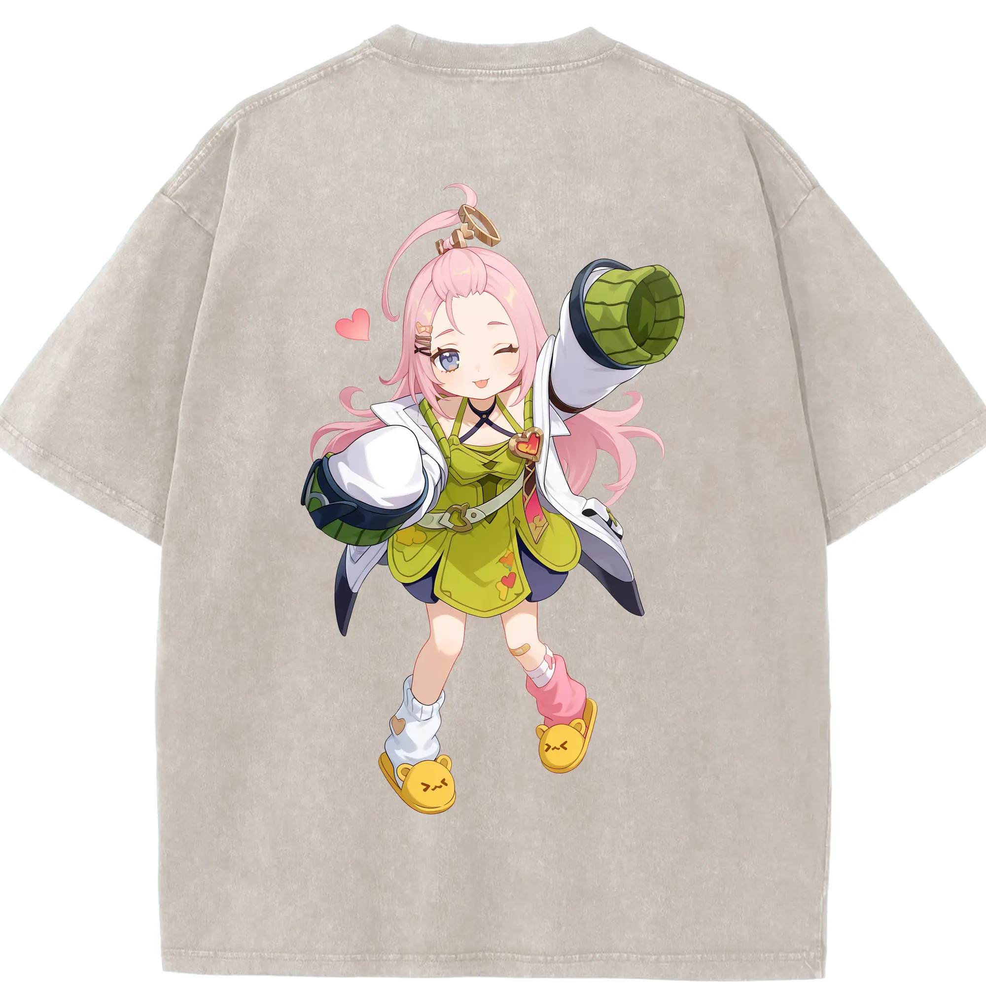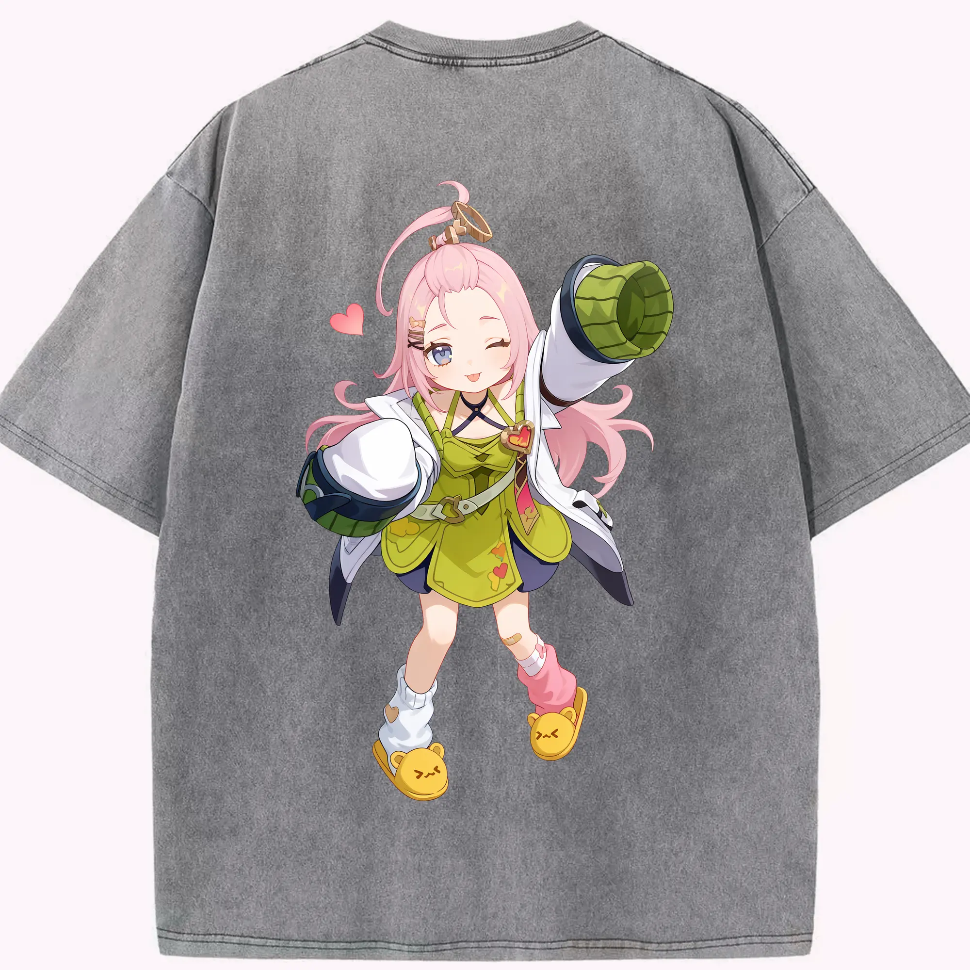 鳴潮 グッズ ロココ - 綿100% ヴィンテージ風 半袖Tシャツ ・ 背面プリント ・ 柔らか肌触り ・ 通気性 快適 ・ スポーツ カジュアル 外出用