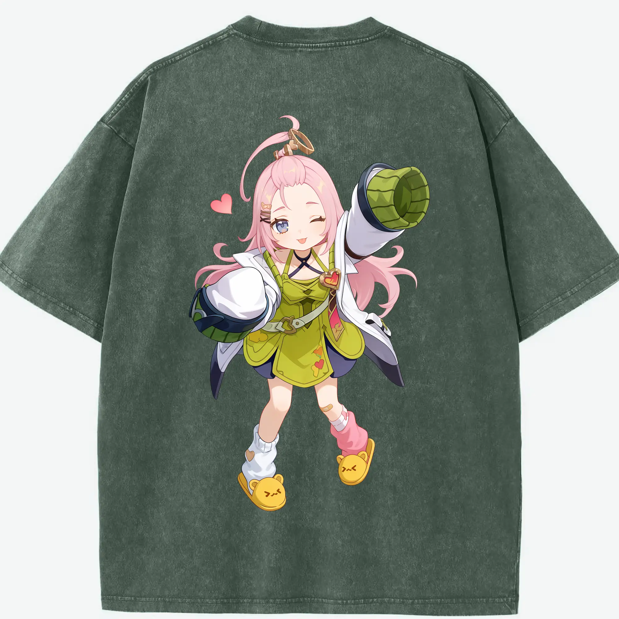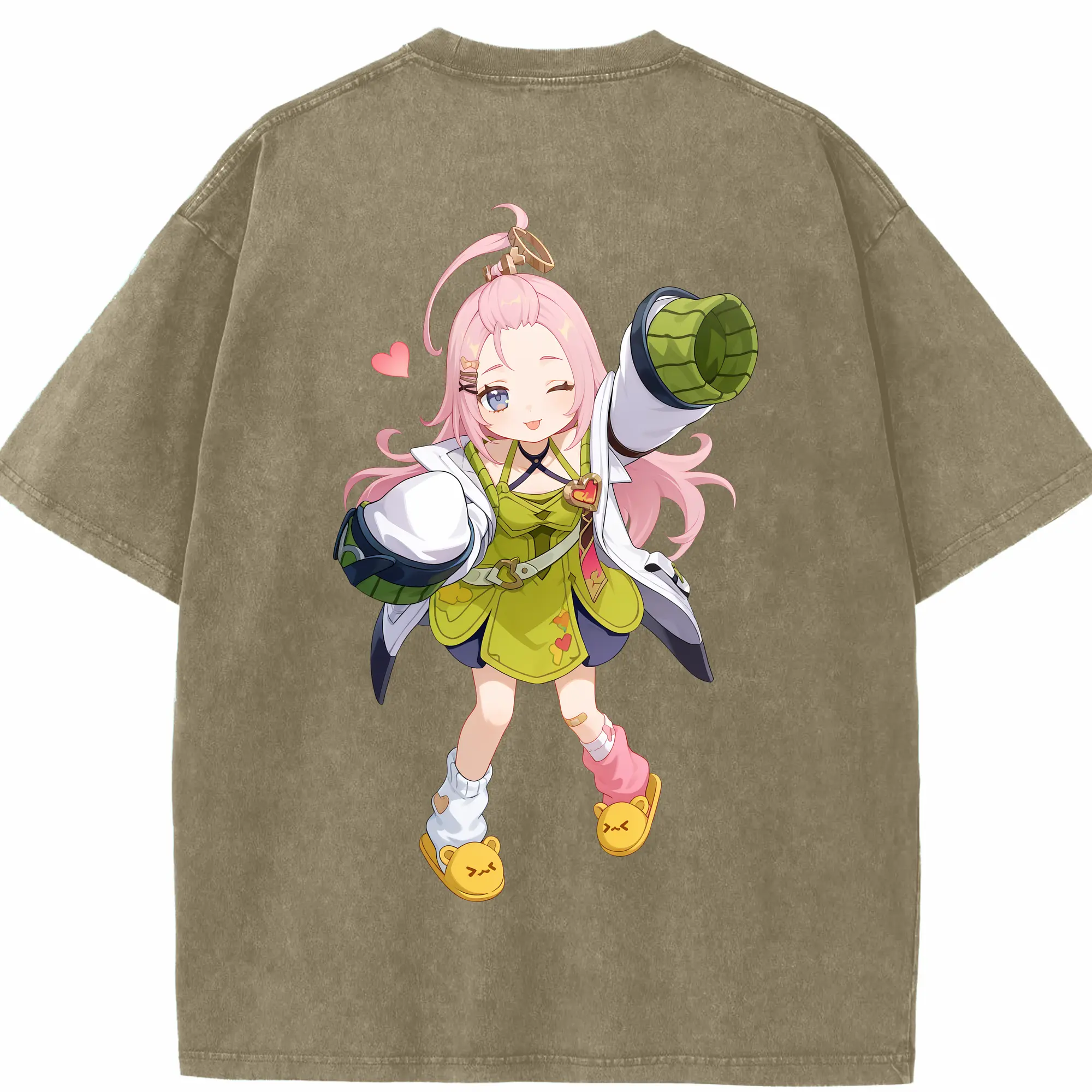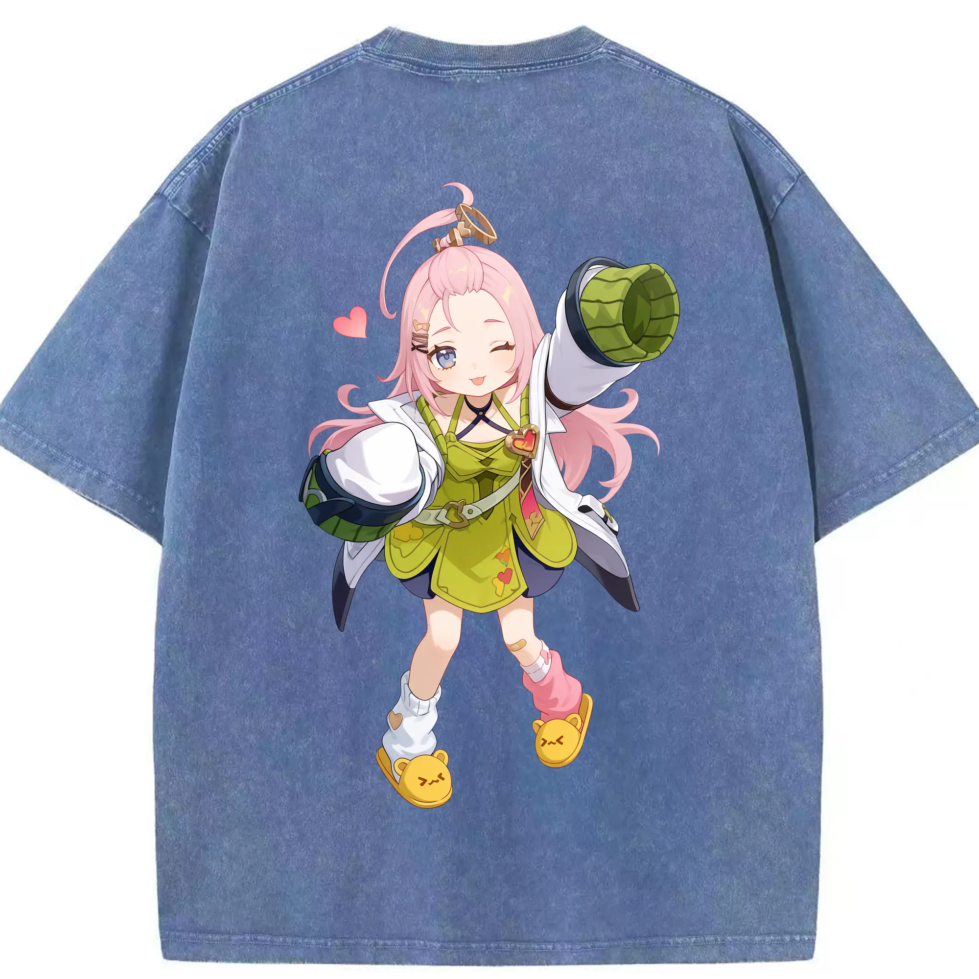 鳴潮 グッズ ロココ - 綿100% ヴィンテージ風 半袖Tシャツ ・ 背面プリント ・ 柔らか肌触り ・ 通気性 快適 ・ スポーツ カジュアル 外出用