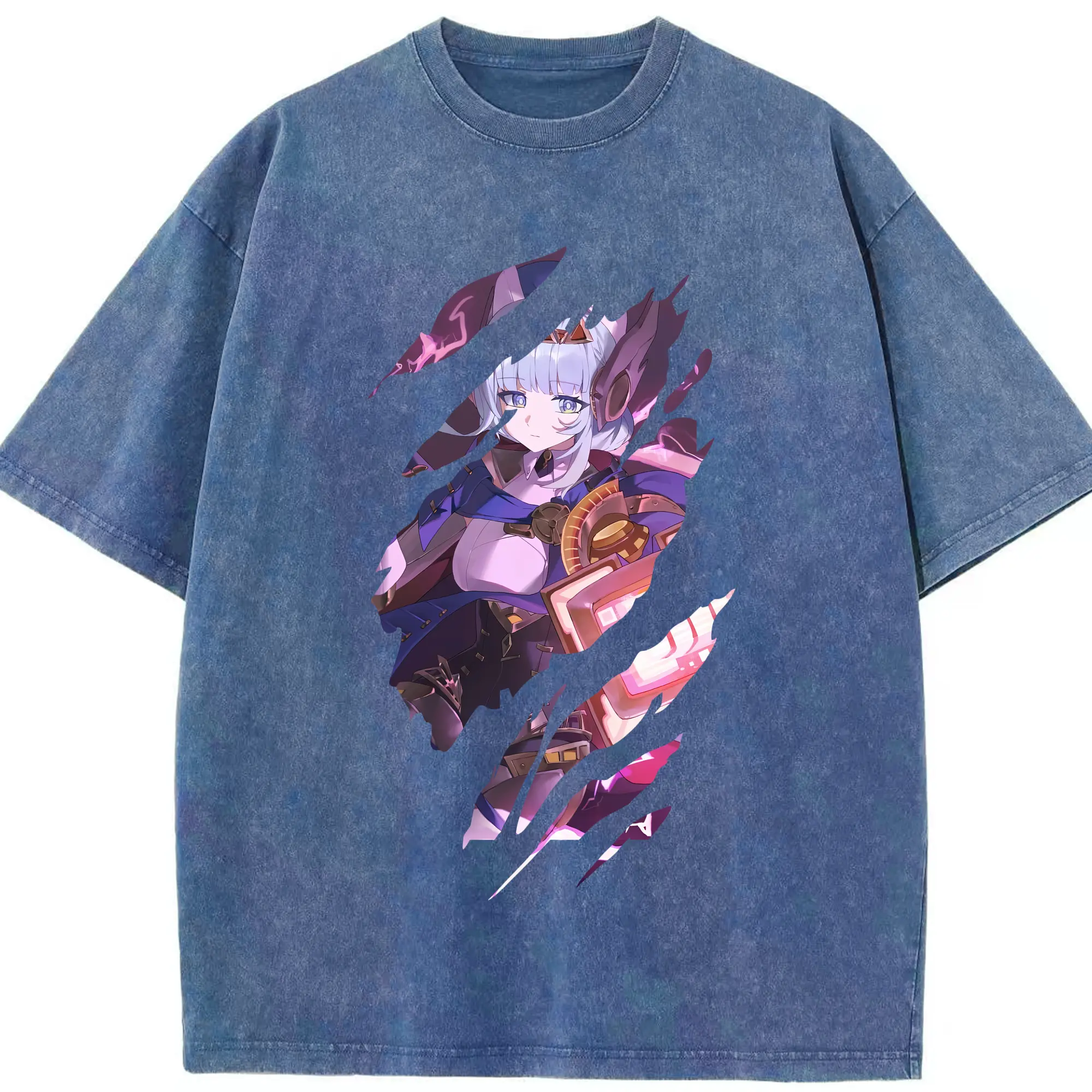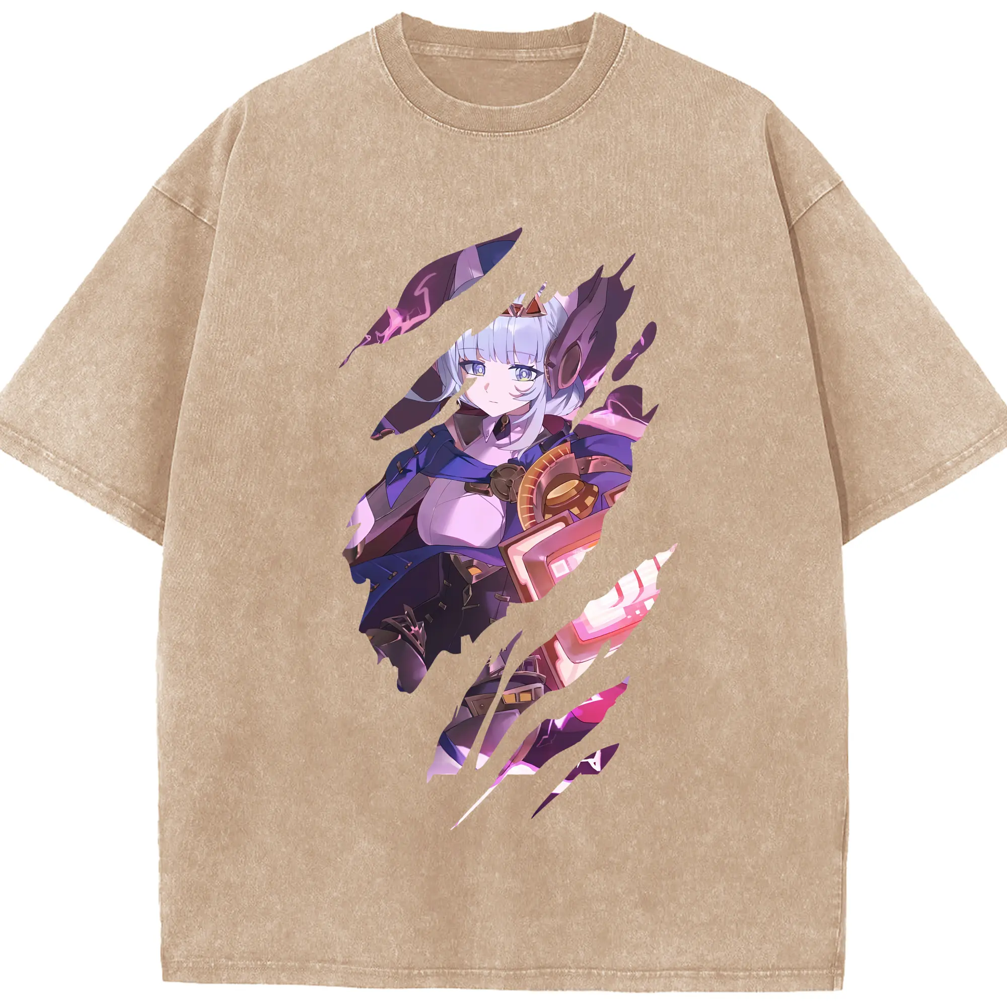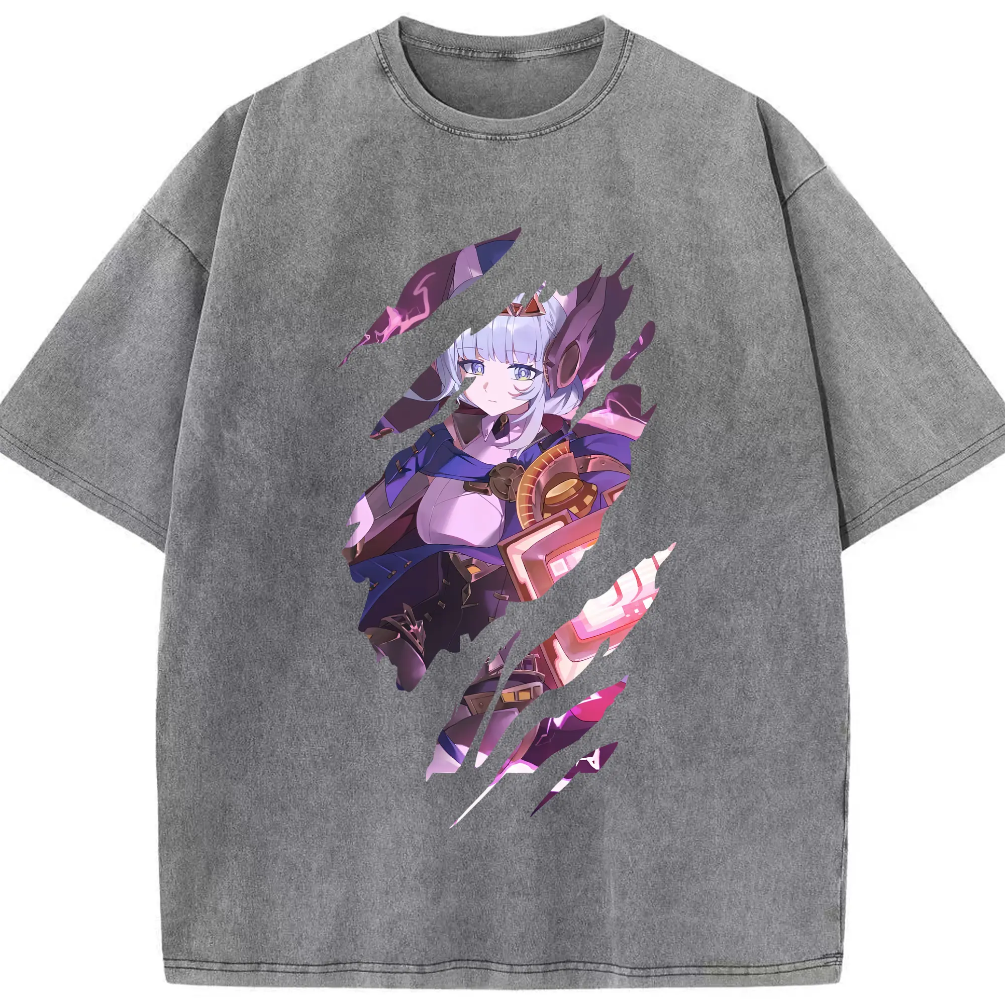 原 神 グッズ 雷電将軍 - 綿100% ヴィンテージ風 半袖Tシャツ ・ フロントプリント ・ 柔らか肌触り ・ 通気性 快適 ・ スポーツ カジュアル 外出用