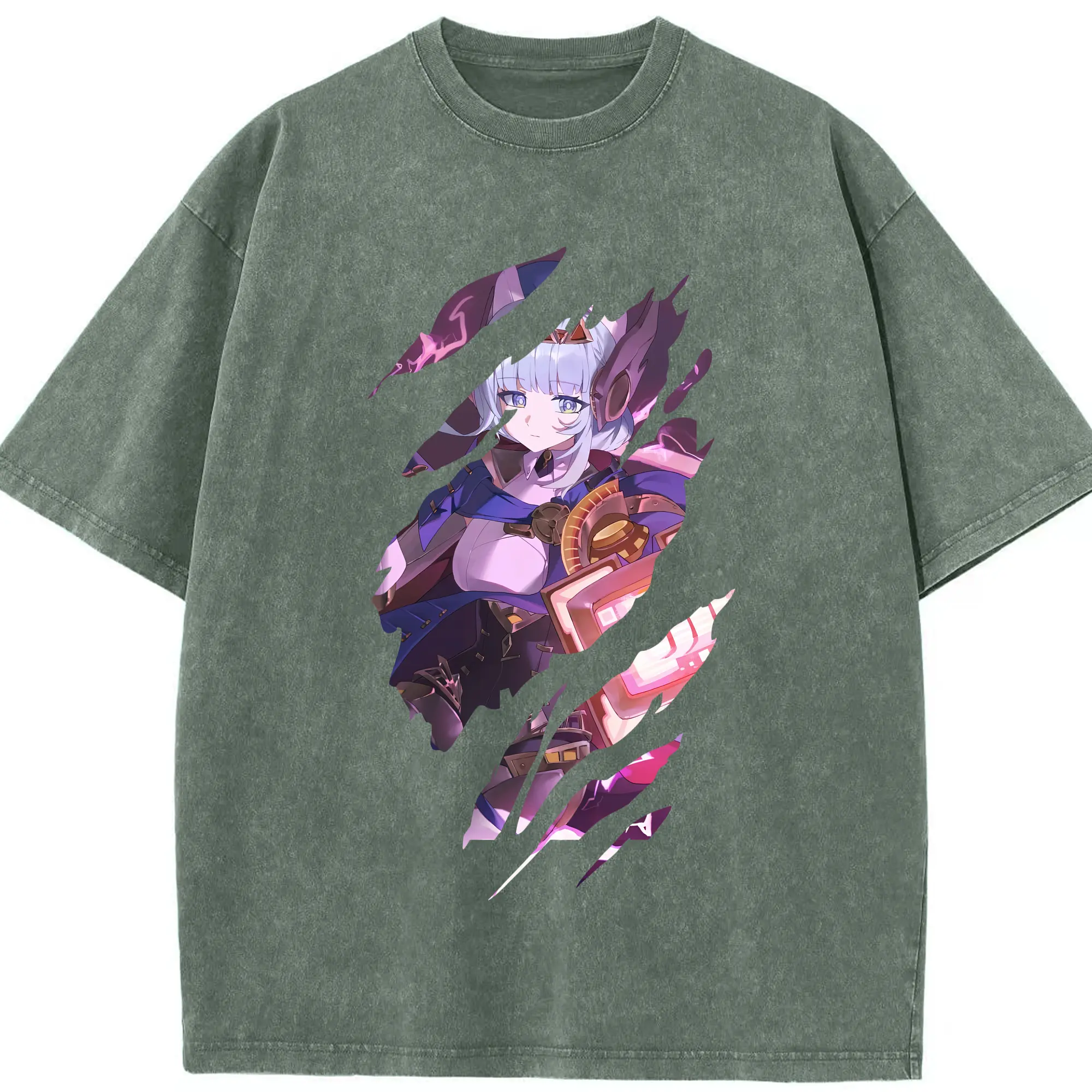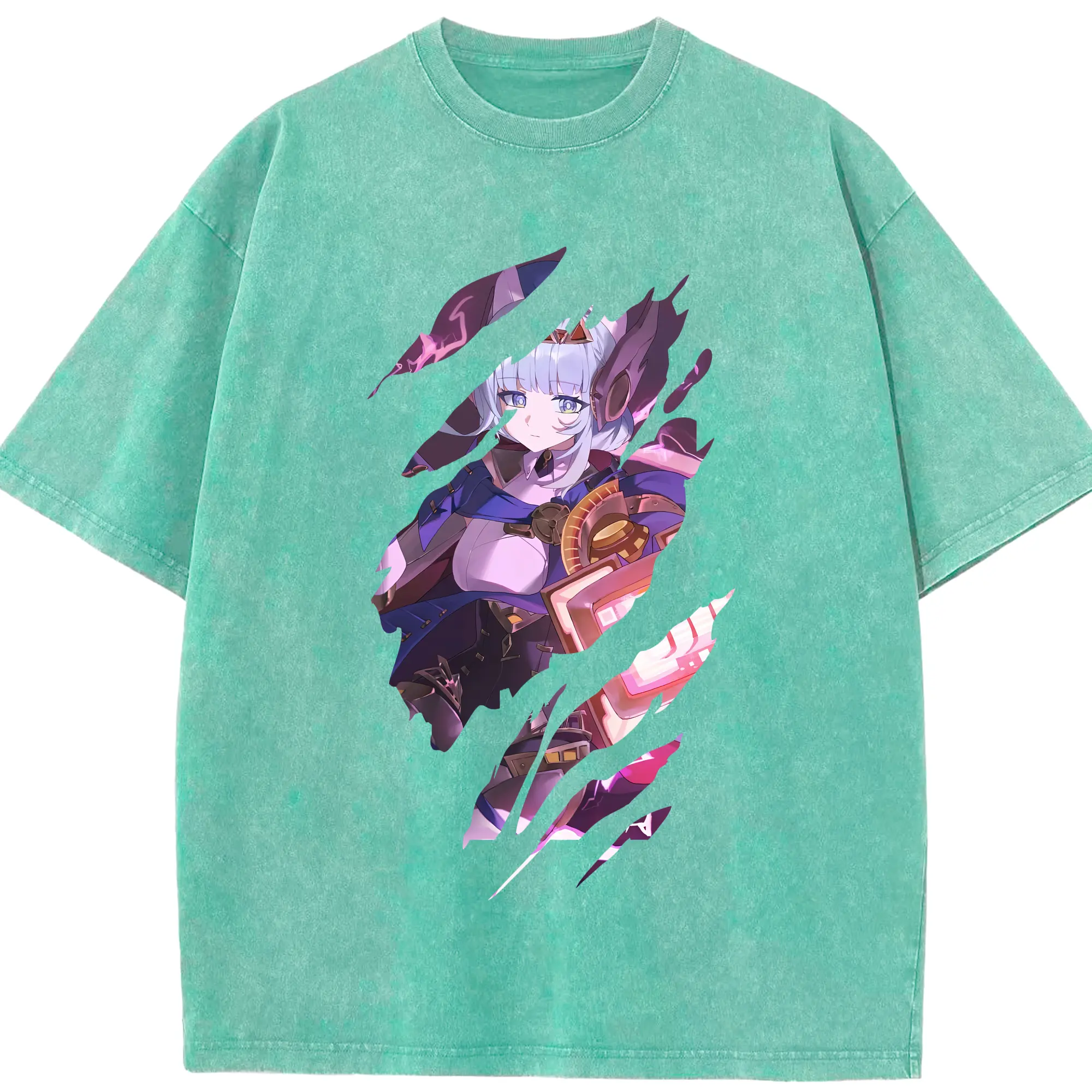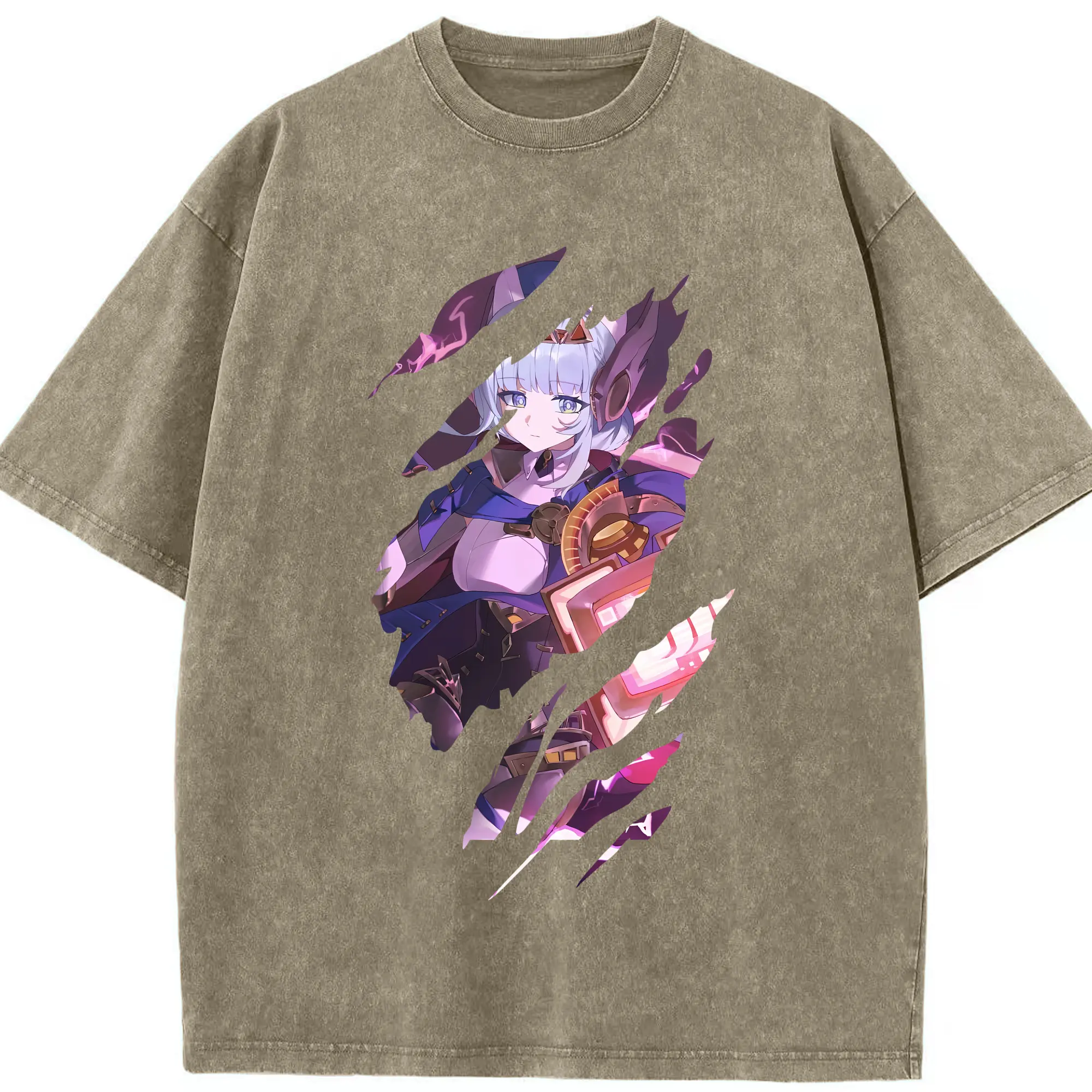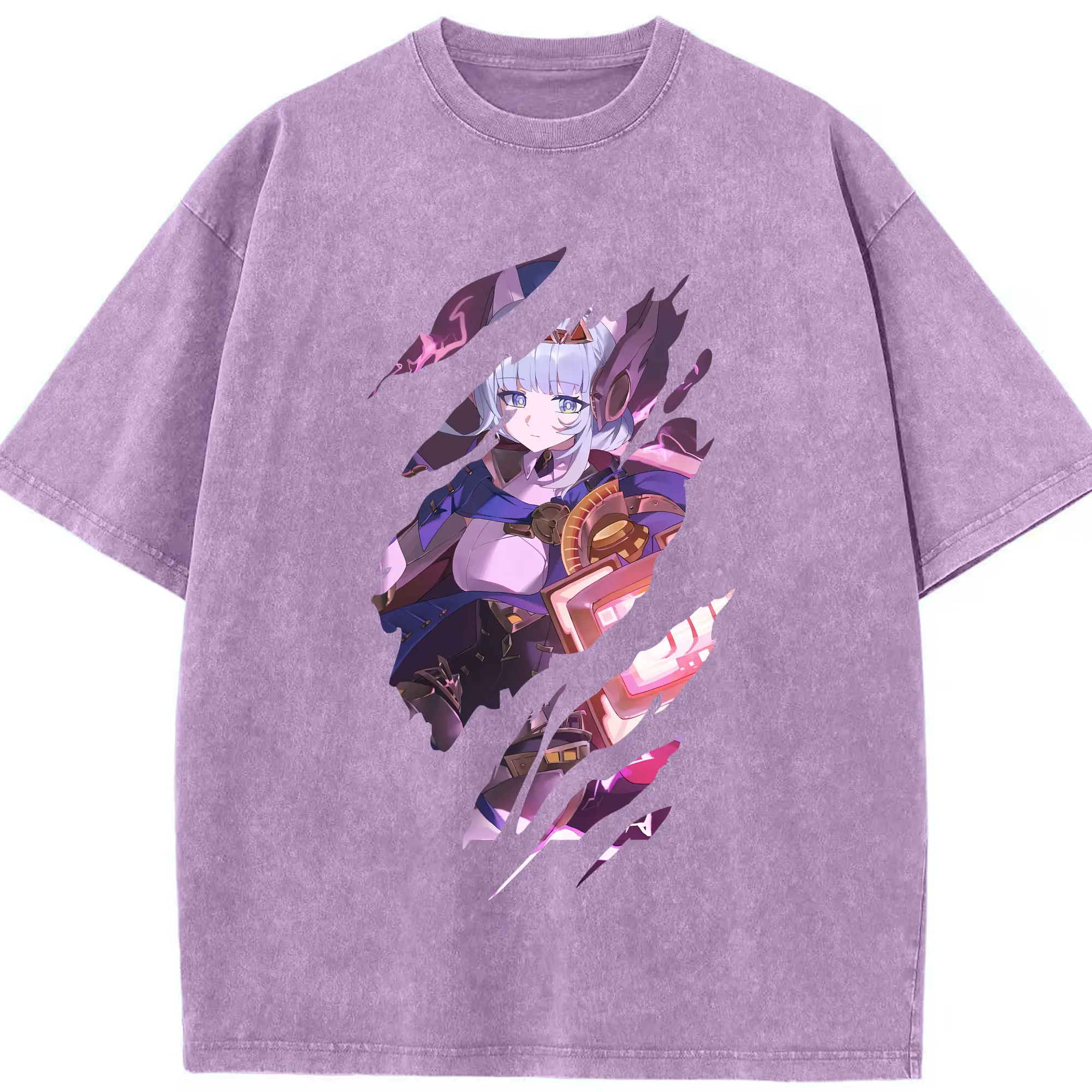 原 神 グッズ 雷電将軍 - 綿100% ヴィンテージ風 半袖Tシャツ ・ フロントプリント ・ 柔らか肌触り ・ 通気性 快適 ・ スポーツ カジュアル 外出用