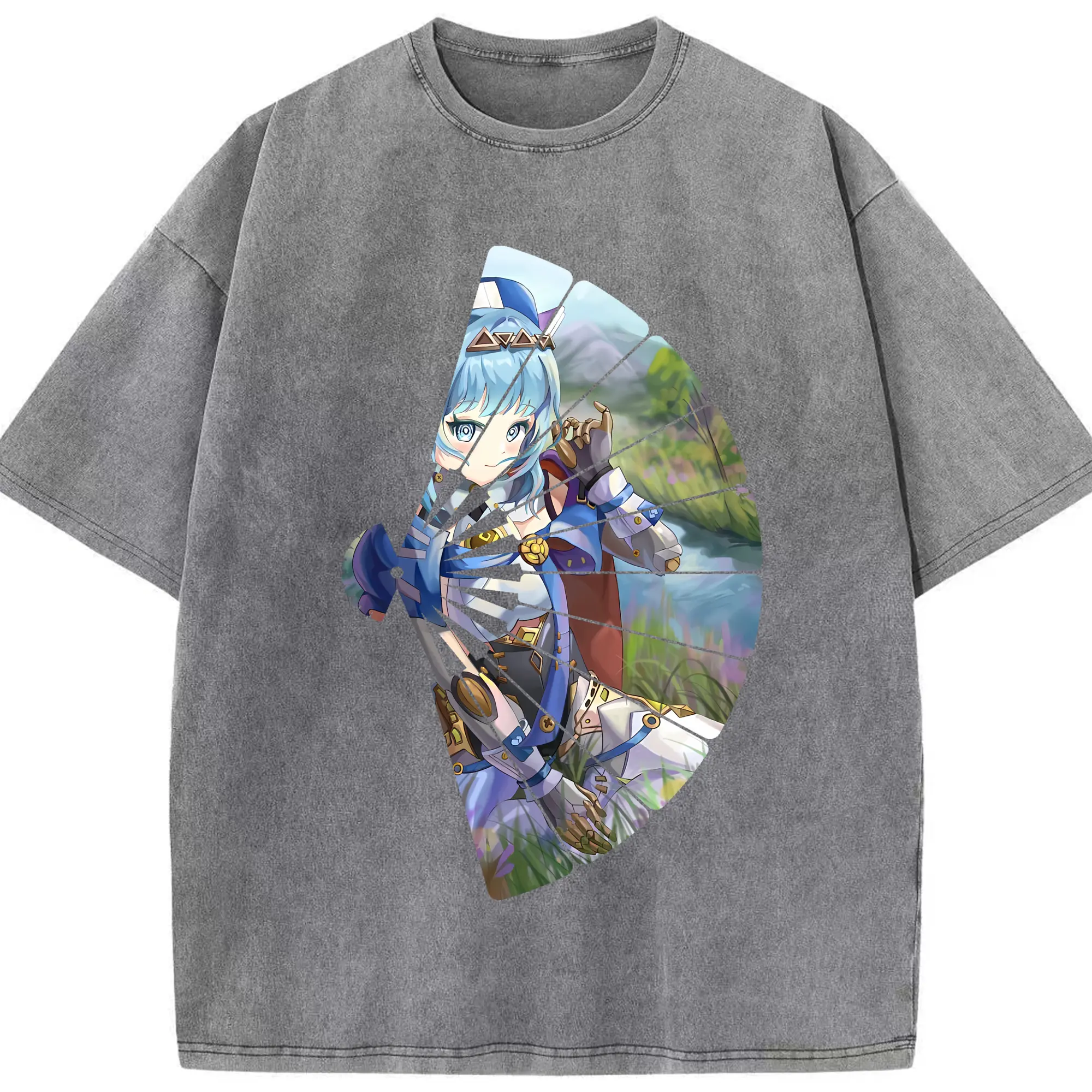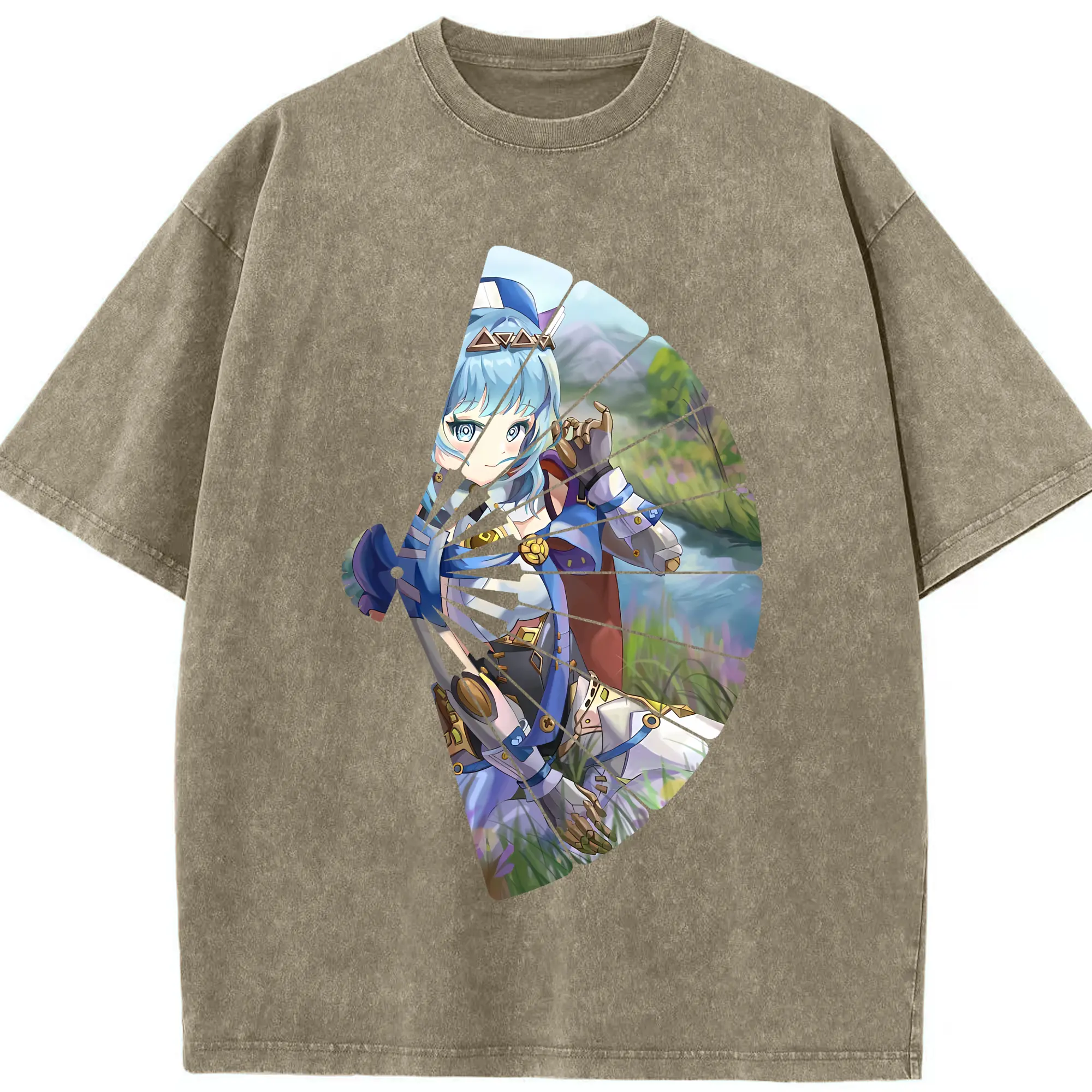 原 神 グッズ イネファ - 綿100% ヴィンテージ風 半袖Tシャツ ・ 背面プリント ・ 柔らか肌触り ・ 通気性 快適 ・ スポーツ カジュアル 外出用