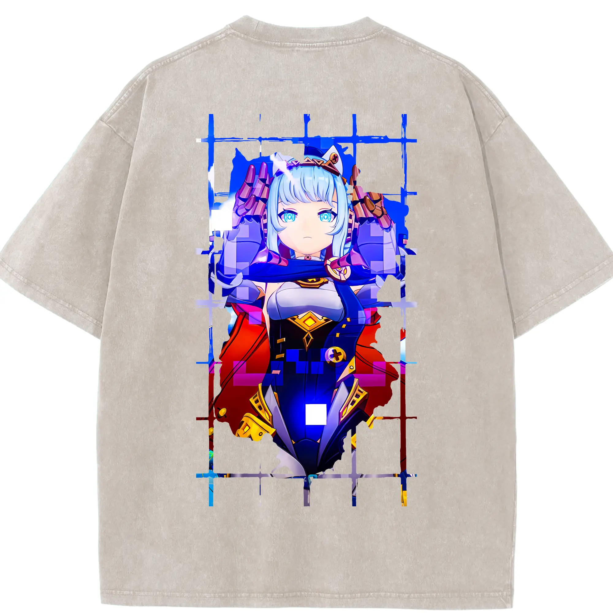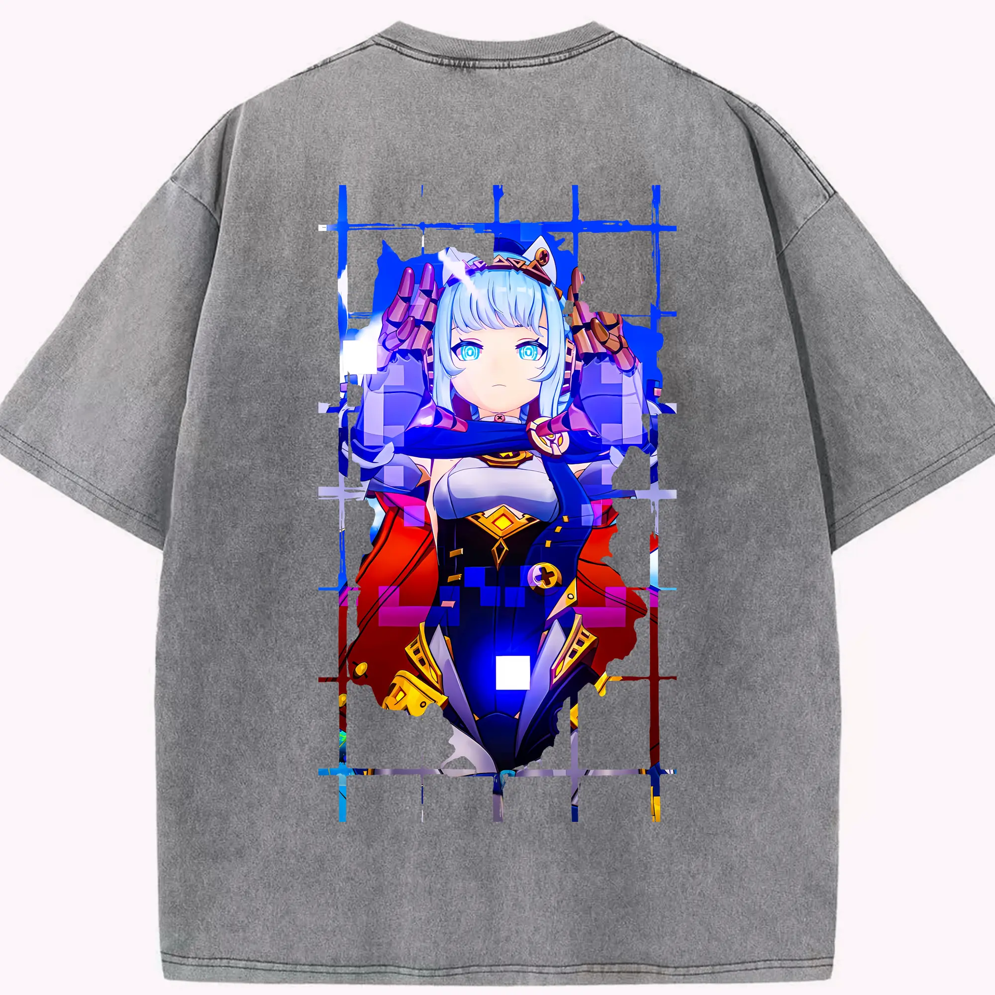 ブルーアーカイブ グッズ 聖園ミカ - 綿100% ヴィンテージ風 半袖Tシャツ ・ 背面プリント ・ 柔らか肌触り ・ 通気性 快適 ・ スポーツ カジュアル 外出用