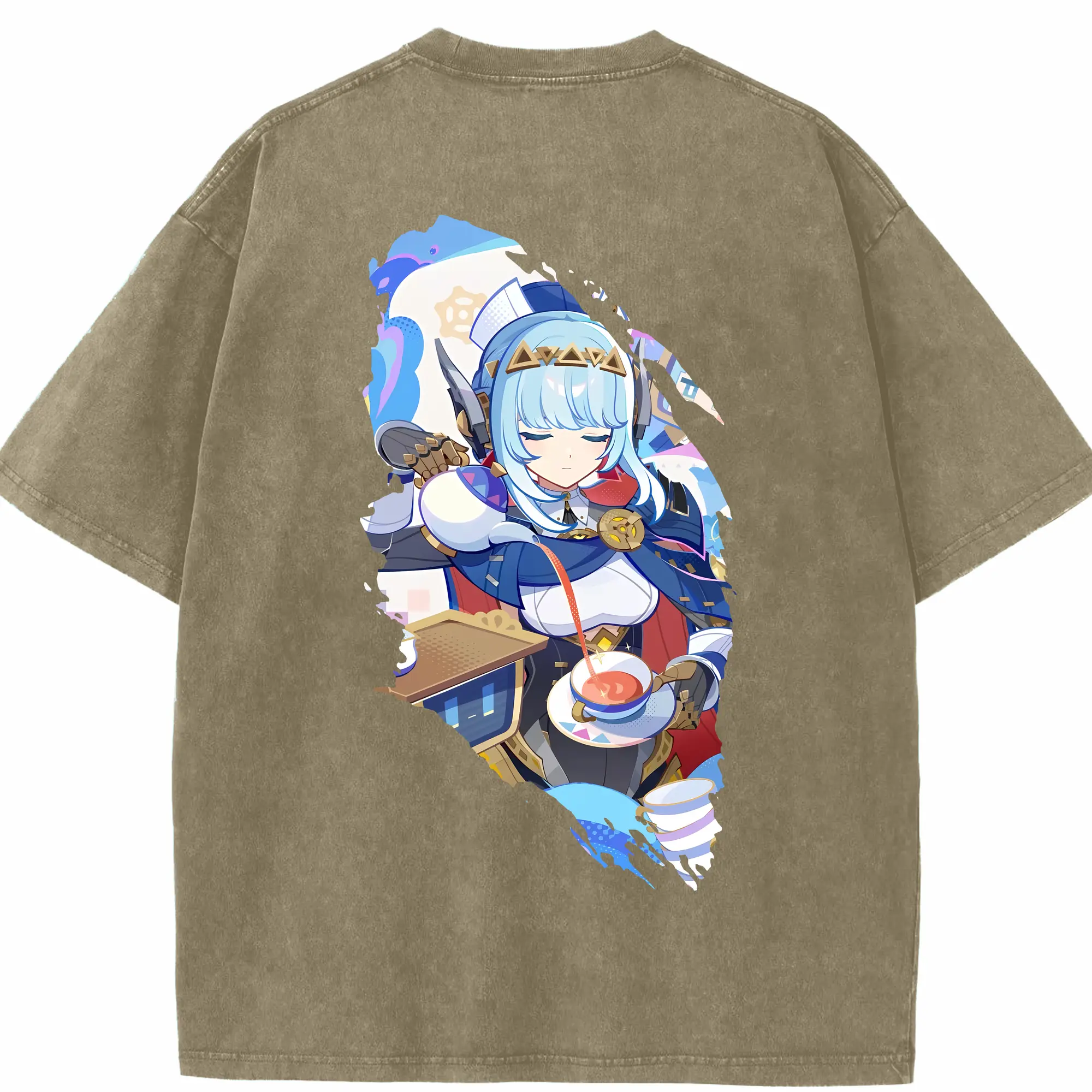 原 神 グッズ イネファ - 綿100% ヴィンテージ風 半袖Tシャツ ・ フロントプリント ・ 柔らか肌触り ・ 通気性 快適 ・ スポーツ カジュアル 外出用