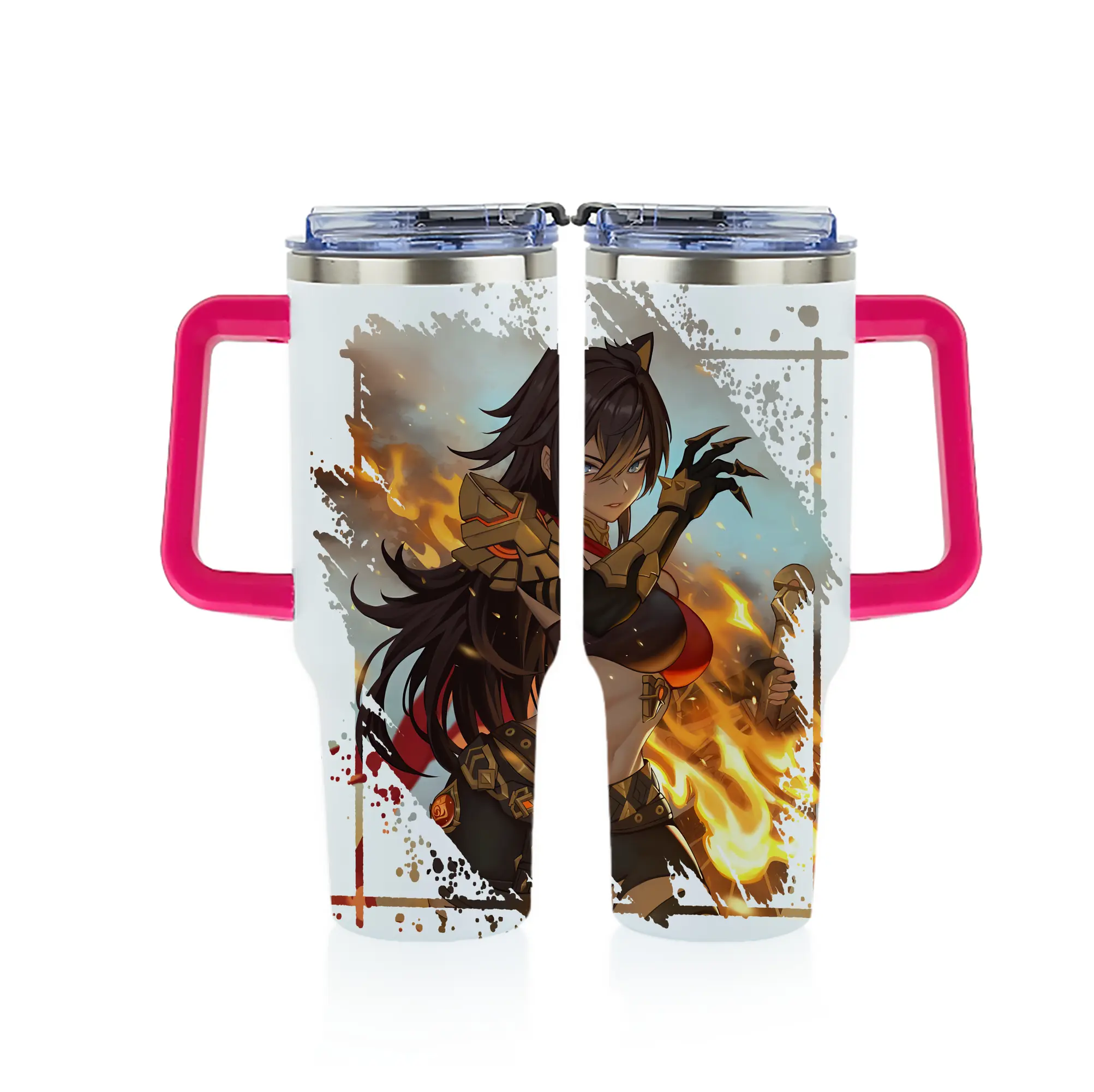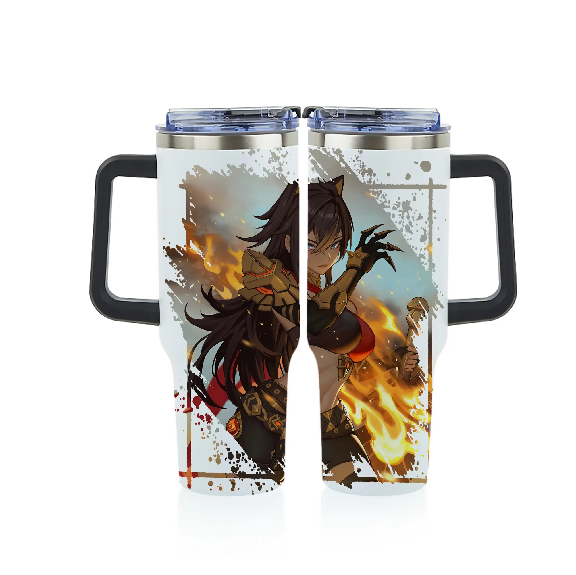 この40オンスカータンブラーは、洗練されたフルラップUVプリントで鮮やかな色彩と優れた耐久性を実現。304ステンレス製内側と201ステンレス製外側の組み合わせにより、長期間の使用に耐え、錆びにくく安全に飲料を楽しめます。