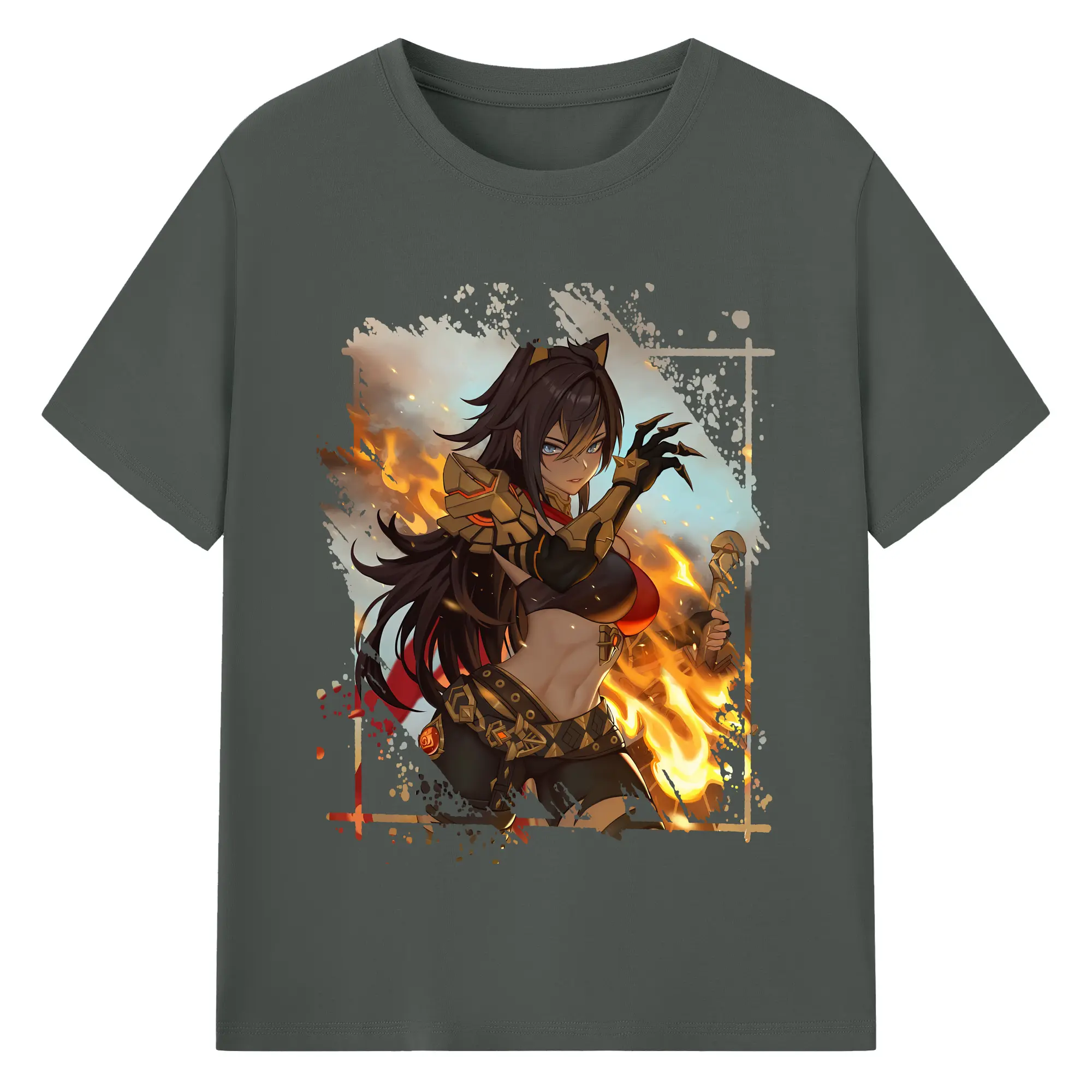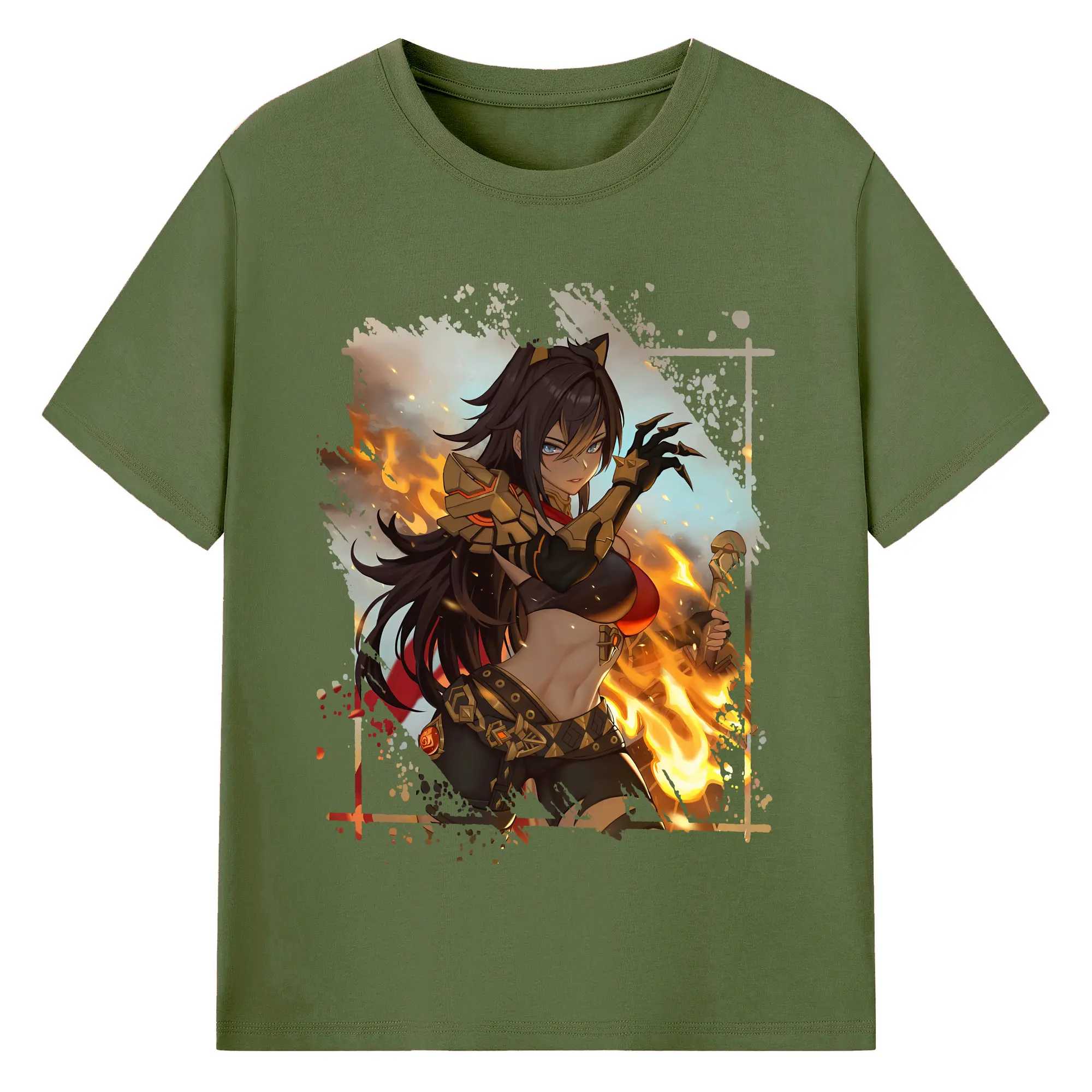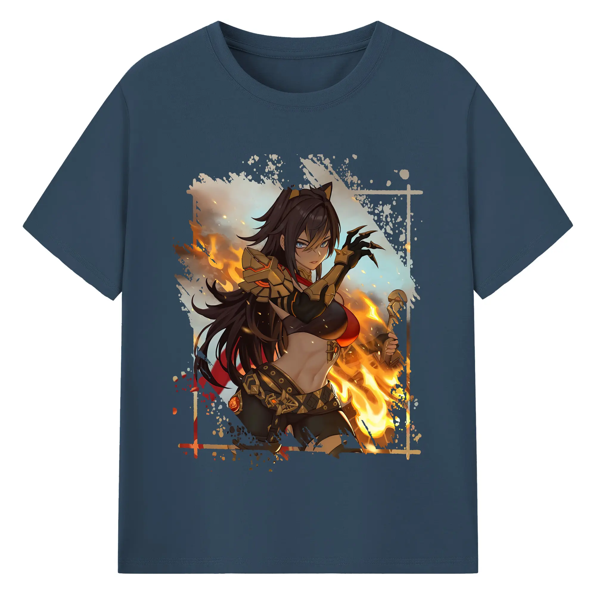 鳴潮 グッズ カルロッタ - 綿100% 半袖Tシャツ ・ フロントプリント ・ 快適 通気性 ・ 日常使い 散歩 スポーツ用