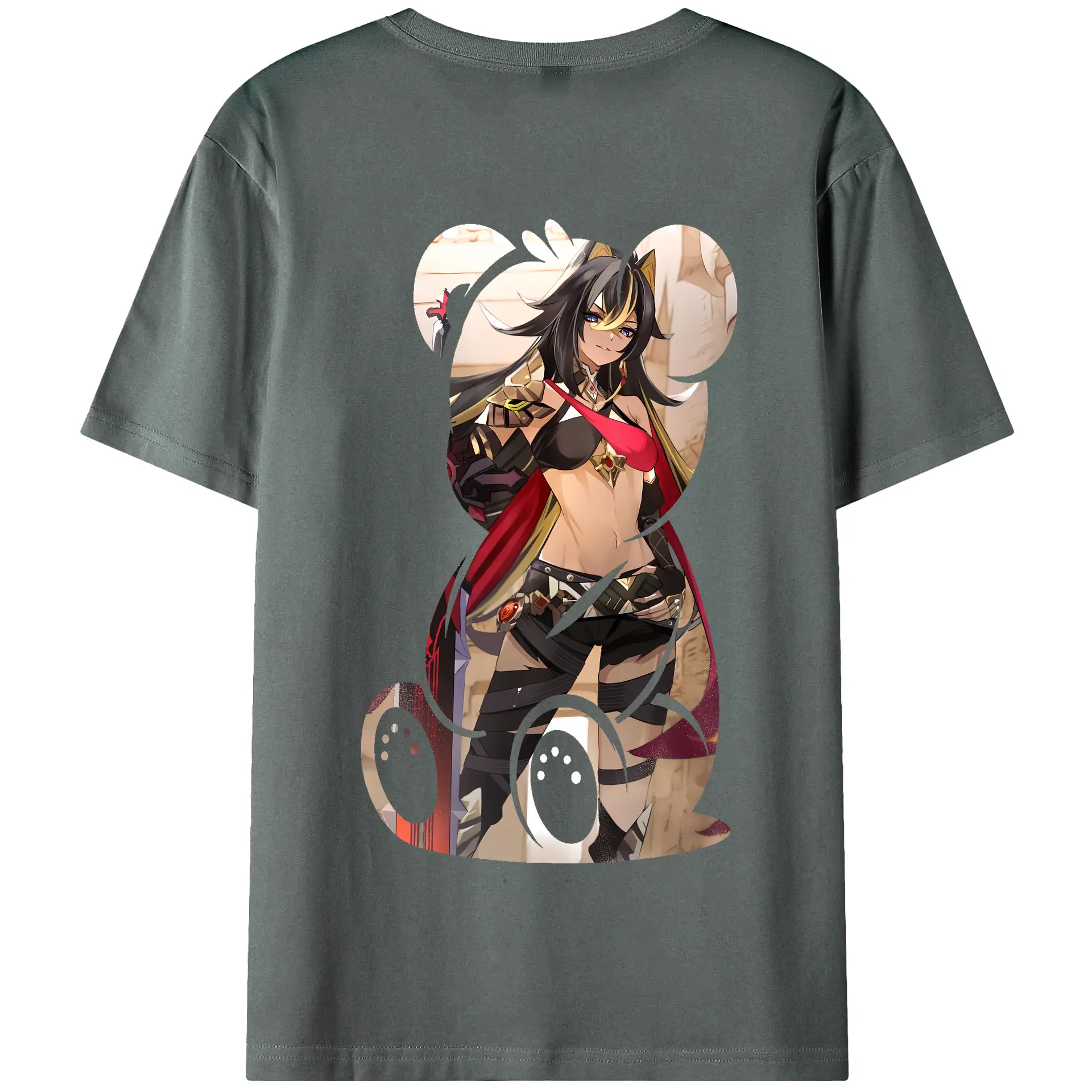原 神 グッズ ディシア - 綿100% ヴィンテージ風 半袖Tシャツ ・ 背面プリント ・ 柔らか肌触り ・ 通気性 快適 ・ スポーツ カジュアル 外出用