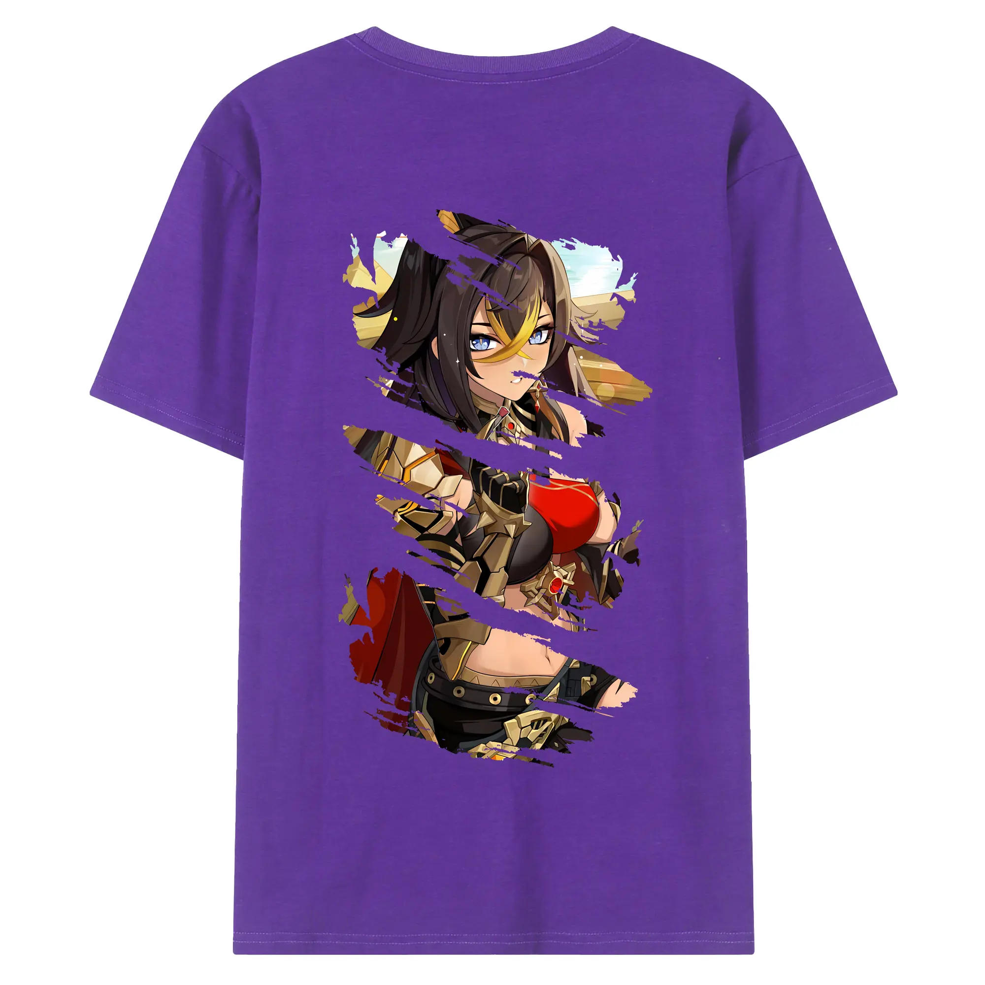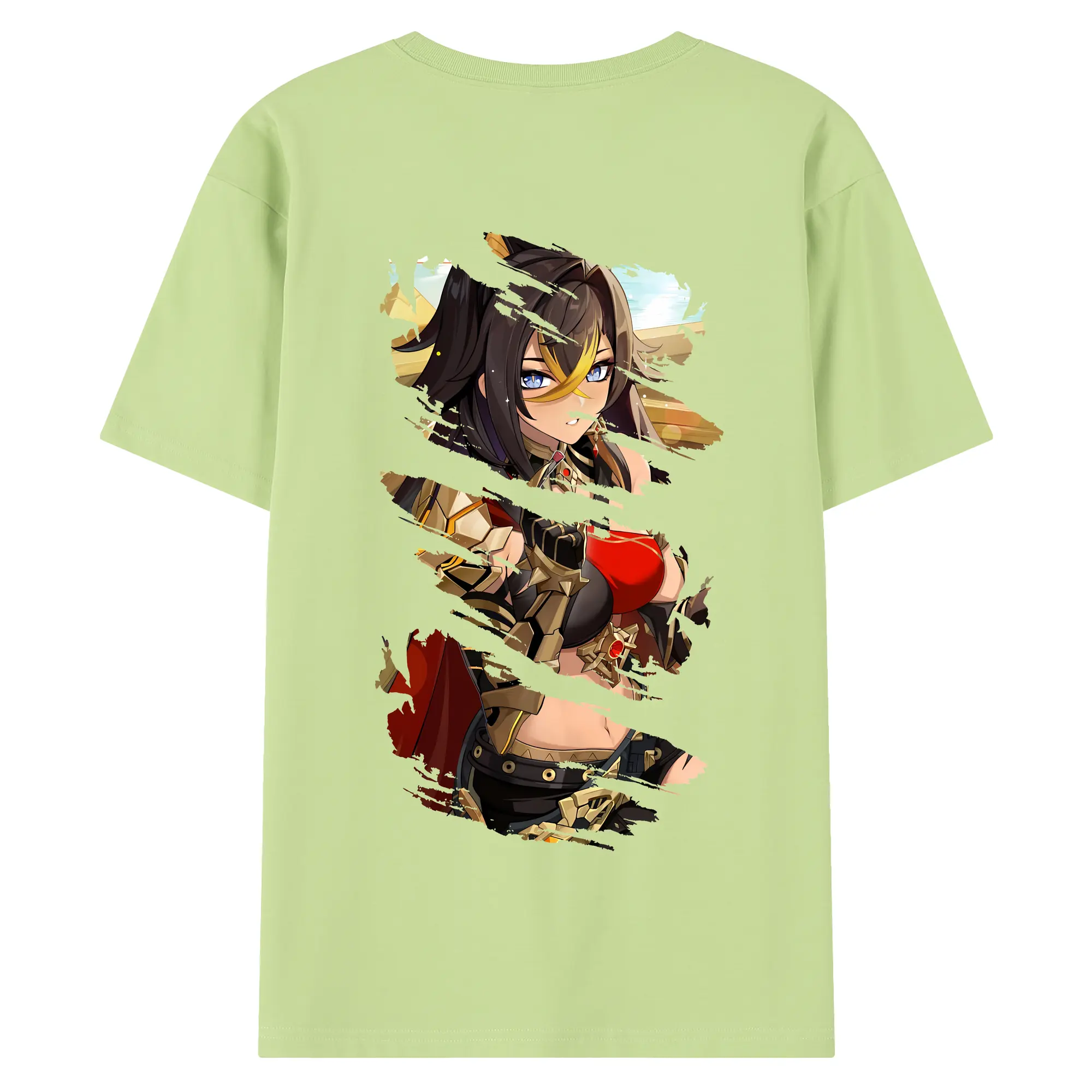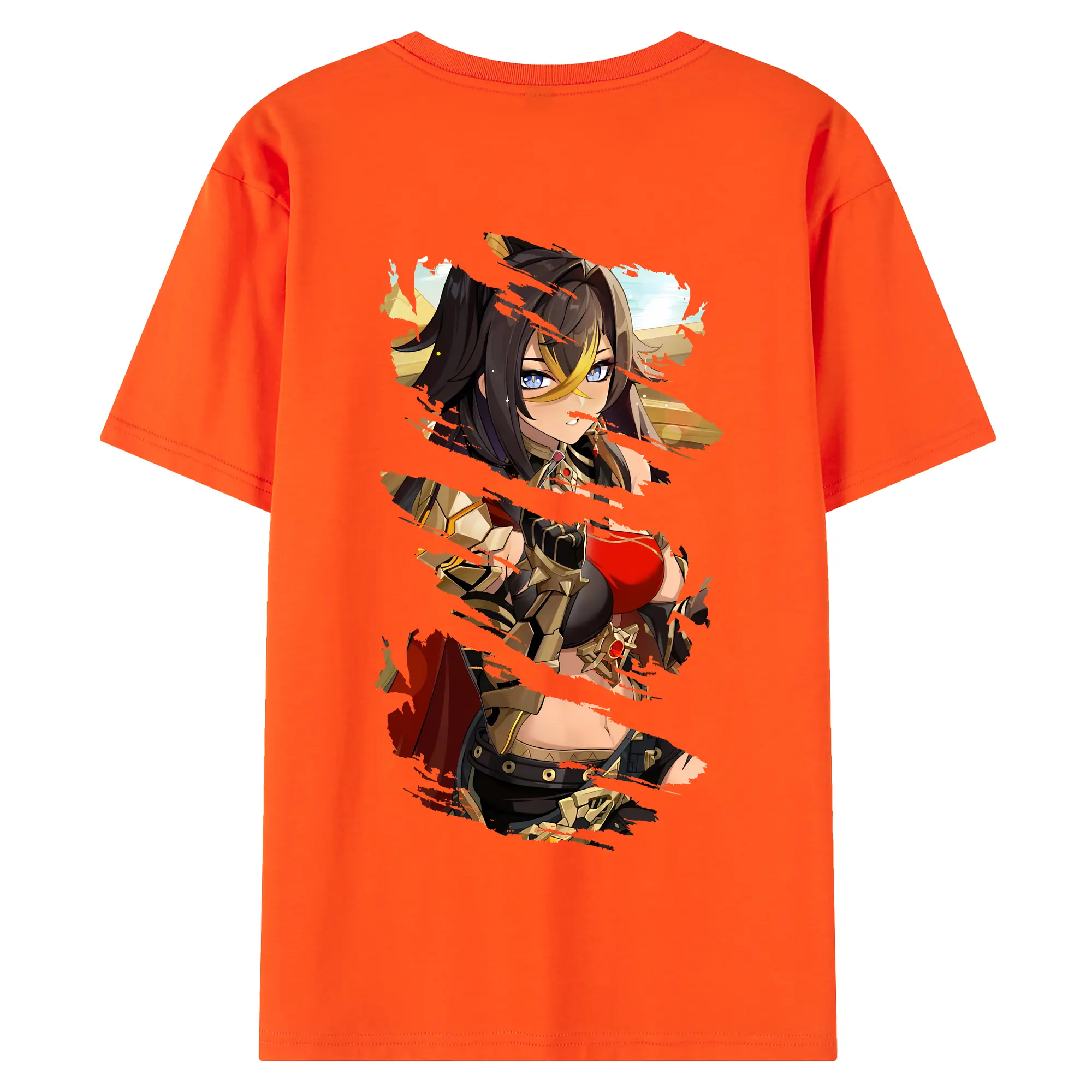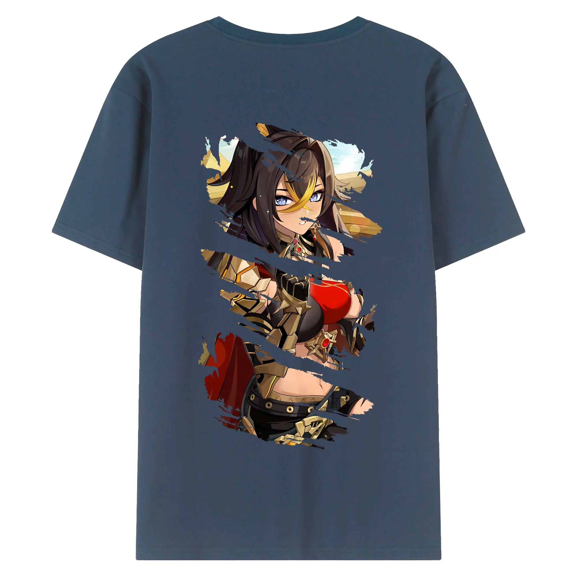 原 神 グッズ ディシア - 綿100% ヴィンテージ風 半袖Tシャツ ・ 背面プリント ・ 柔らか肌触り ・ 通気性 快適 ・ スポーツ カジュアル 外出用