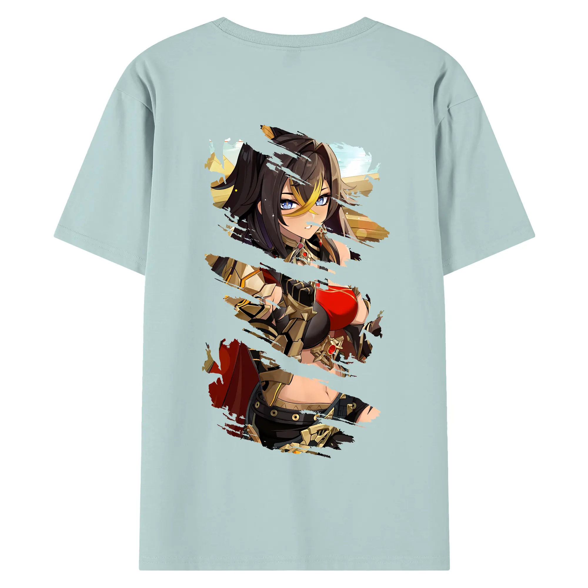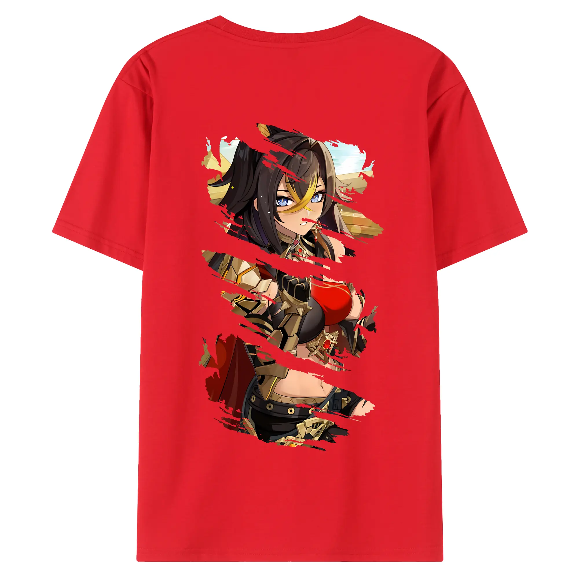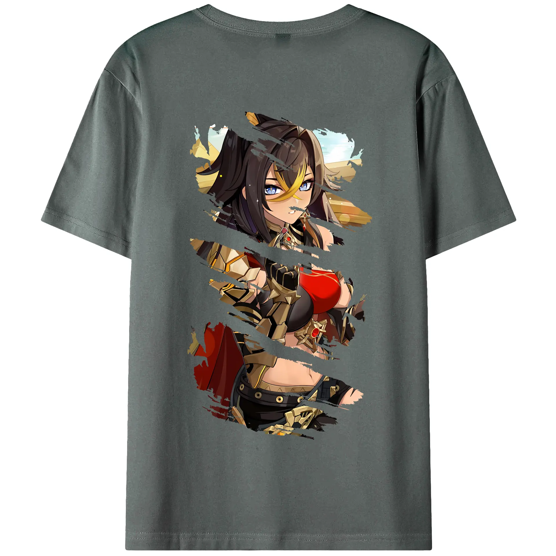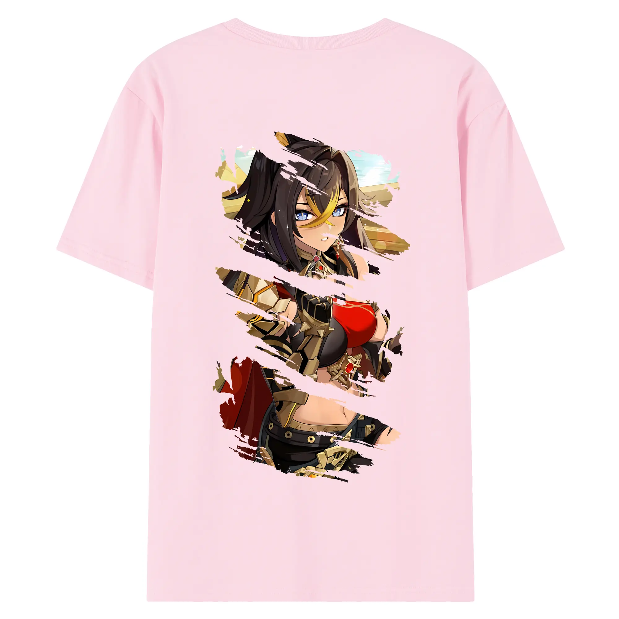 原 神 グッズ ディシア - 綿100% ヴィンテージ風 半袖Tシャツ ・ 背面プリント ・ 柔らか肌触り ・ 通気性 快適 ・ スポーツ カジュアル 外出用