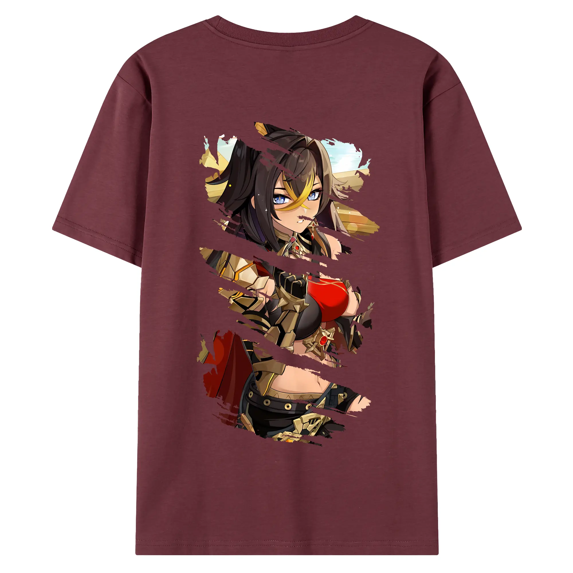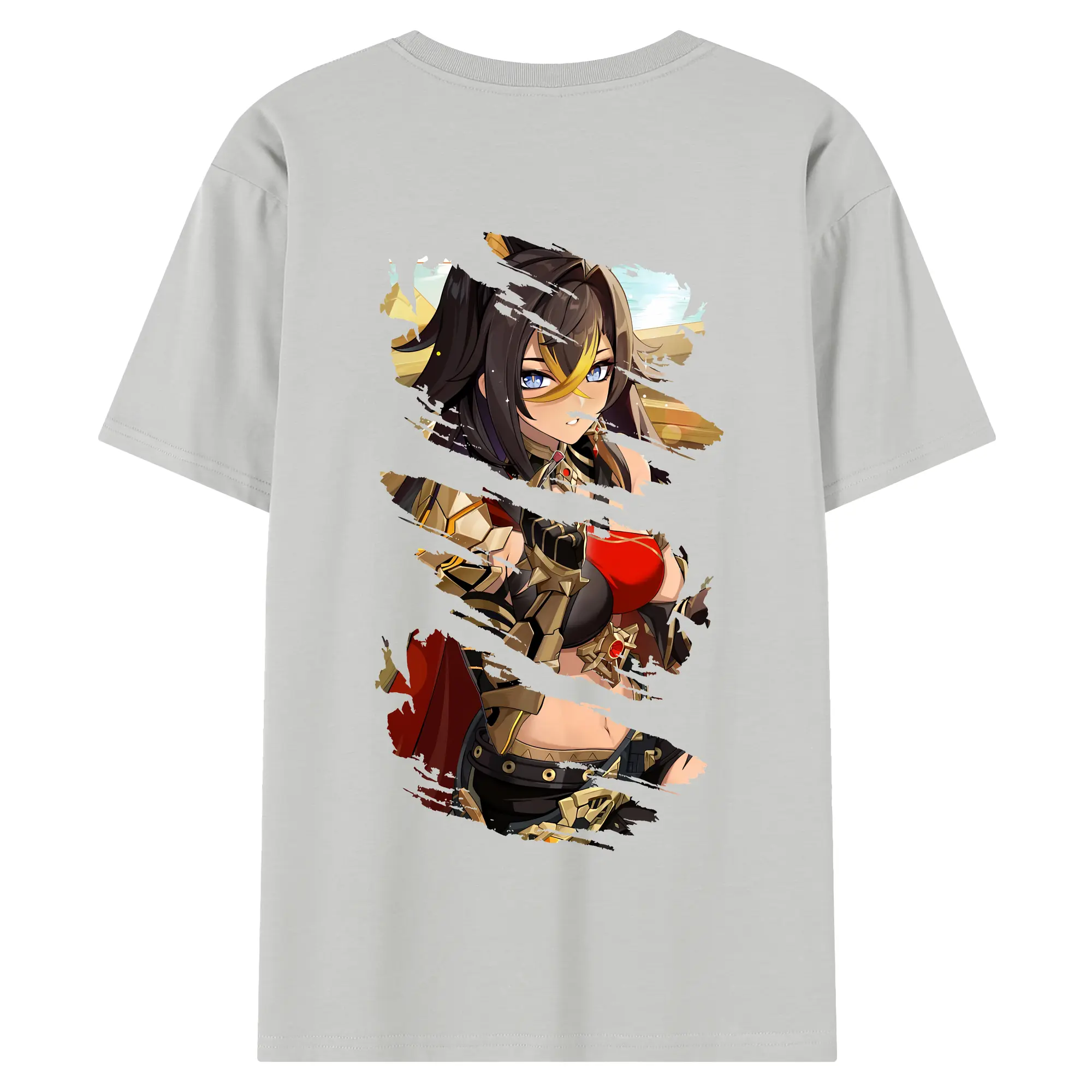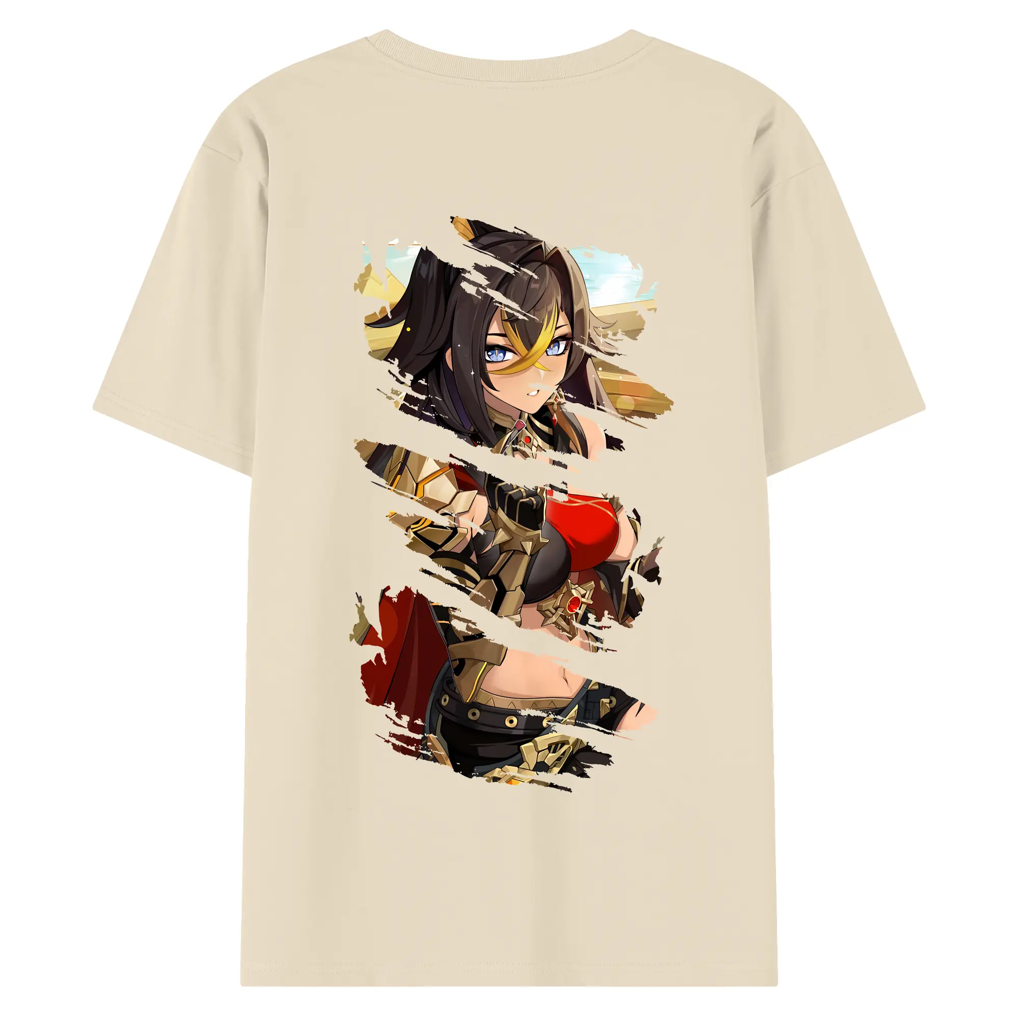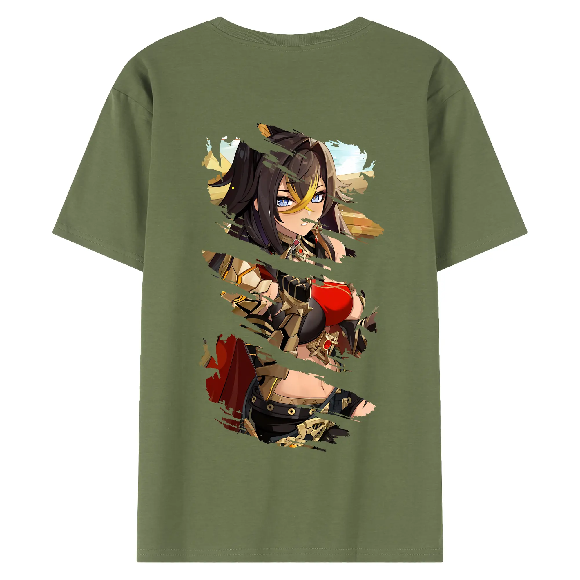 原 神 グッズ ディシア - 綿100% ヴィンテージ風 半袖Tシャツ ・ 背面プリント ・ 柔らか肌触り ・ 通気性 快適 ・ スポーツ カジュアル 外出用