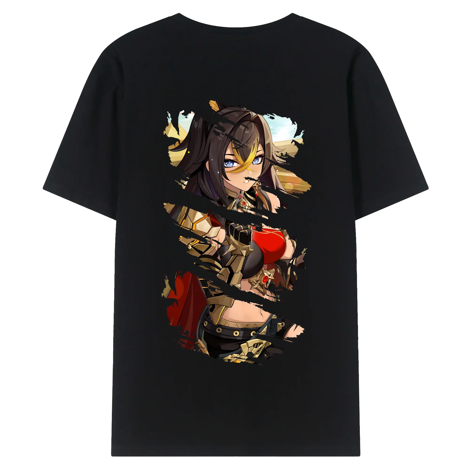 原 神 グッズ 荒瀧 一 斗 - 綿100% 半袖Tシャツ ・ バックプリント ・ 快適 通気性 ・ 日常使い 散歩 スポーツ用