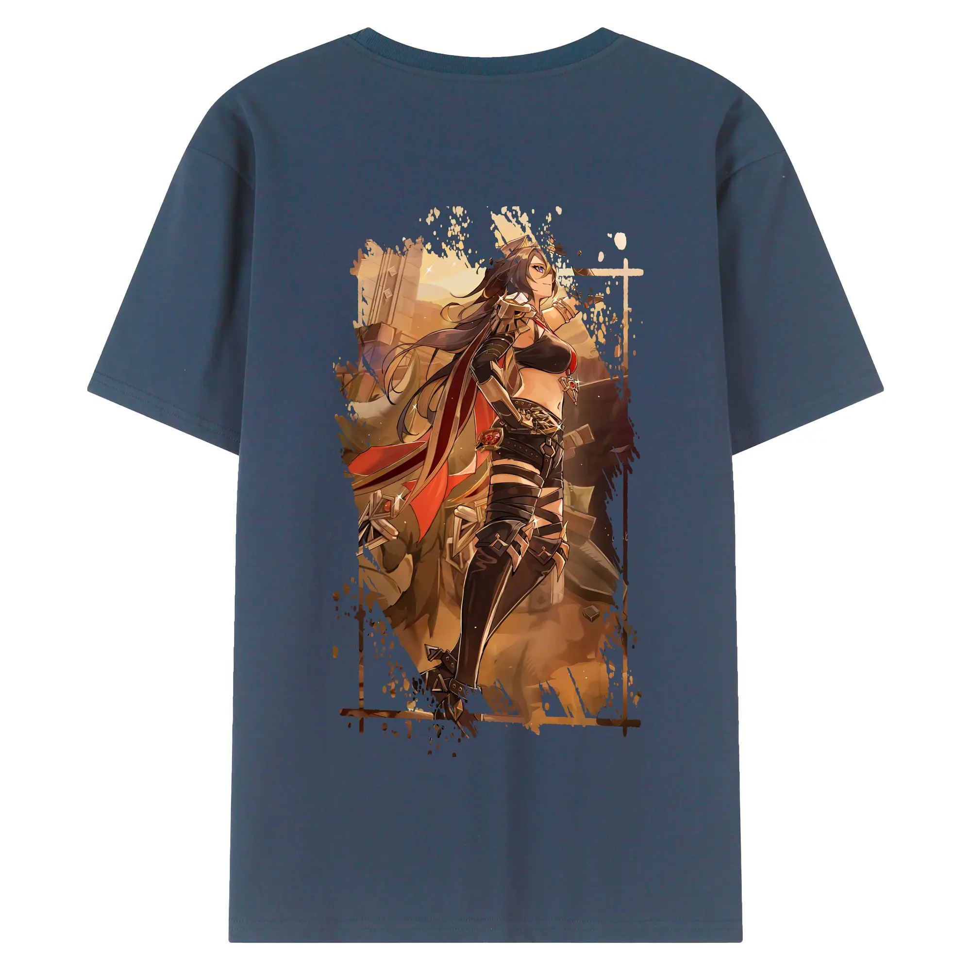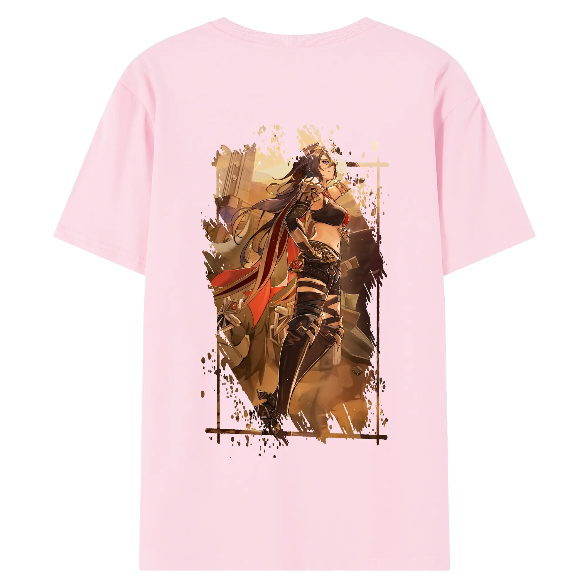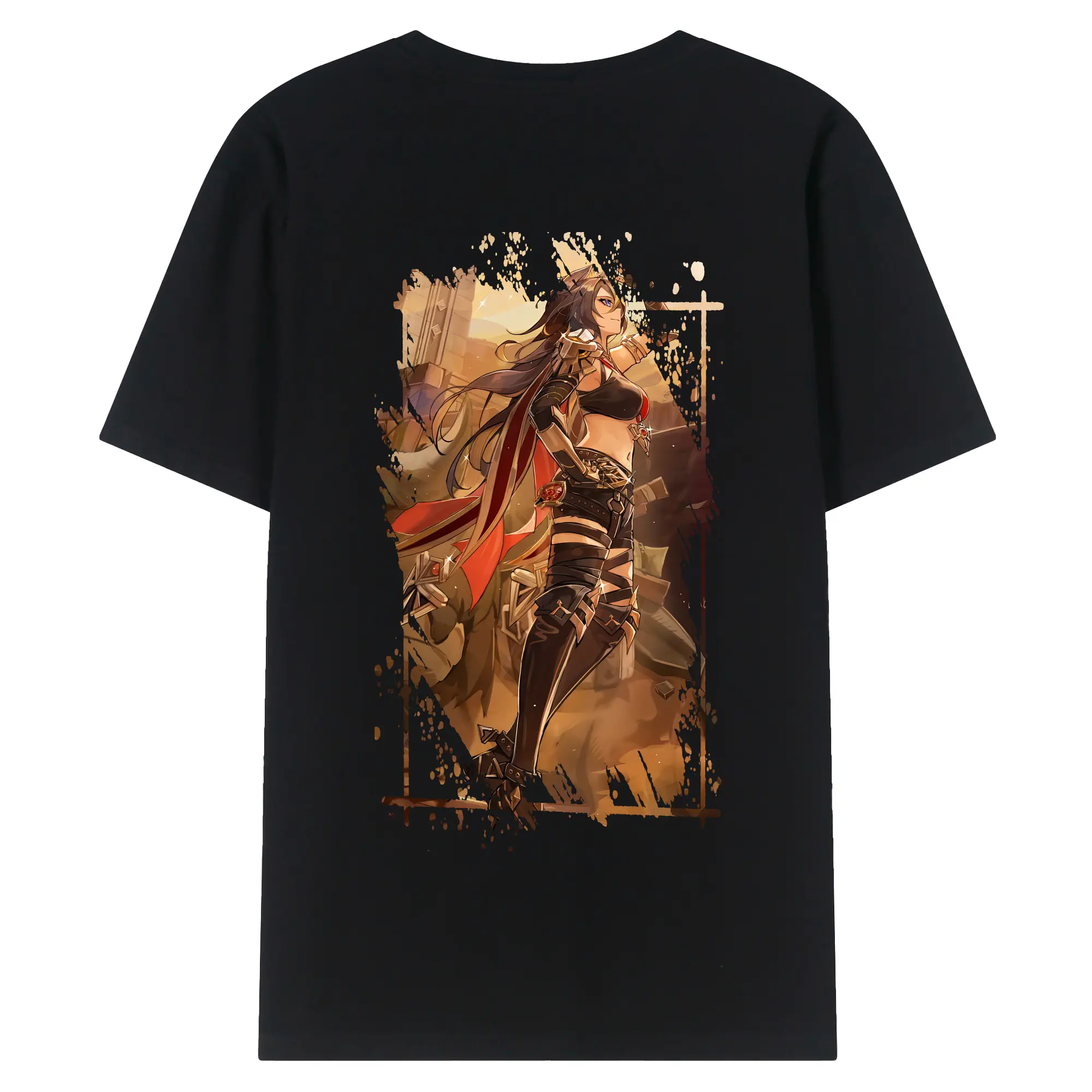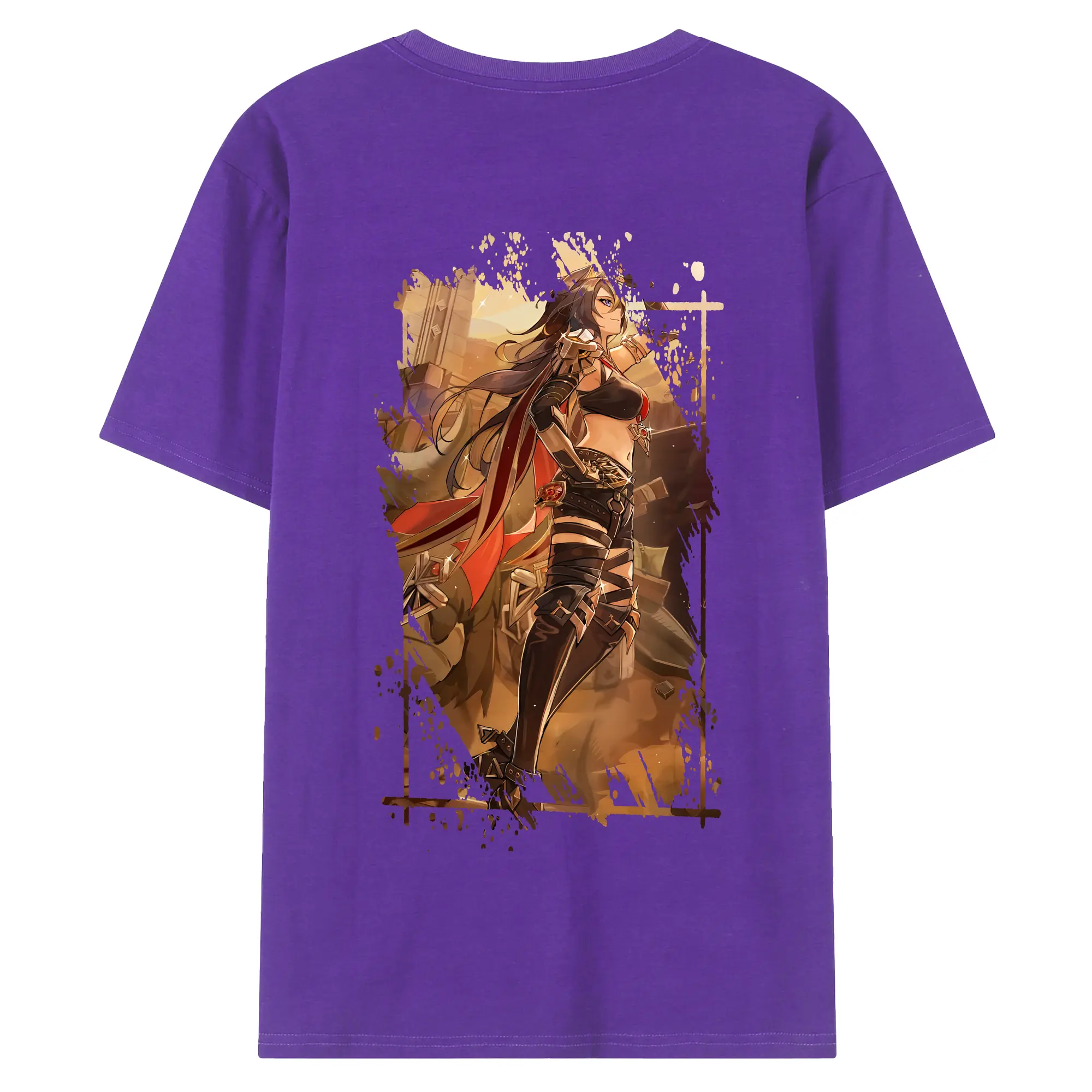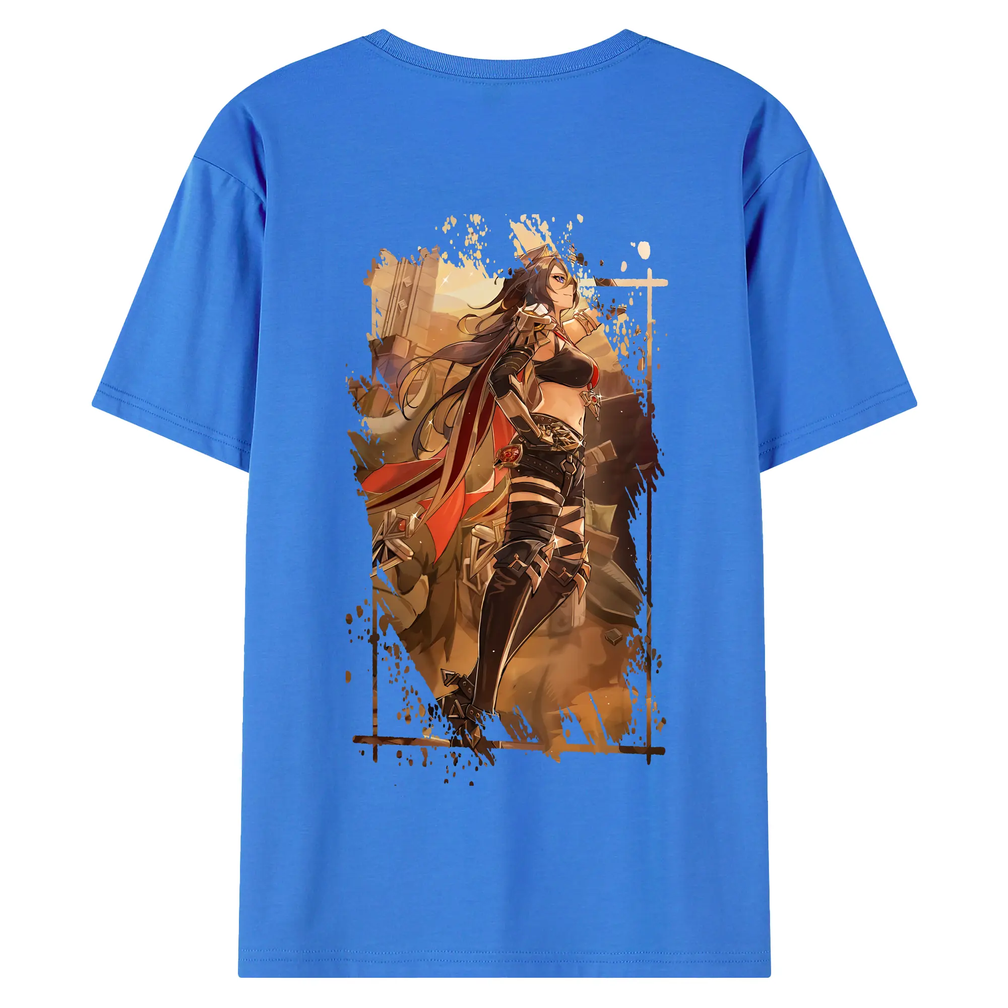 原 神 グッズ ディシア - 綿100% ヴィンテージ風 半袖Tシャツ ・ 背面プリント ・ 柔らか肌触り ・ 通気性 快適 ・ スポーツ カジュアル 外出用