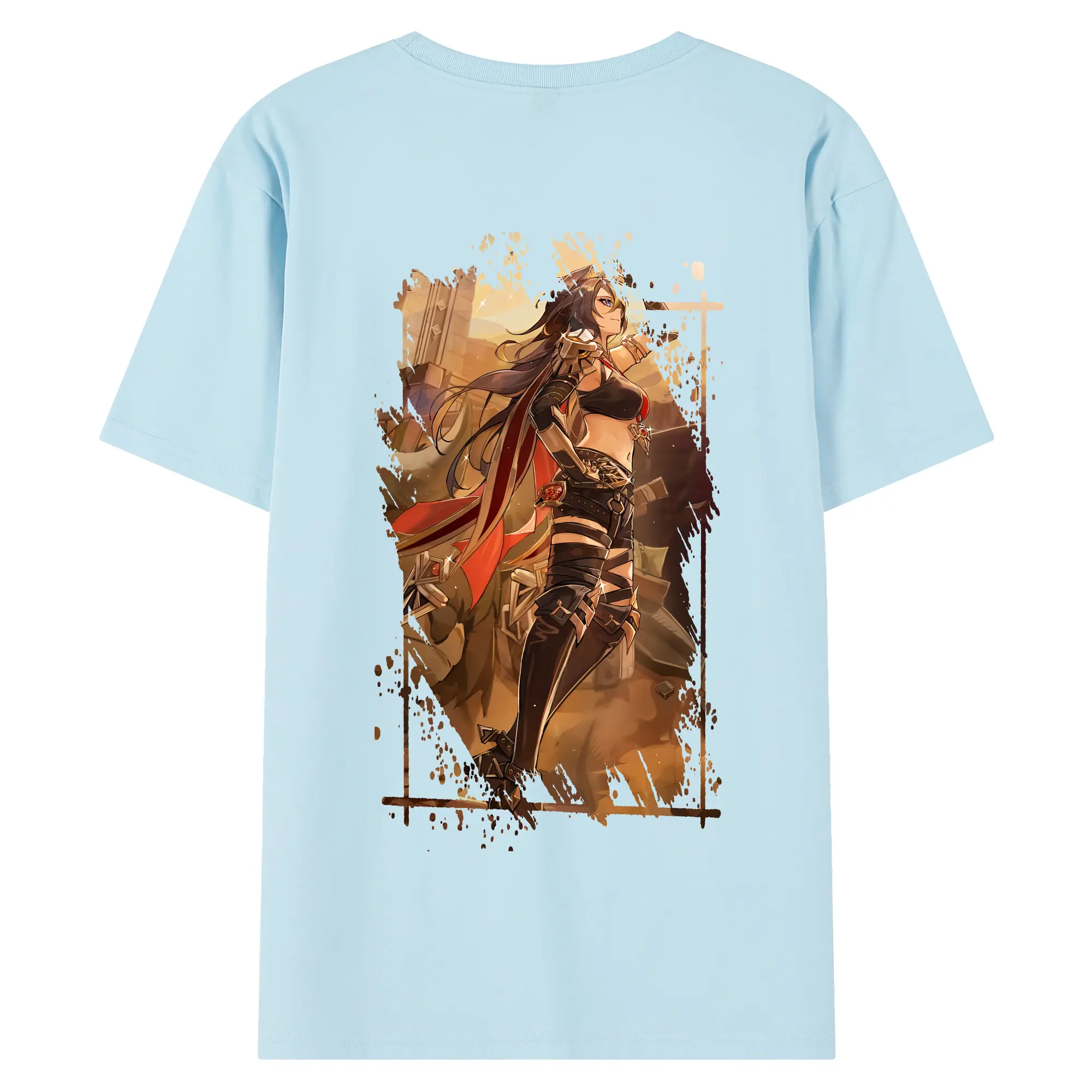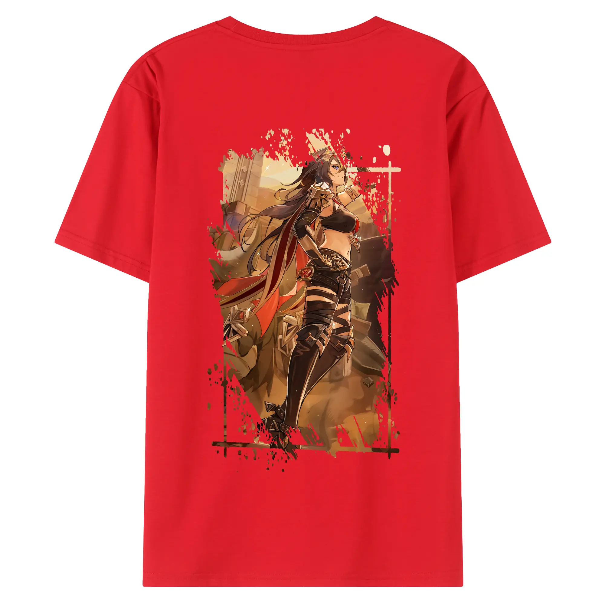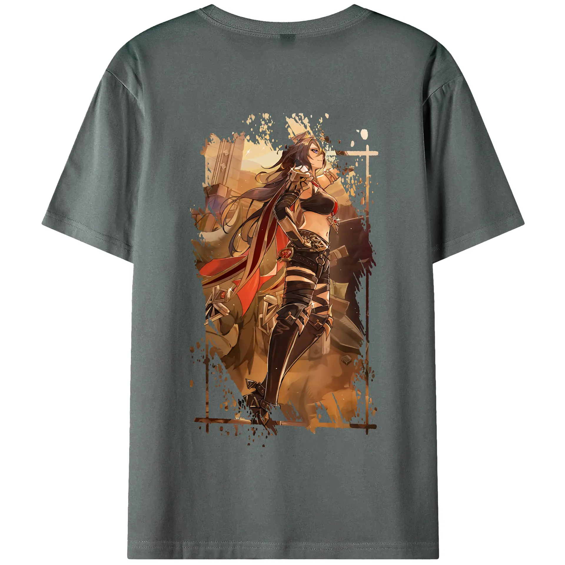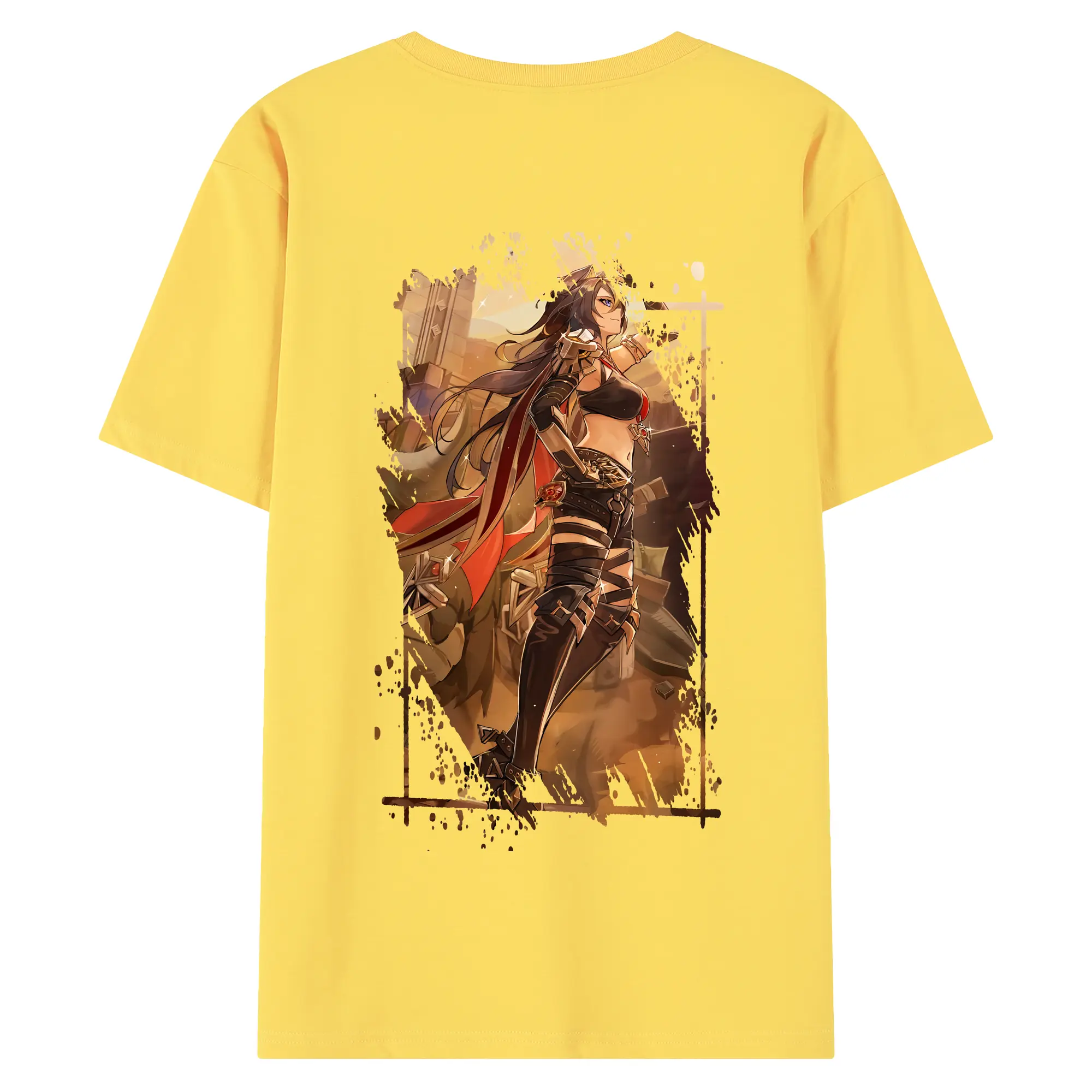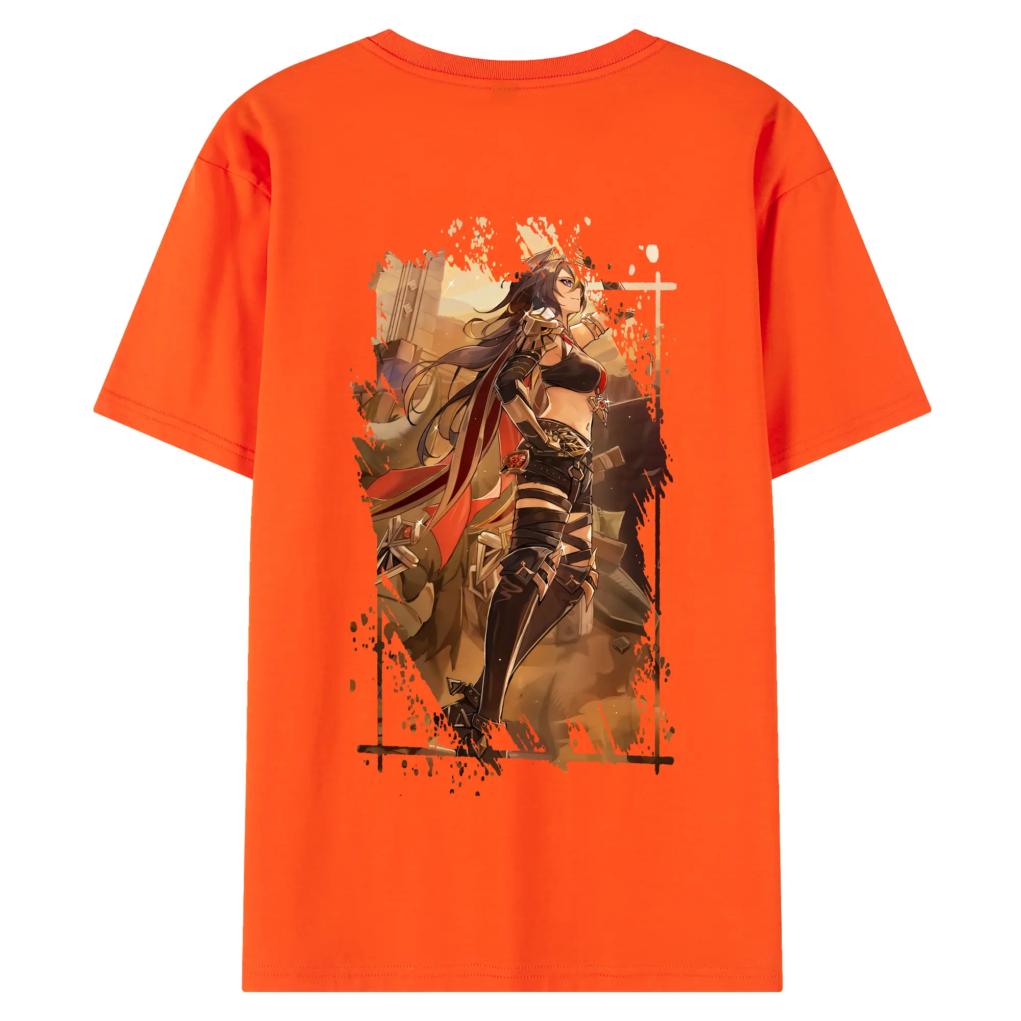 原 神 グッズ ディシア - 綿100% ヴィンテージ風 半袖Tシャツ ・ 背面プリント ・ 柔らか肌触り ・ 通気性 快適 ・ スポーツ カジュアル 外出用