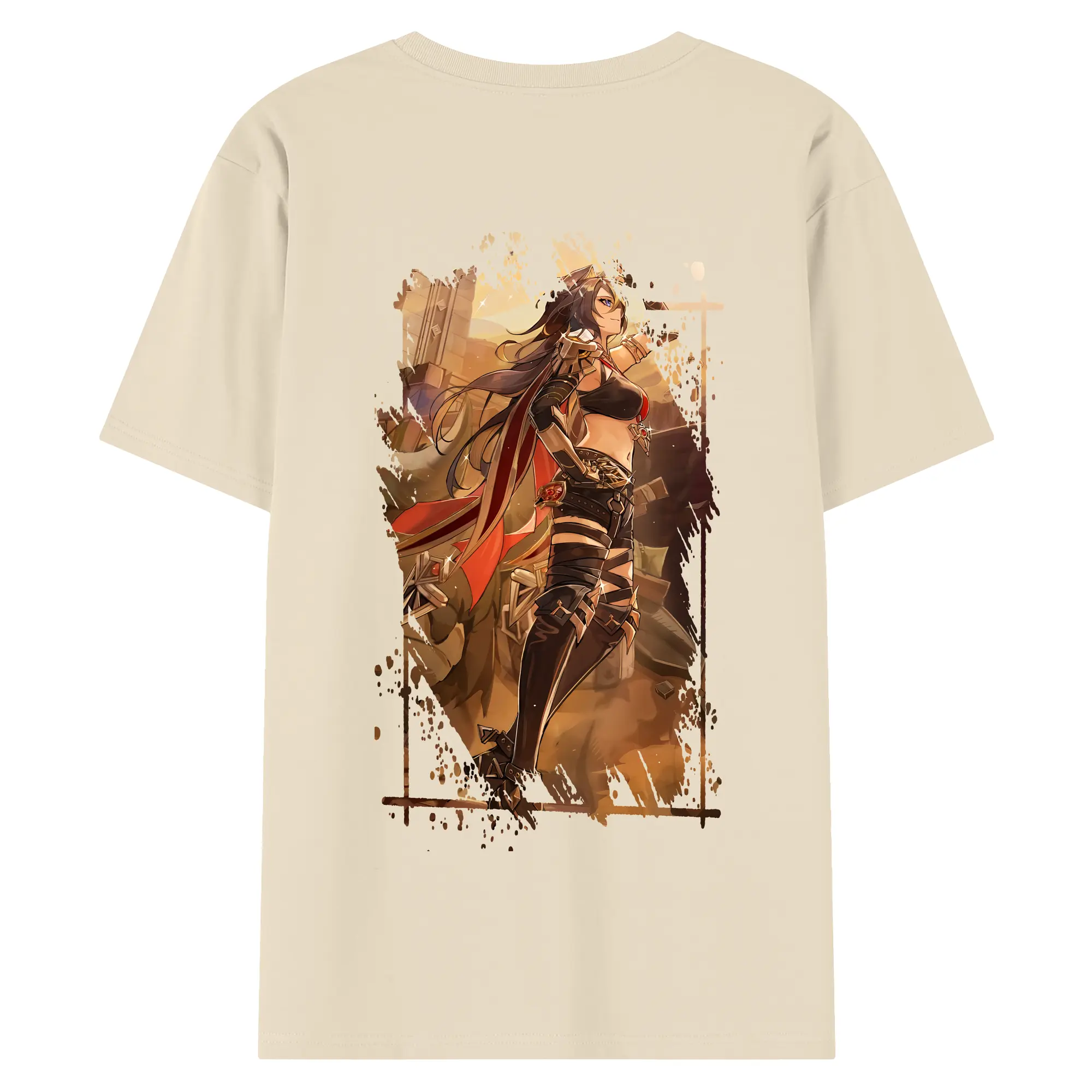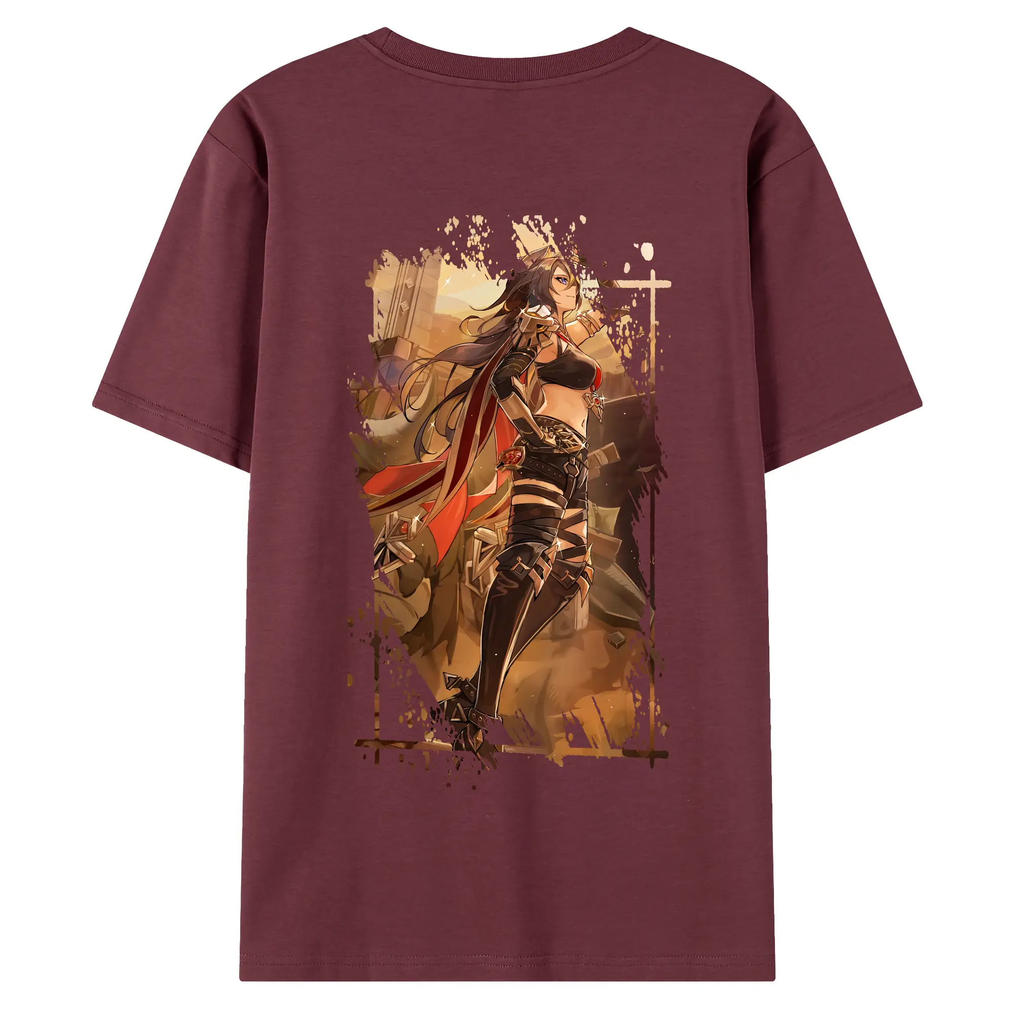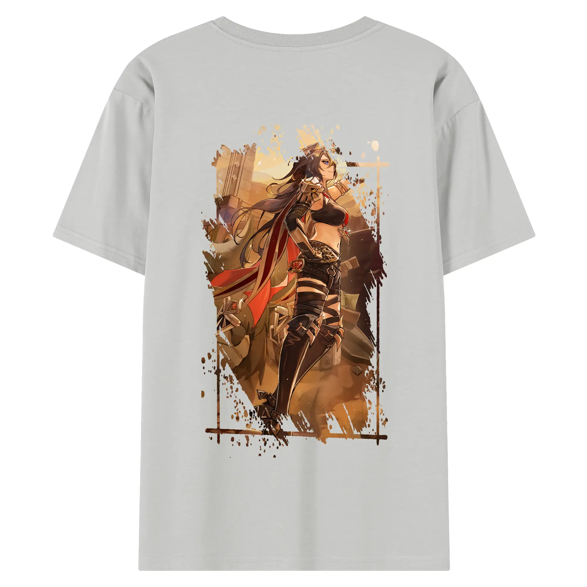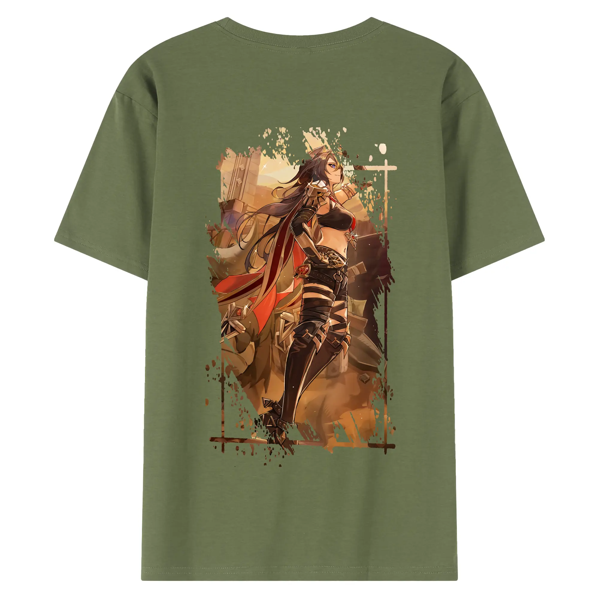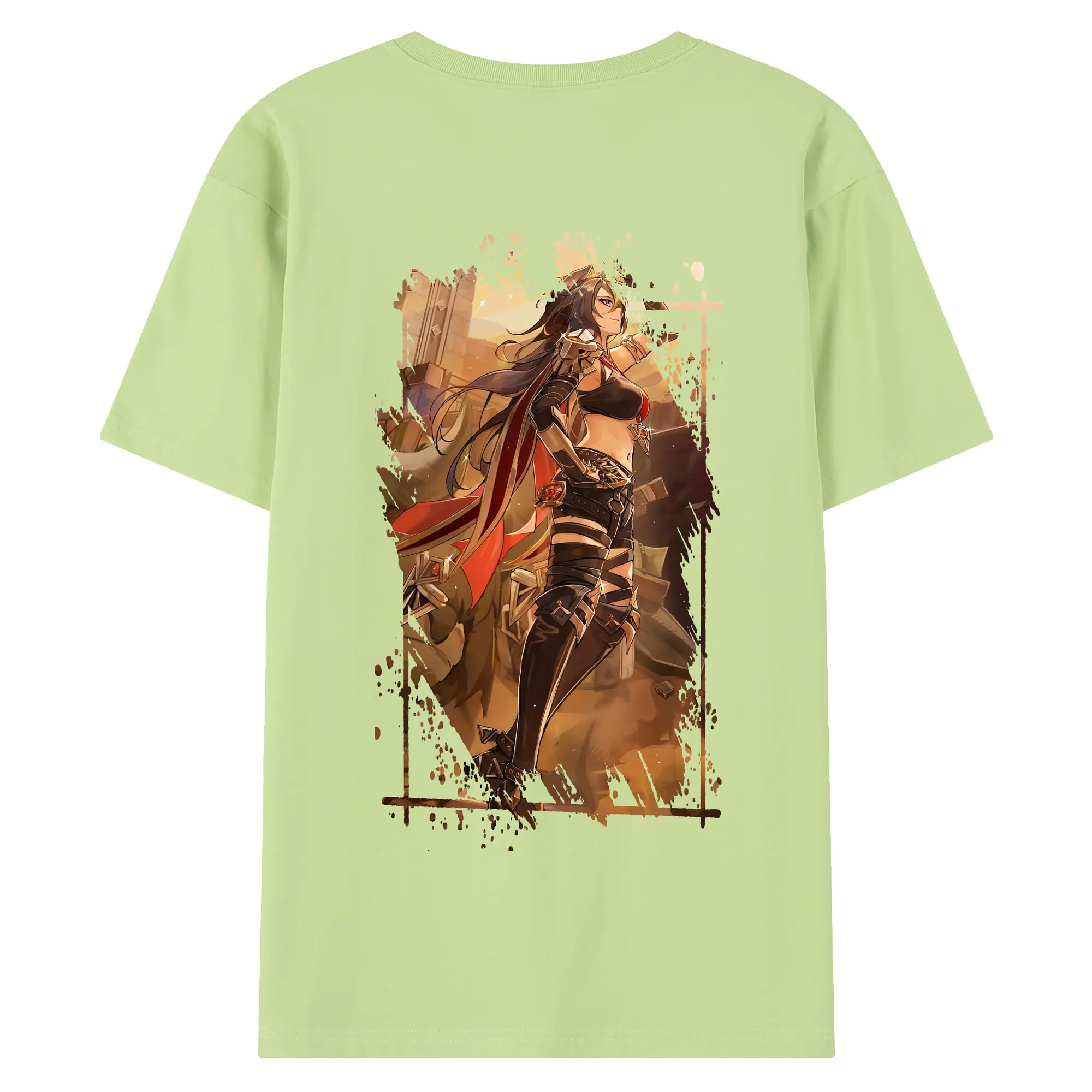 原 神 グッズ ディシア - 綿100% ヴィンテージ風 半袖Tシャツ ・ 背面プリント ・ 柔らか肌触り ・ 通気性 快適 ・ スポーツ カジュアル 外出用