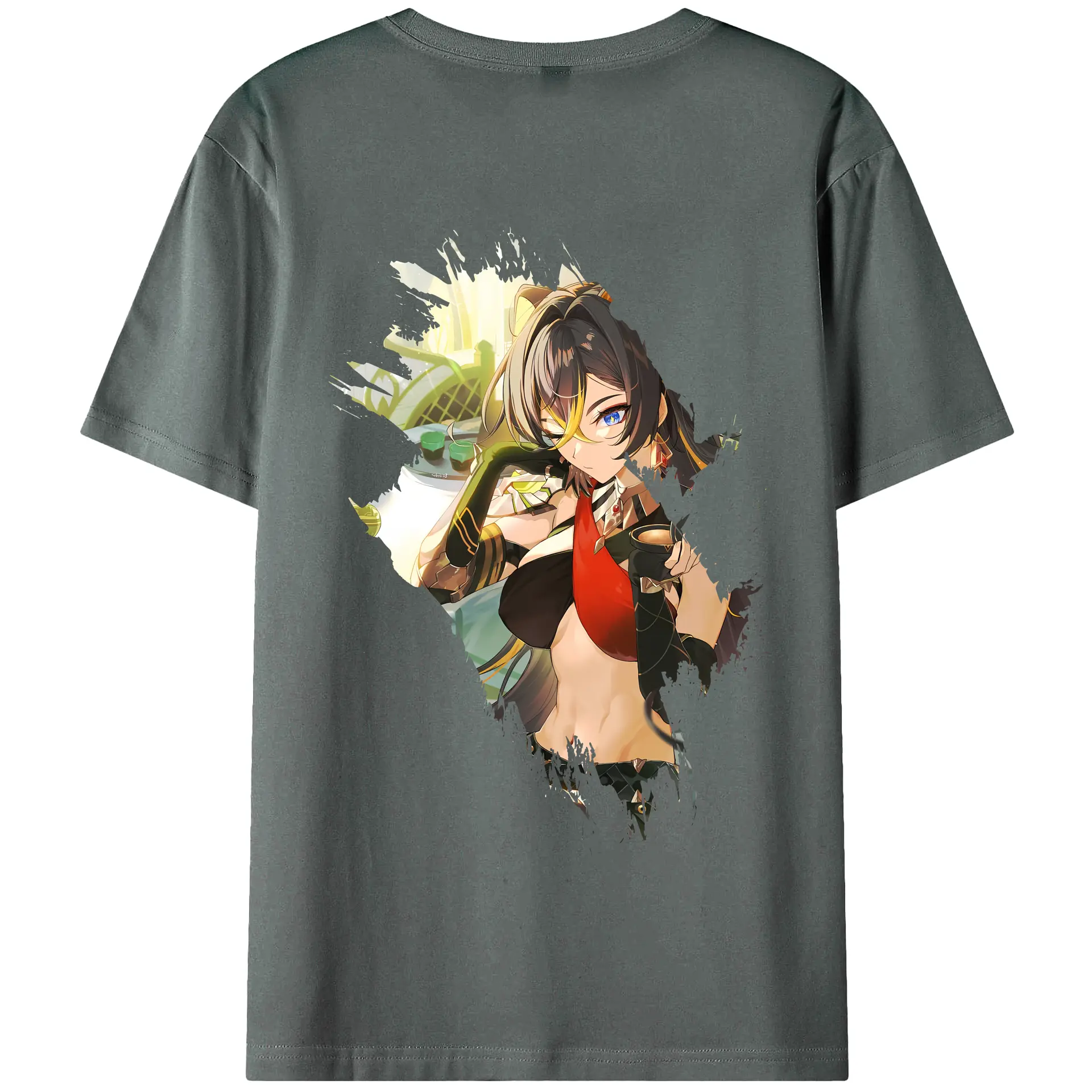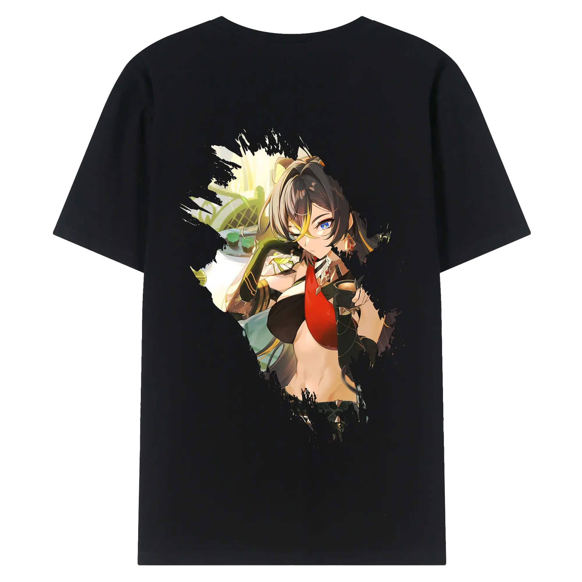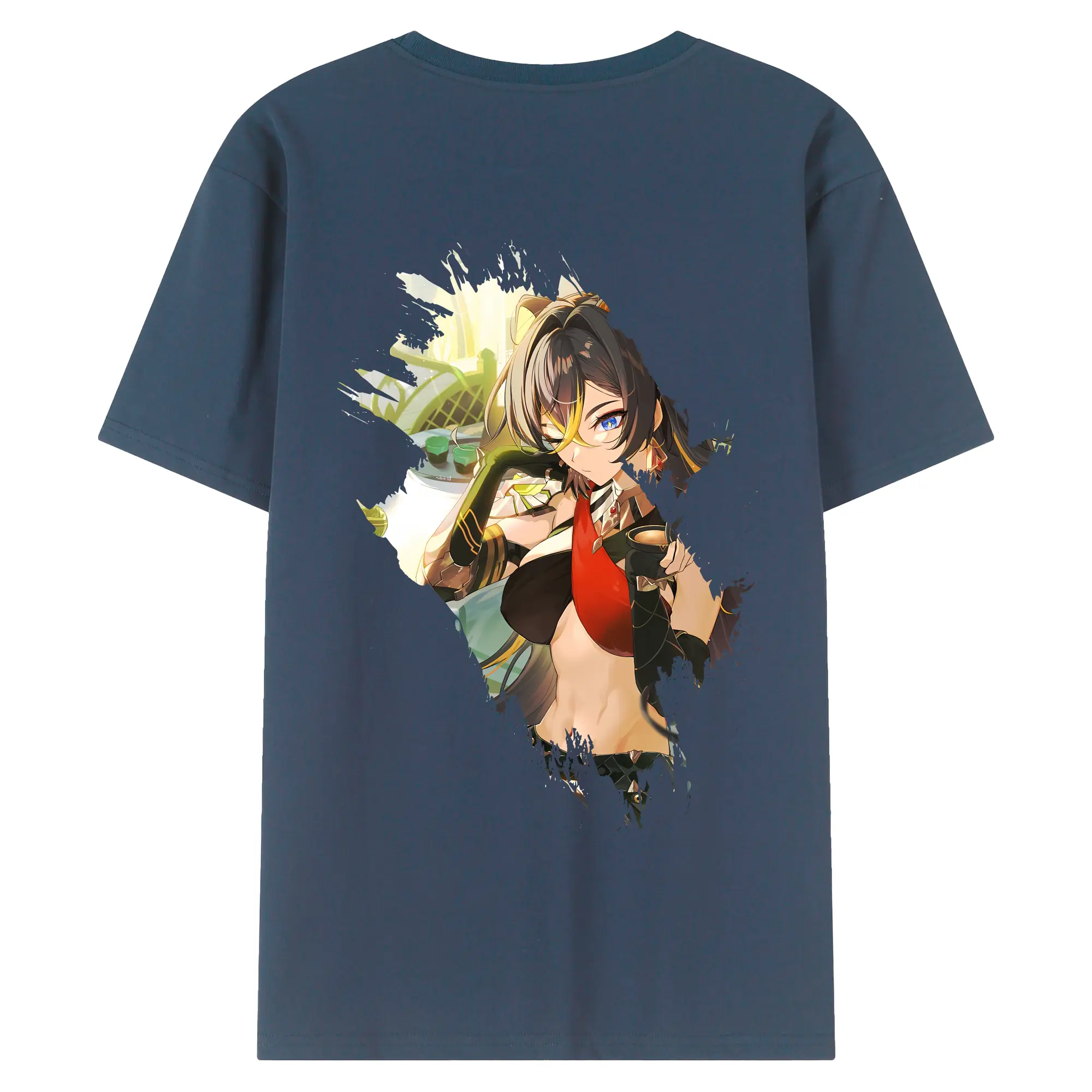 原 神 グッズ ディシア - 綿100% ヴィンテージ風 半袖Tシャツ ・ 背面プリント ・ 柔らか肌触り ・ 通気性 快適 ・ スポーツ カジュアル 外出用