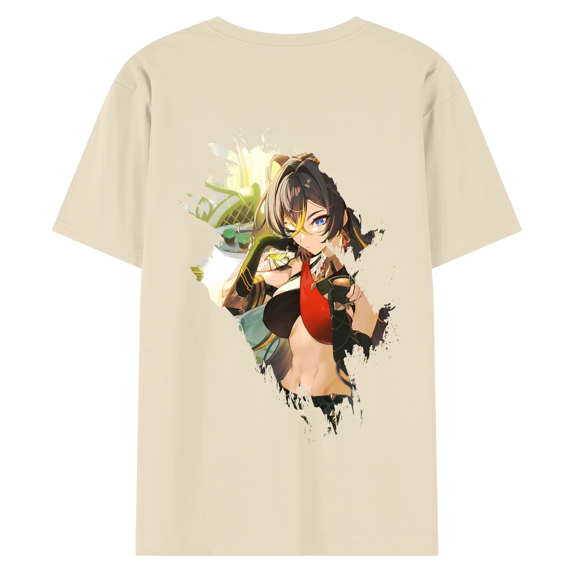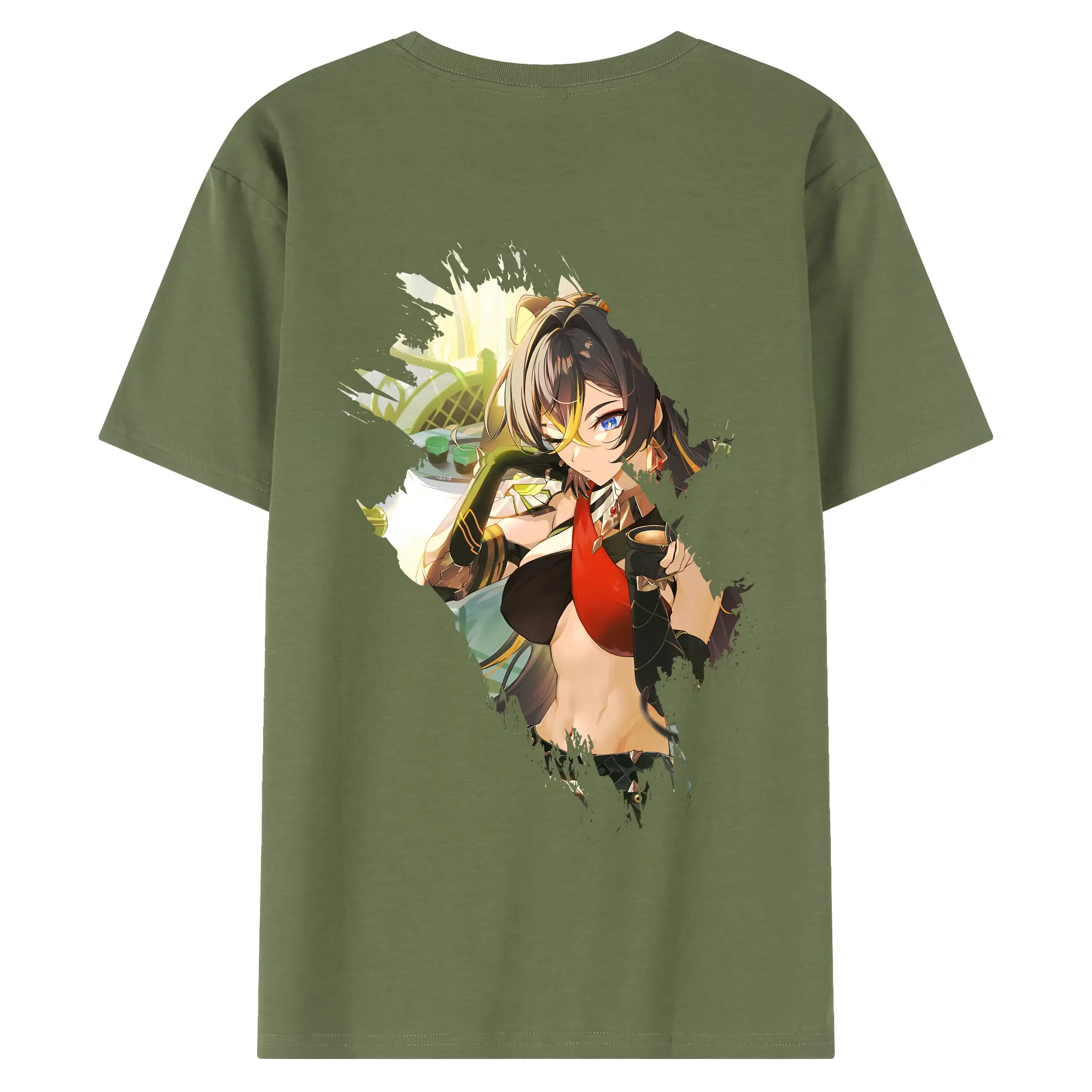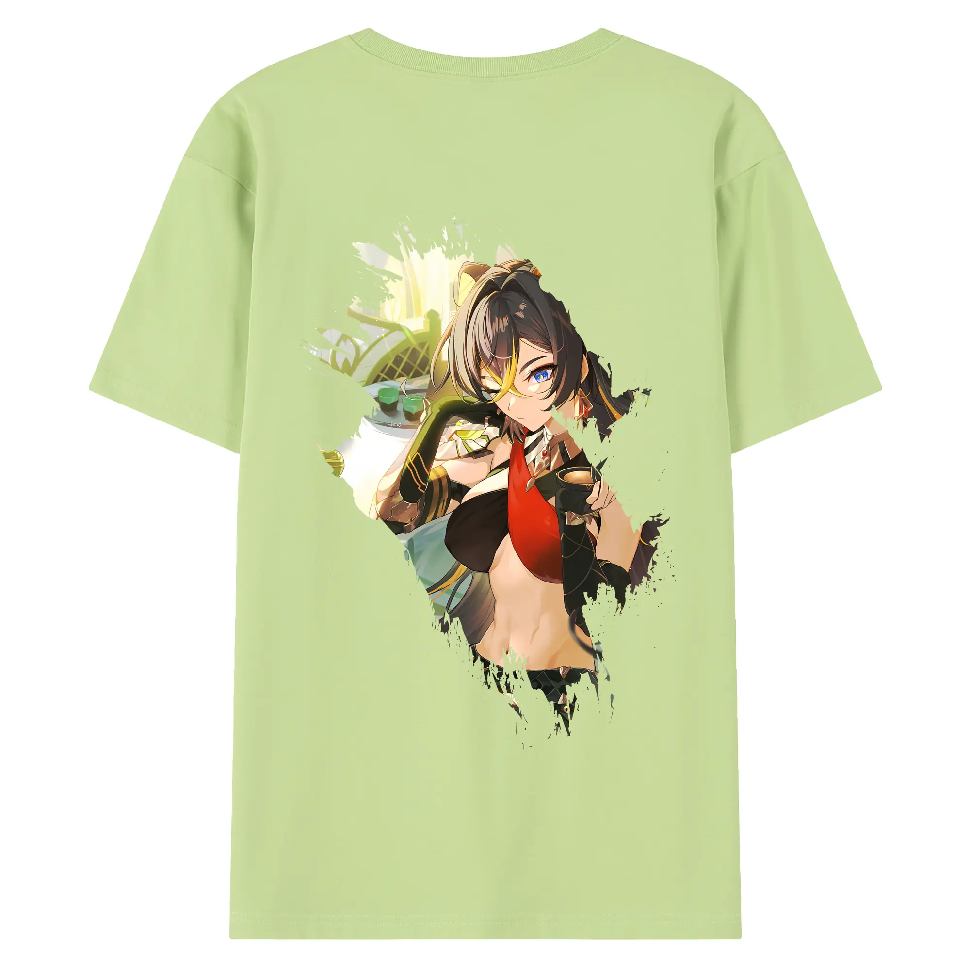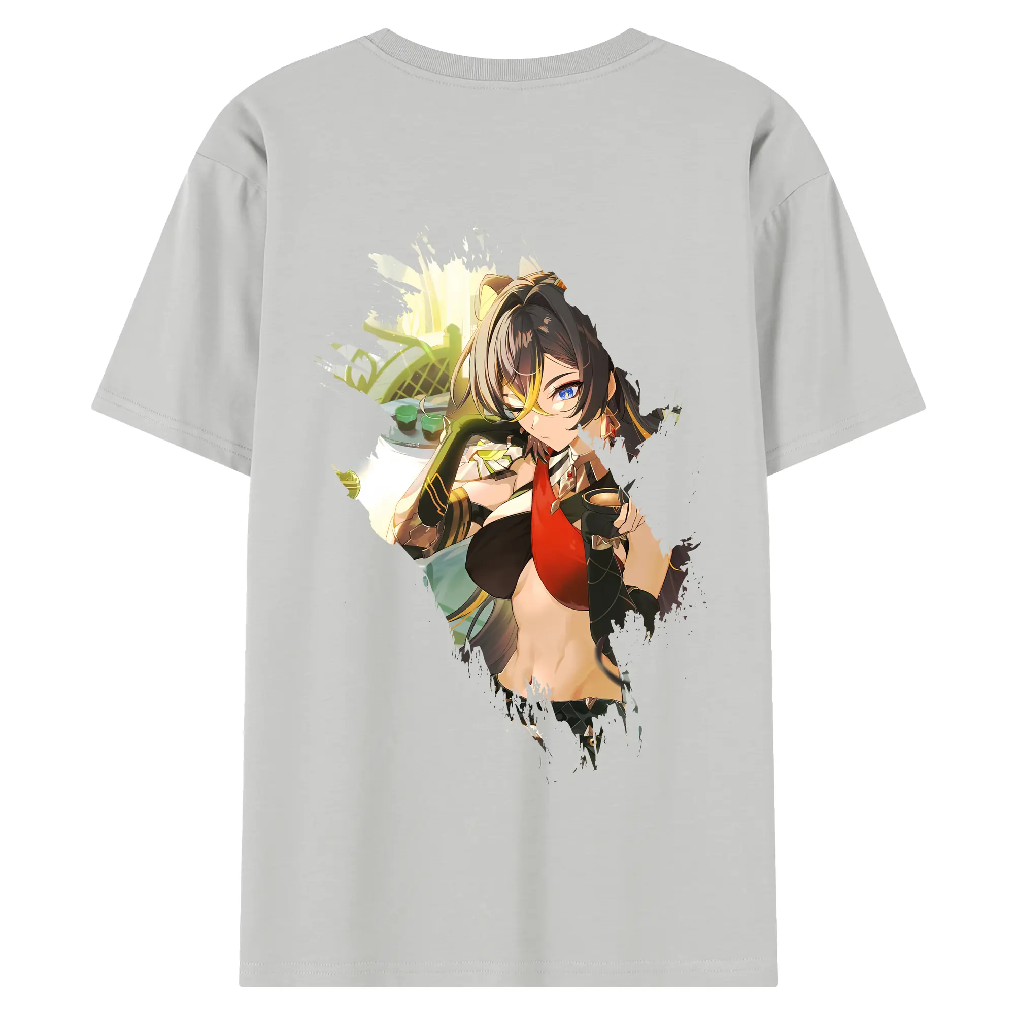 原 神 グッズ ディシア - 綿100% ヴィンテージ風 半袖Tシャツ ・ 背面プリント ・ 柔らか肌触り ・ 通気性 快適 ・ スポーツ カジュアル 外出用
