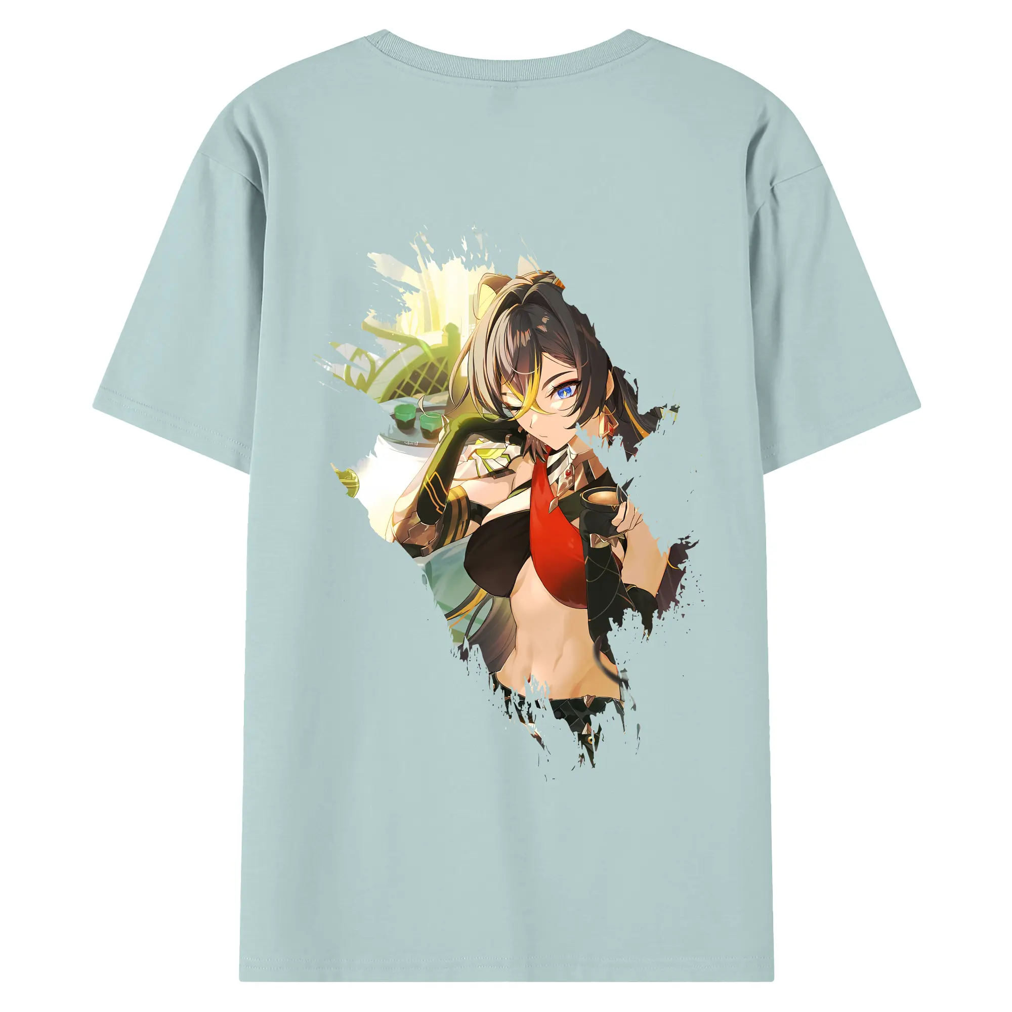 原 神 グッズ ディシア - 綿100% 半袖Tシャツ ・ フロントプリント ・ 快適 通気性 ・ 日常使い 散歩 スポーツ用