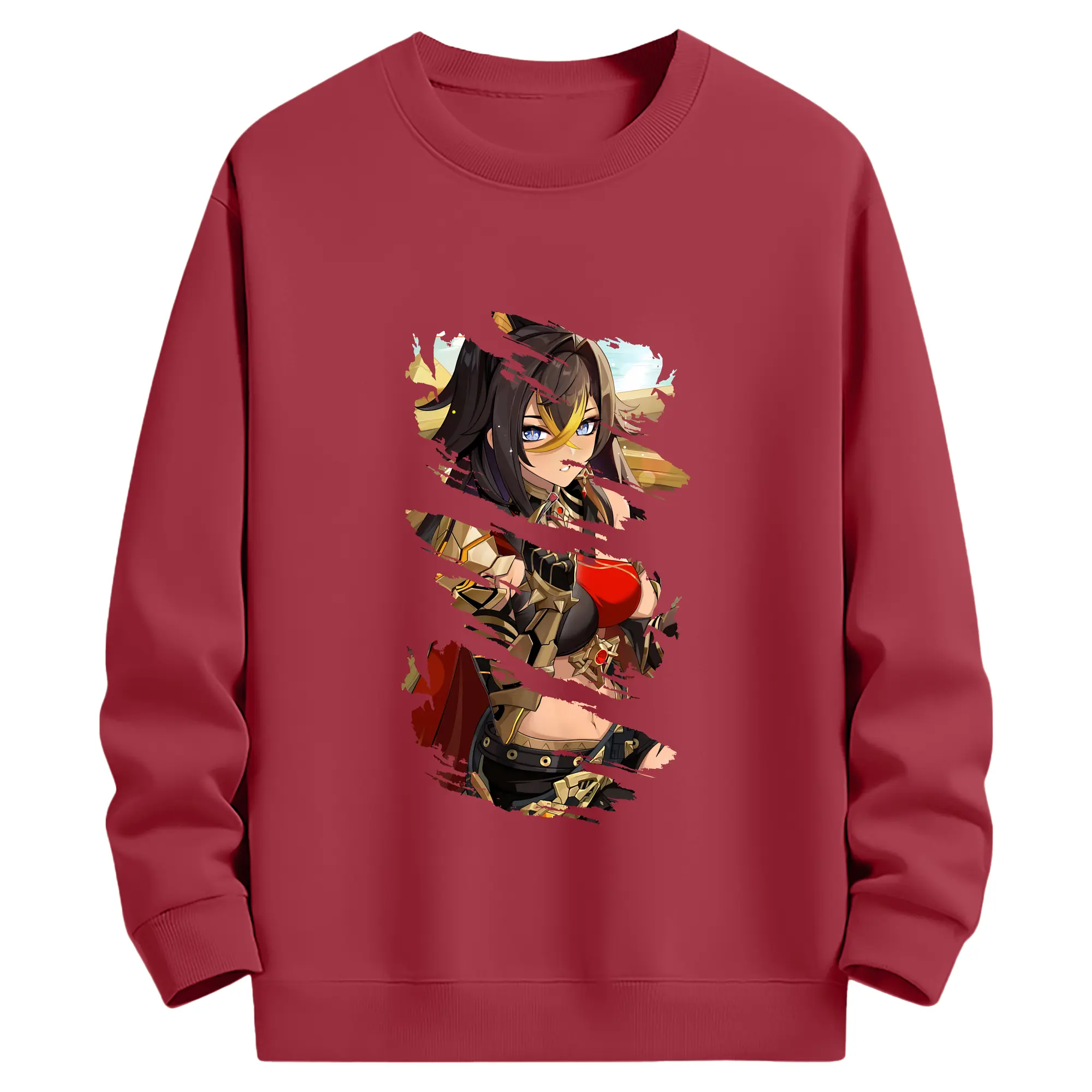 鳴潮 グッズ ツバキ - 高品質 クルーネック スウェット ・ コットン59% ポリエステル41% ・ ユニセックス 長袖 トレーナー ・ カジュアル デイリー スポーツ 散歩用