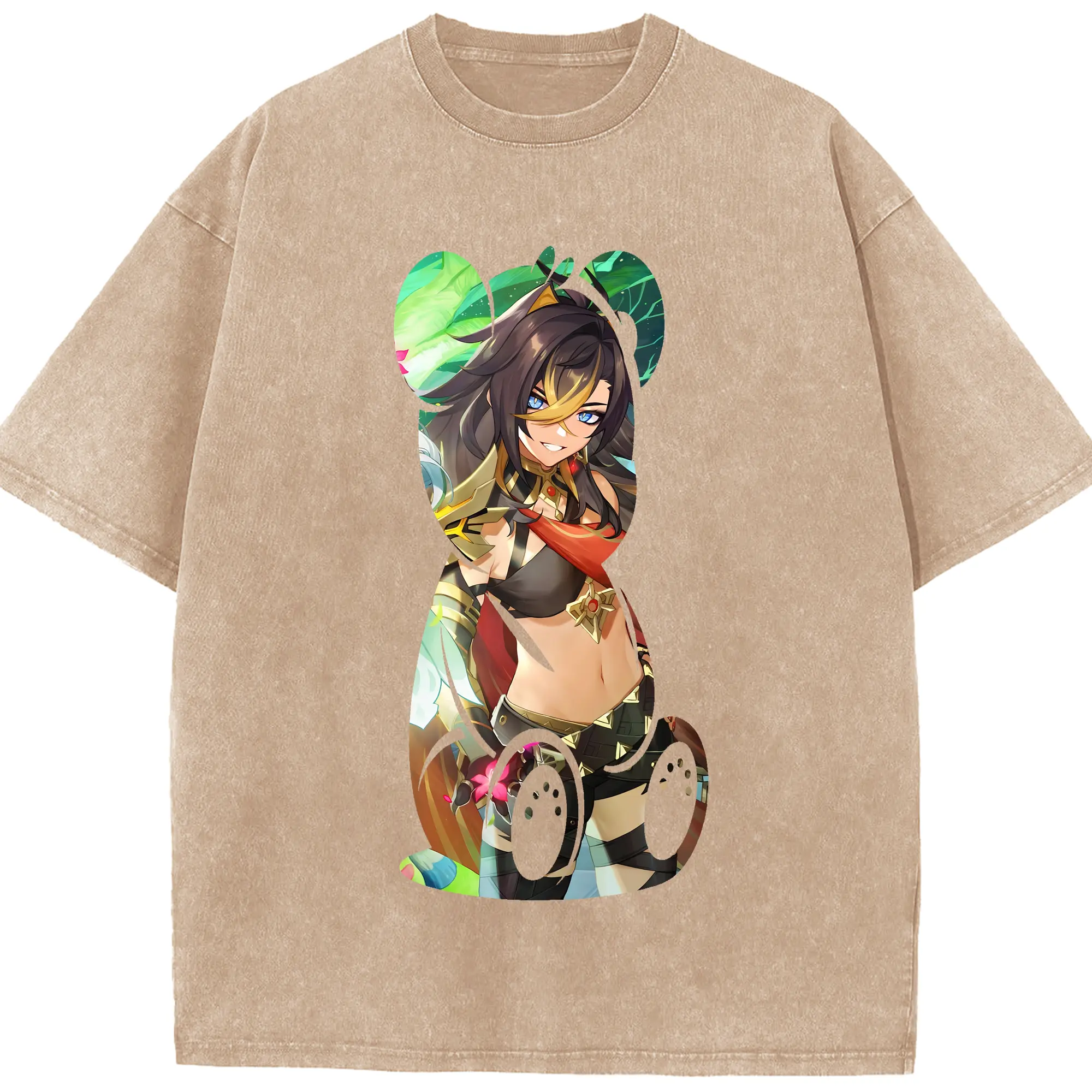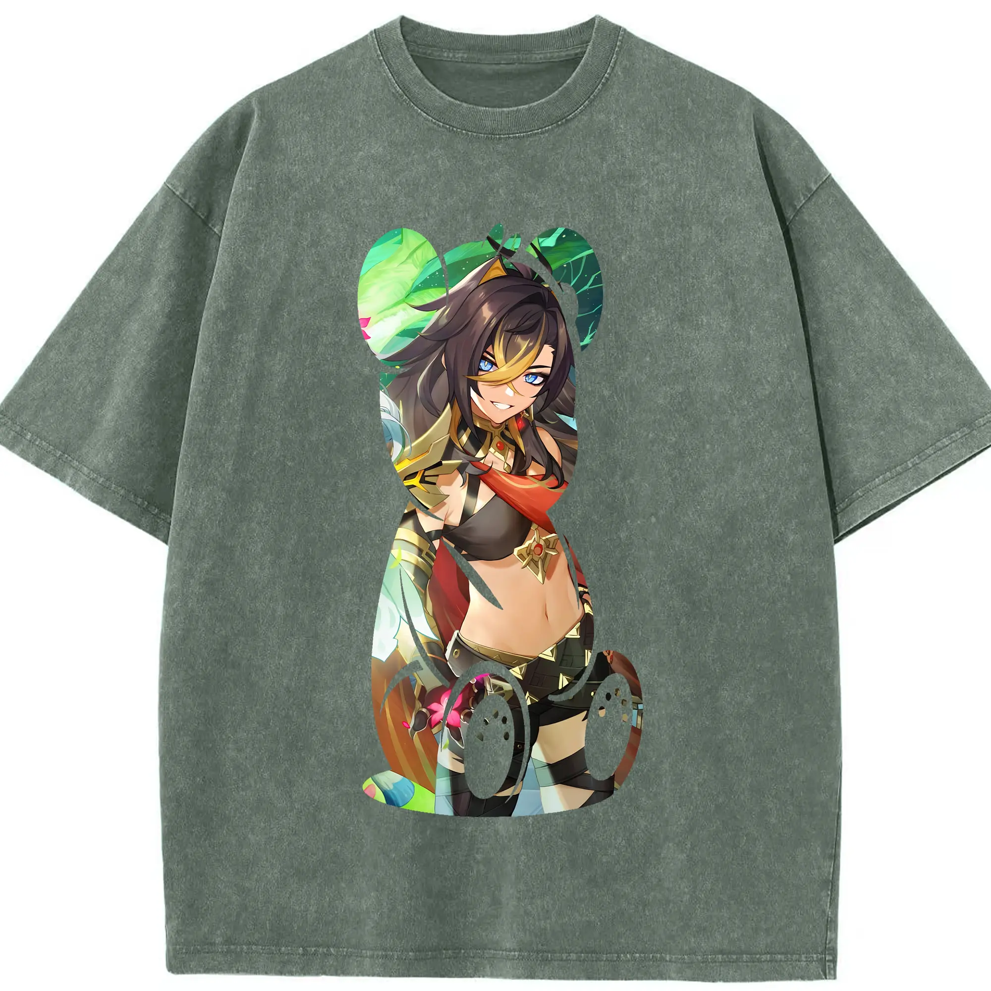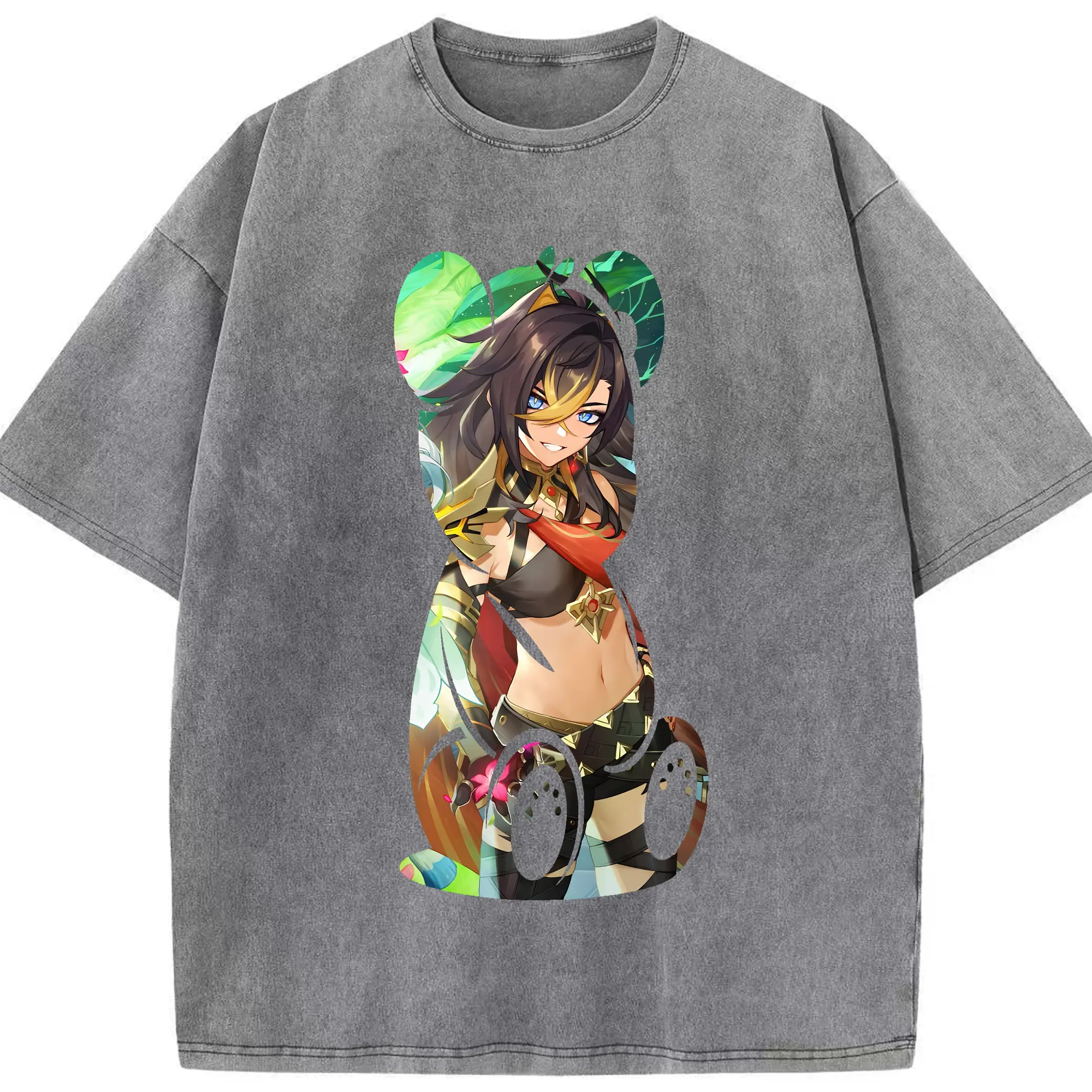 原 神 グッズ ディシア - 綿100% ヴィンテージ風 半袖Tシャツ ・ 背面プリント ・ 柔らか肌触り ・ 通気性 快適 ・ スポーツ カジュアル 外出用