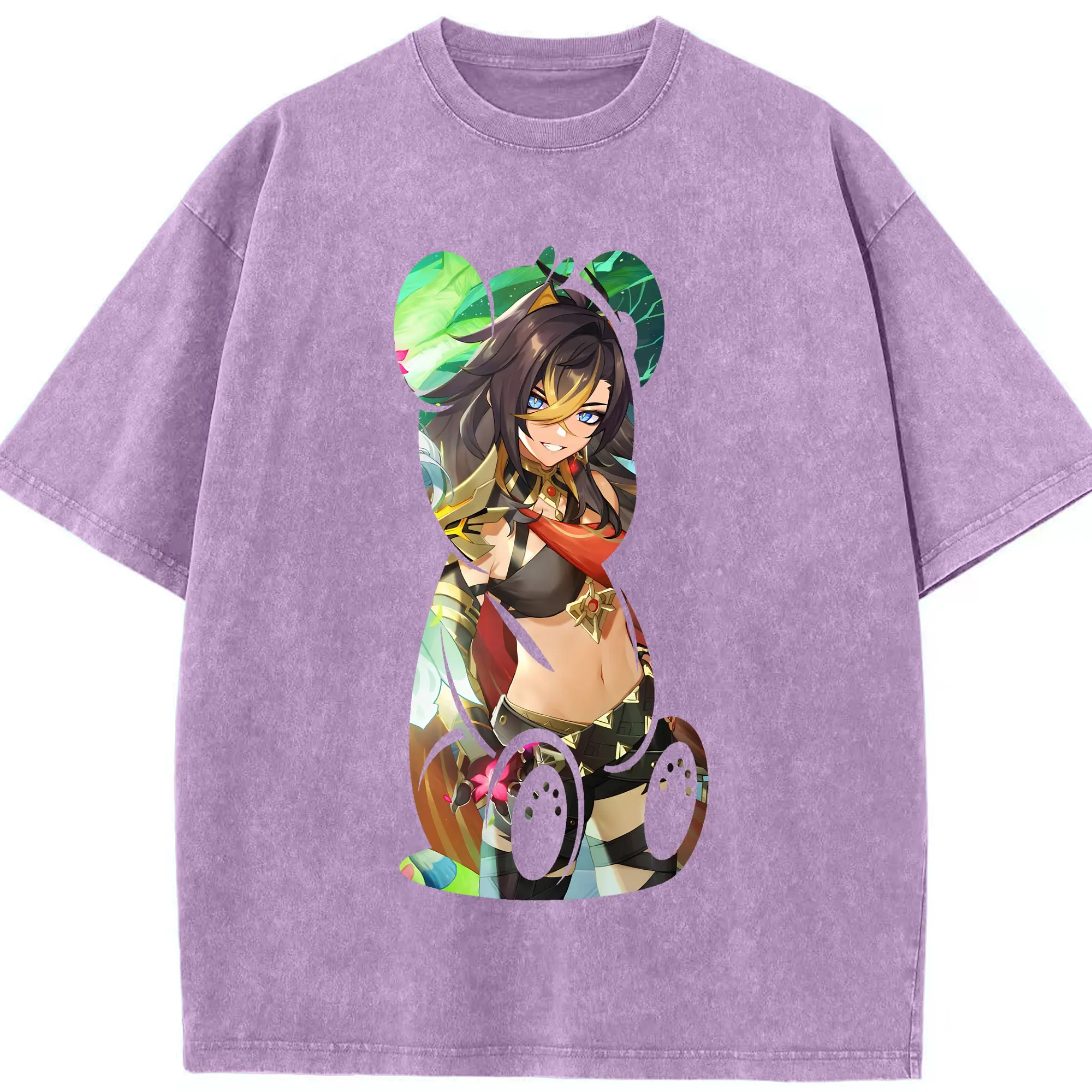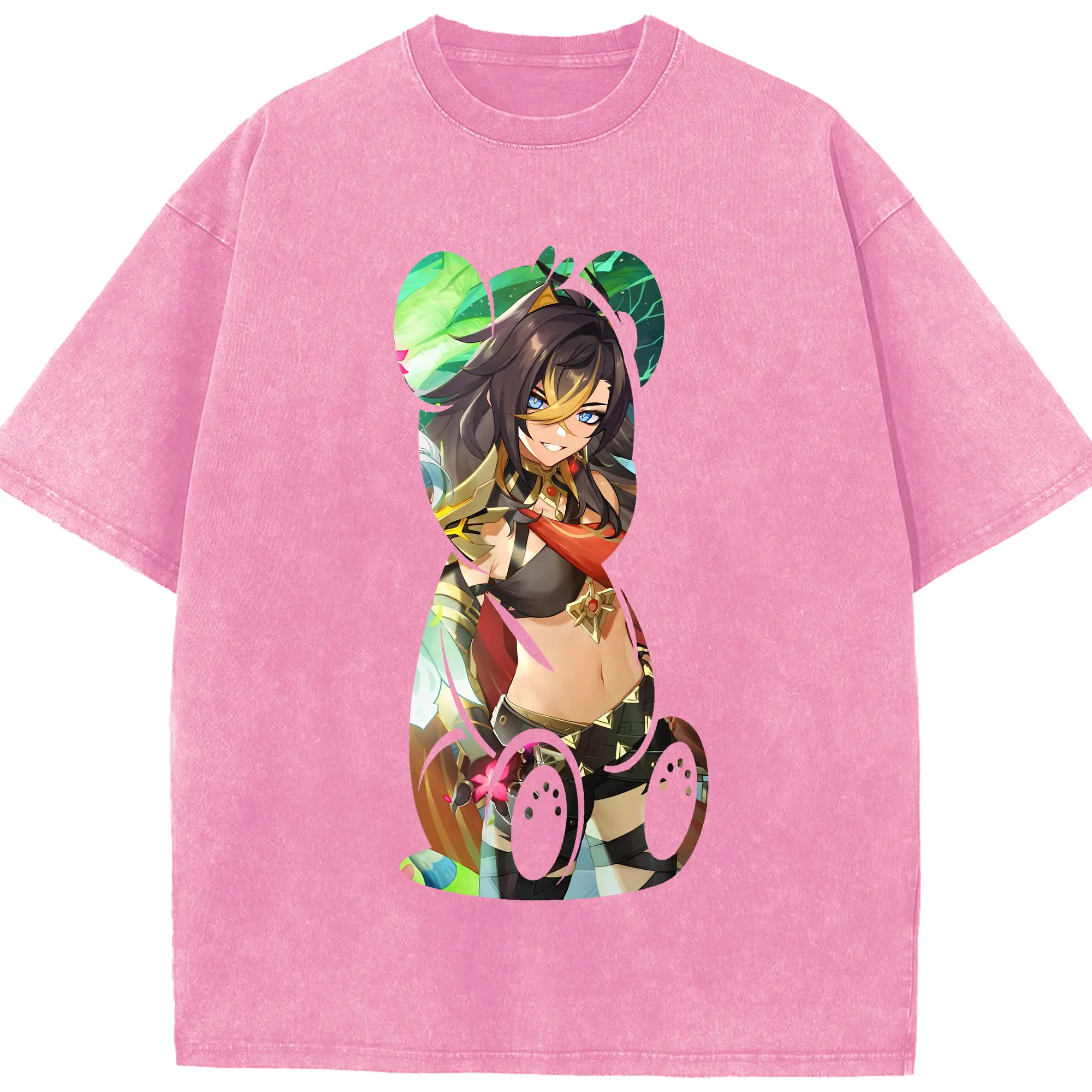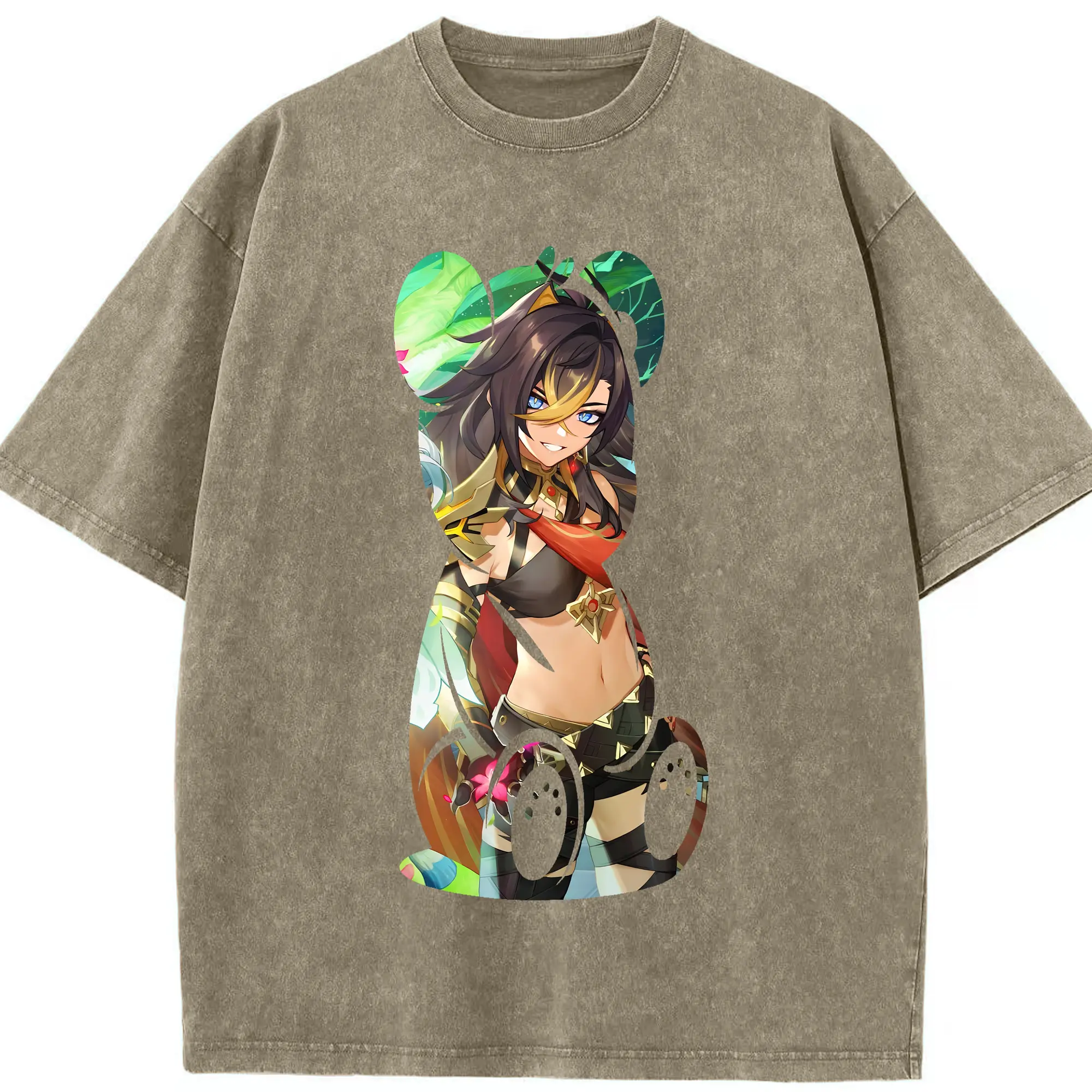 原 神 グッズ ディシア - 綿100% ヴィンテージ風 半袖Tシャツ ・ 背面プリント ・ 柔らか肌触り ・ 通気性 快適 ・ スポーツ カジュアル 外出用