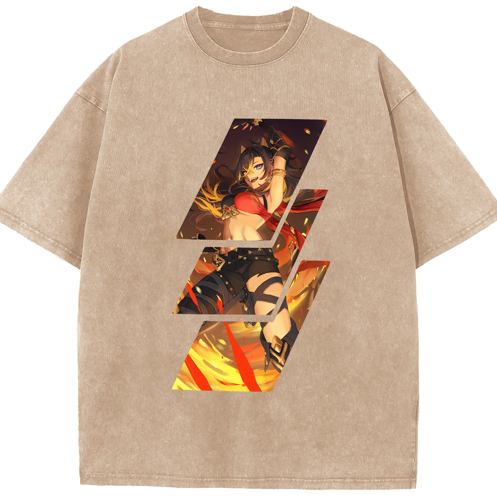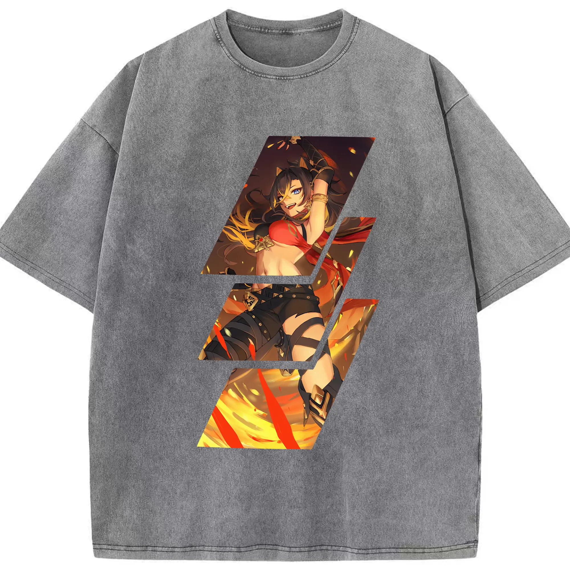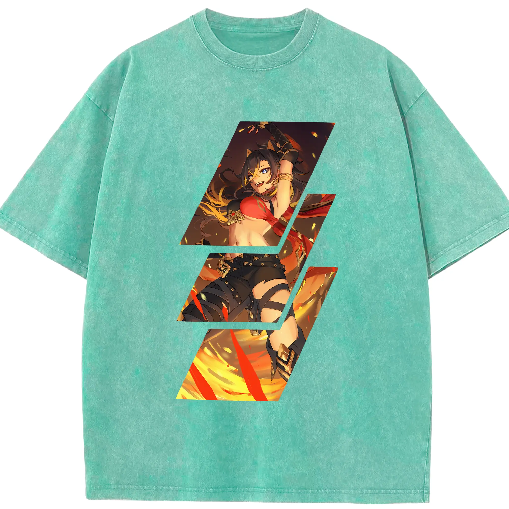 原 神 グッズ ディシア - 綿100% ヴィンテージ風 半袖Tシャツ ・ 背面プリント ・ 柔らか肌触り ・ 通気性 快適 ・ スポーツ カジュアル 外出用