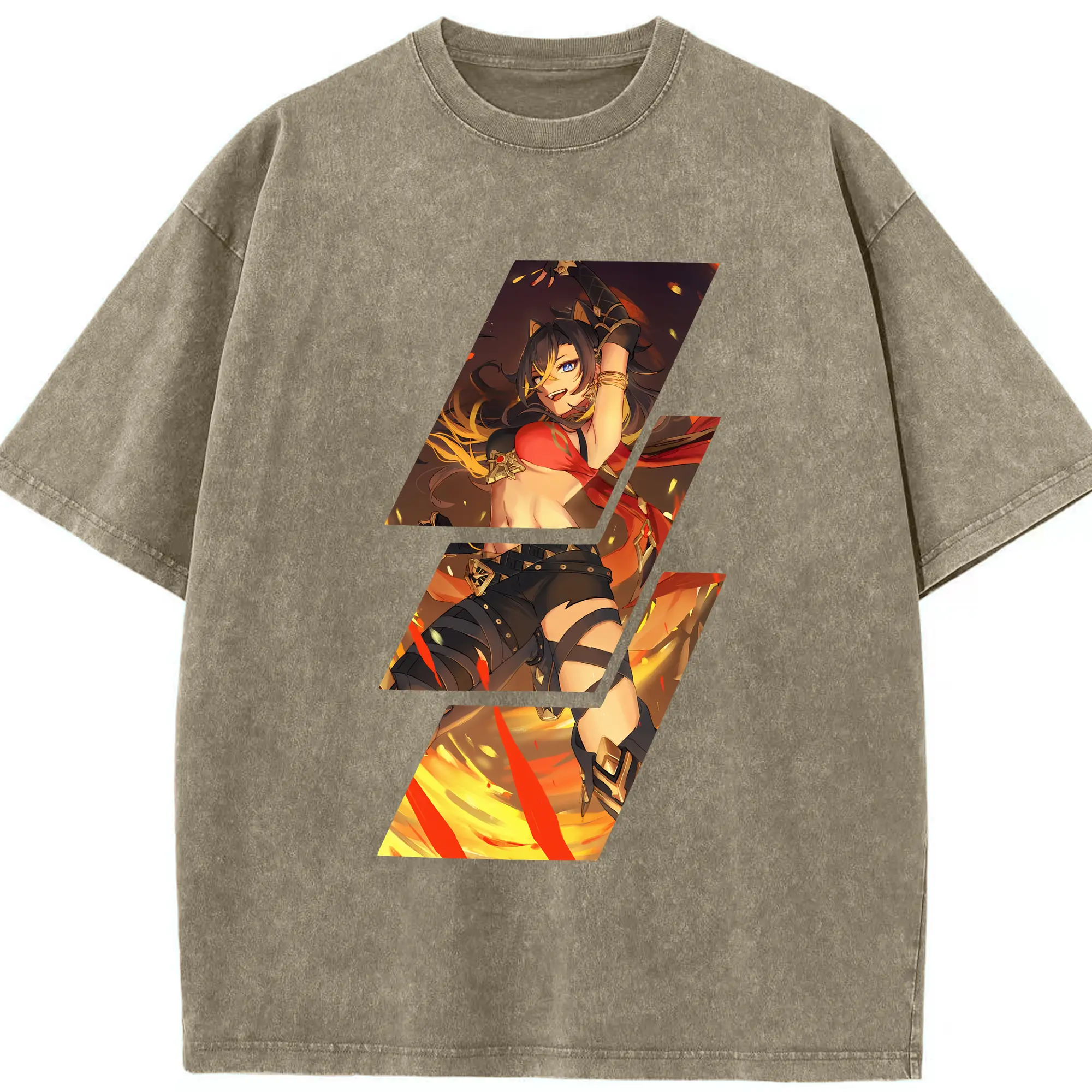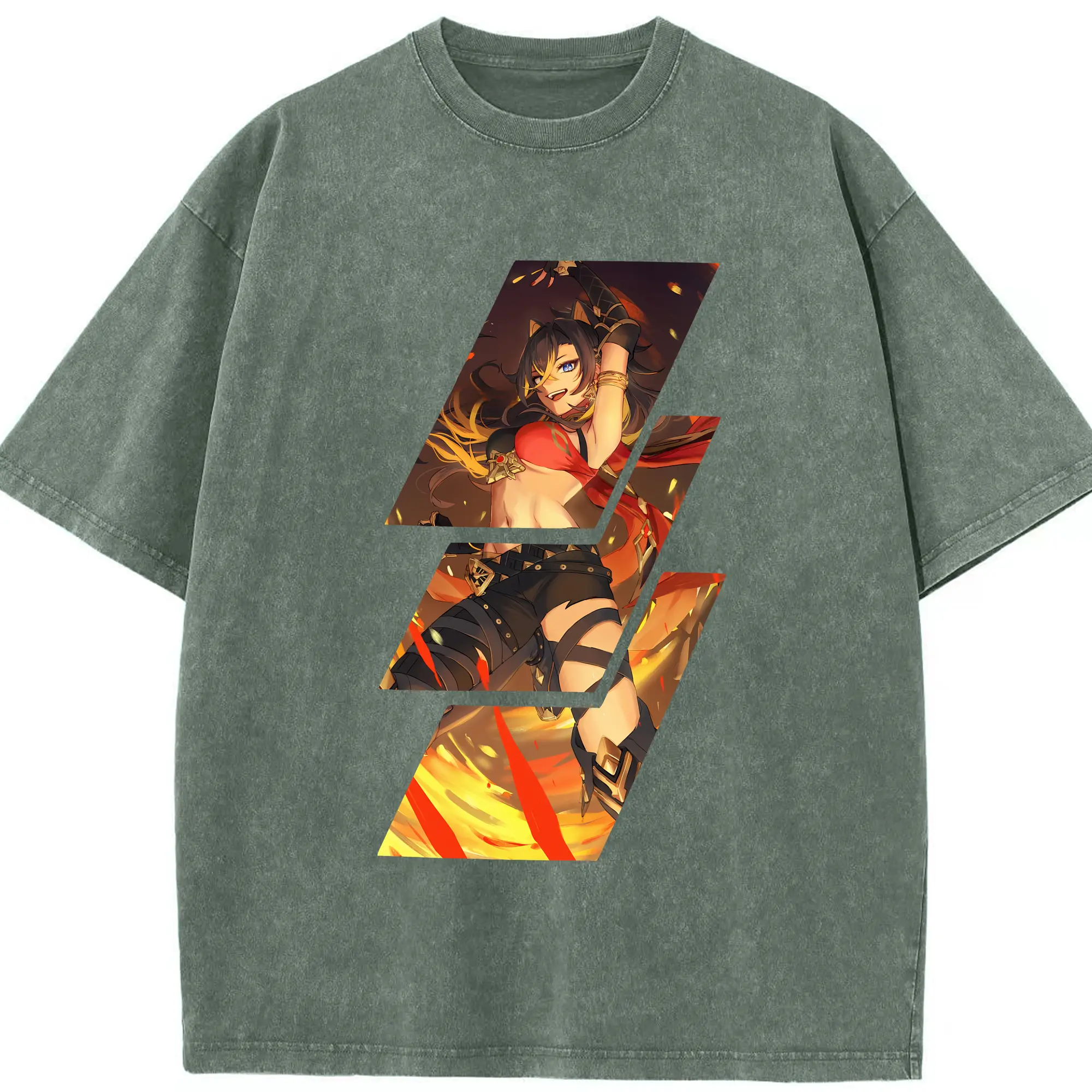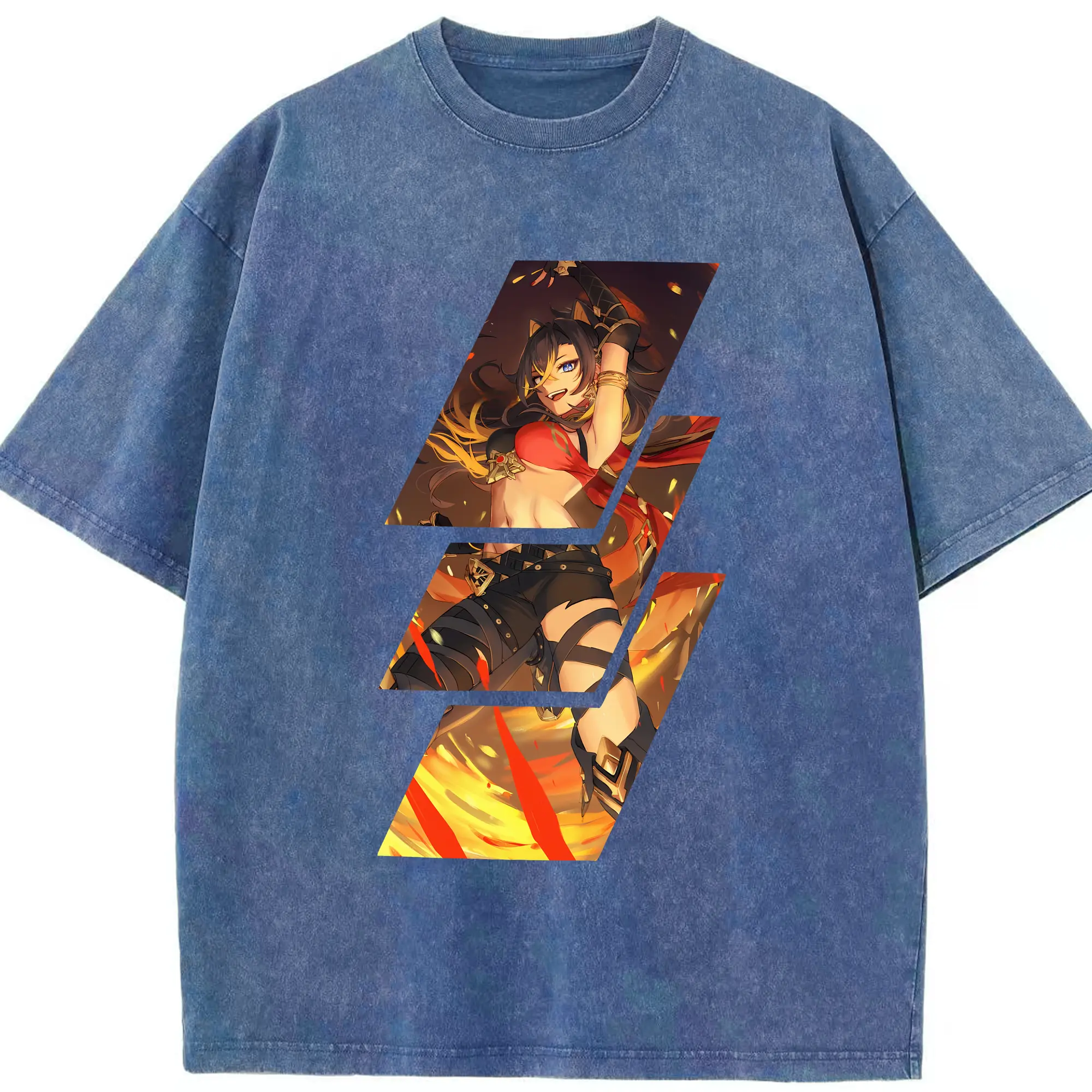 原 神 グッズ ディシア - 綿100% ヴィンテージ風 半袖Tシャツ ・ 背面プリント ・ 柔らか肌触り ・ 通気性 快適 ・ スポーツ カジュアル 外出用