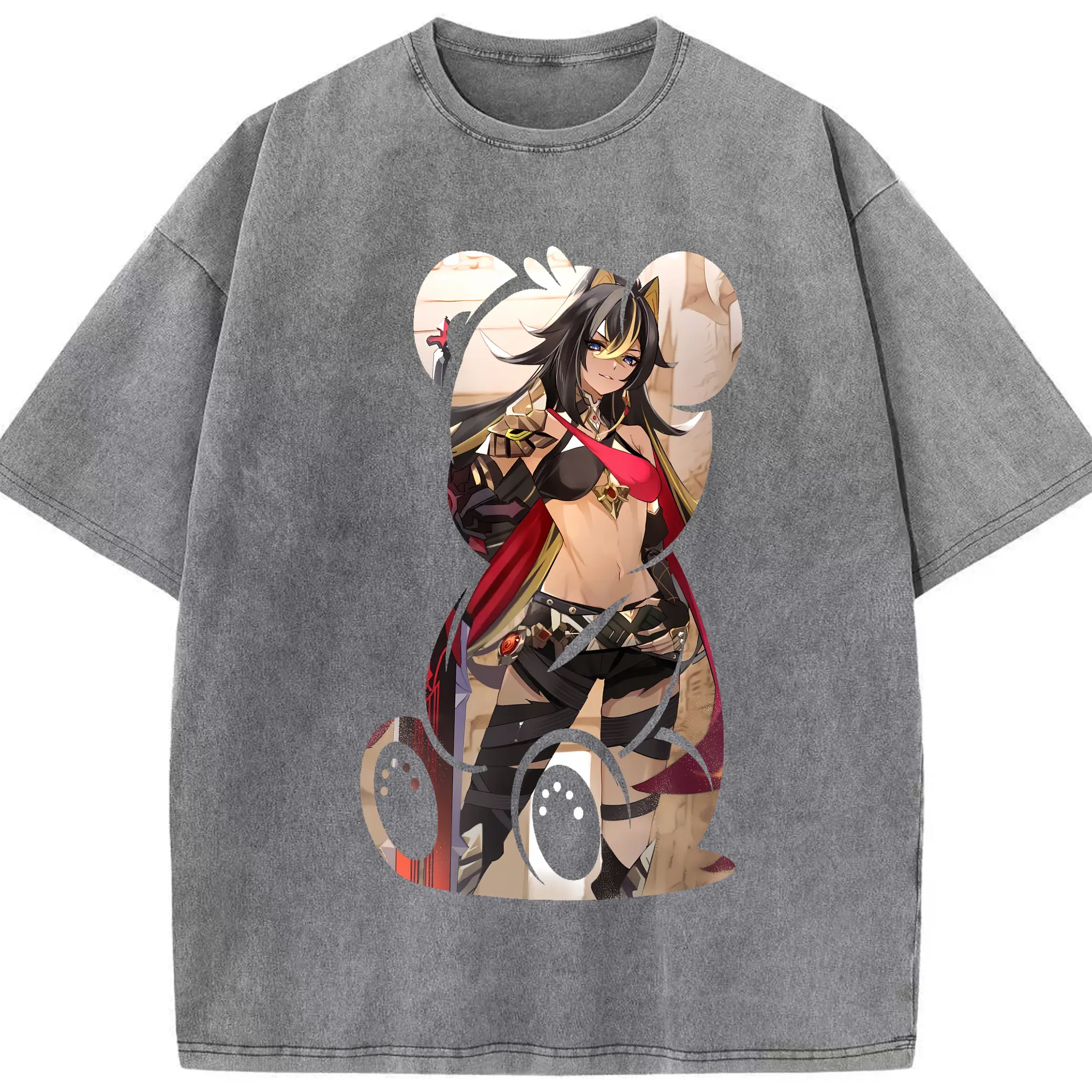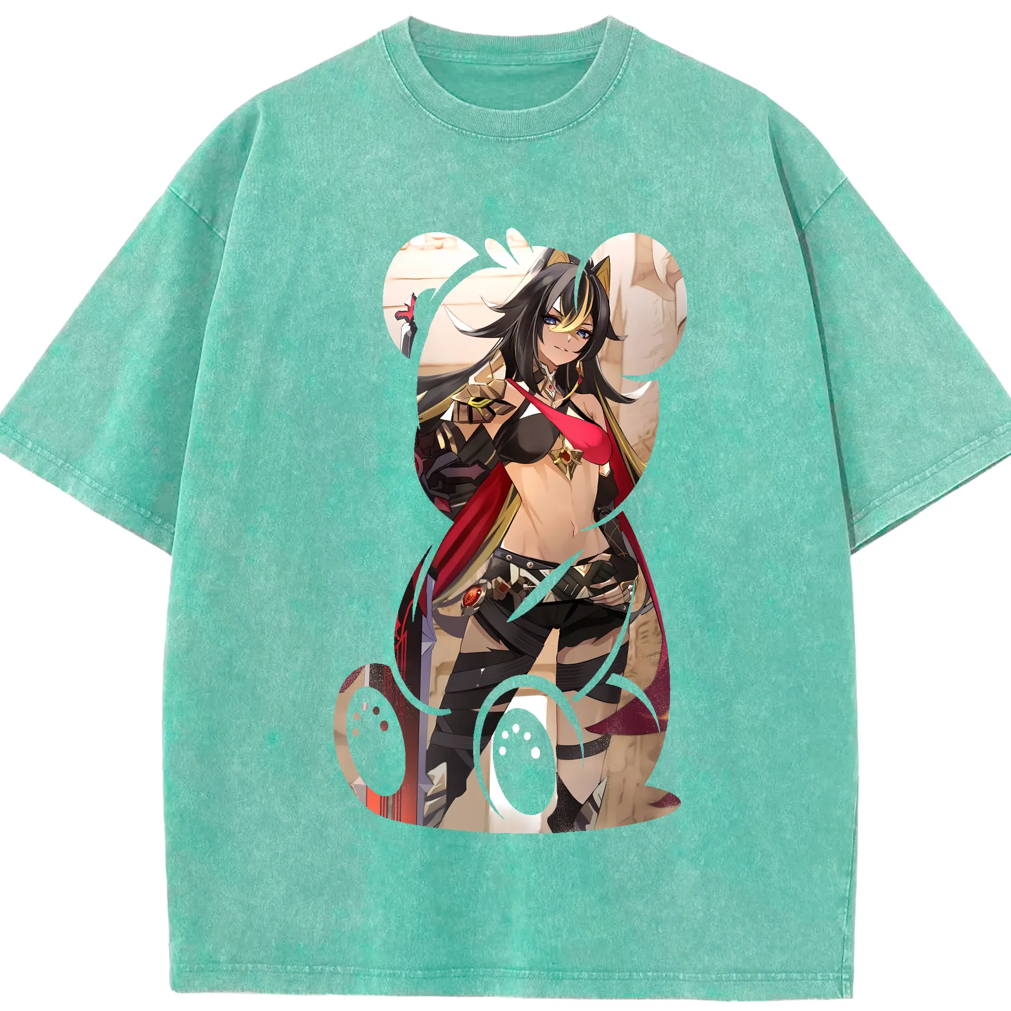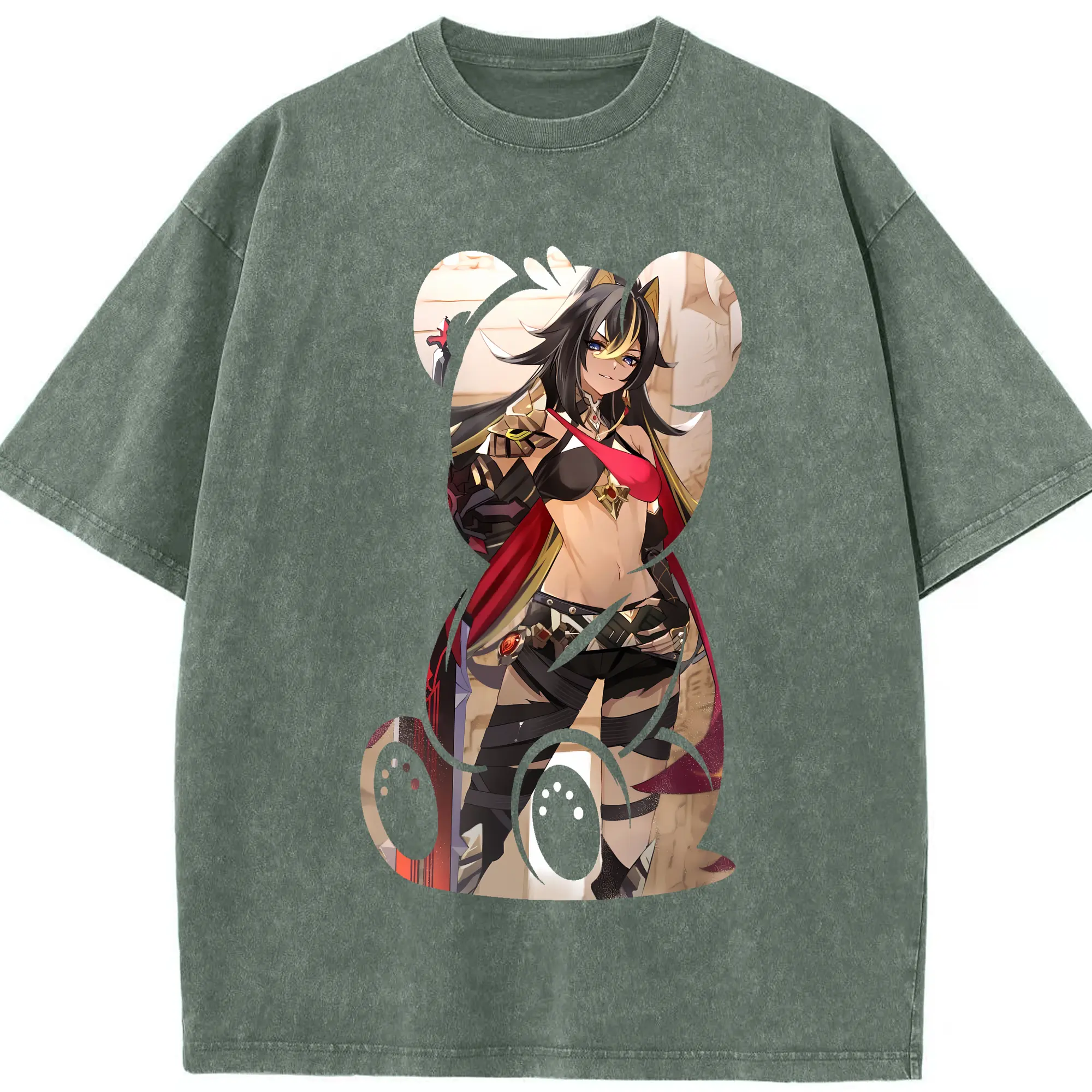 原 神 グッズ ディシア - 綿100% ヴィンテージ風 半袖Tシャツ ・ 背面プリント ・ 柔らか肌触り ・ 通気性 快適 ・ スポーツ カジュアル 外出用