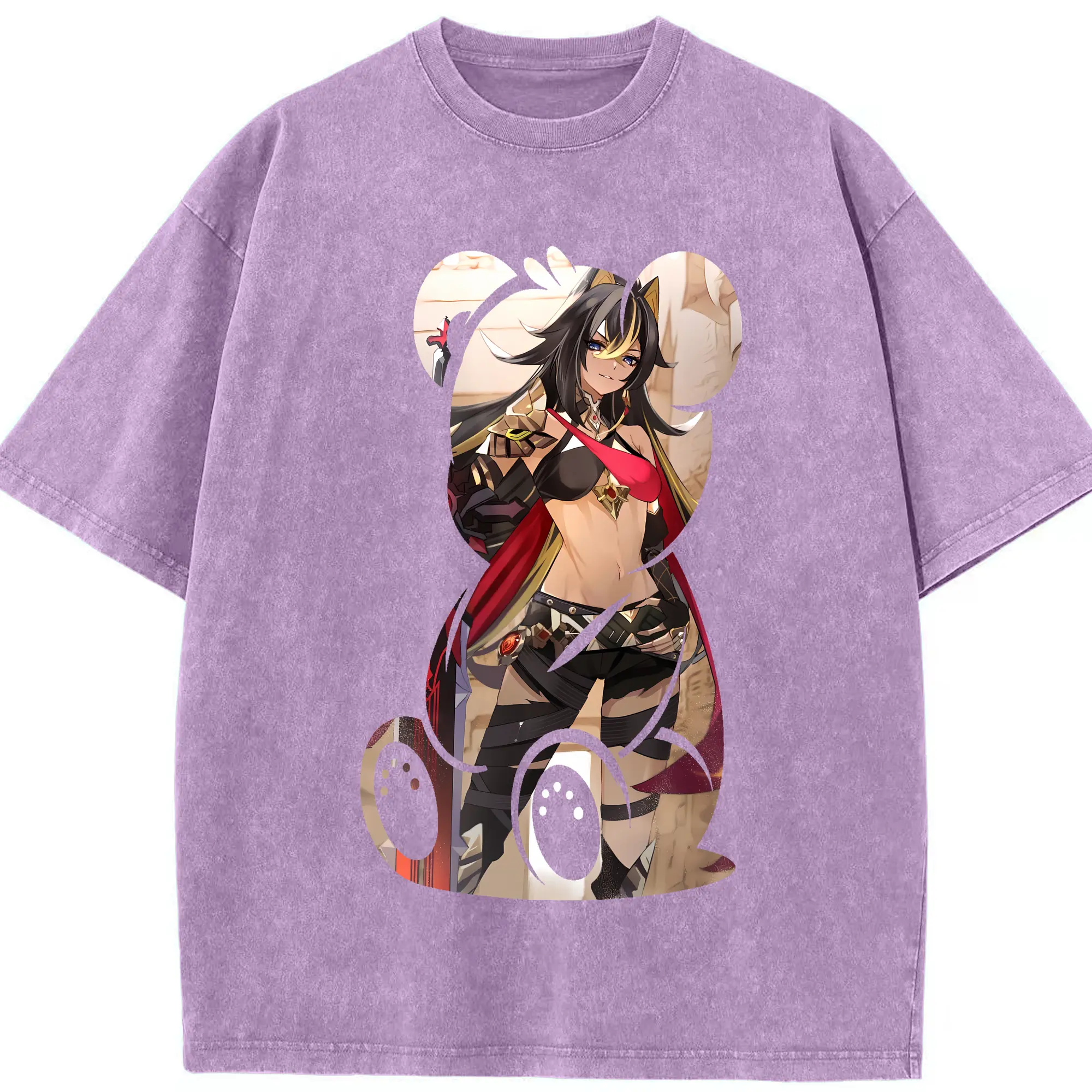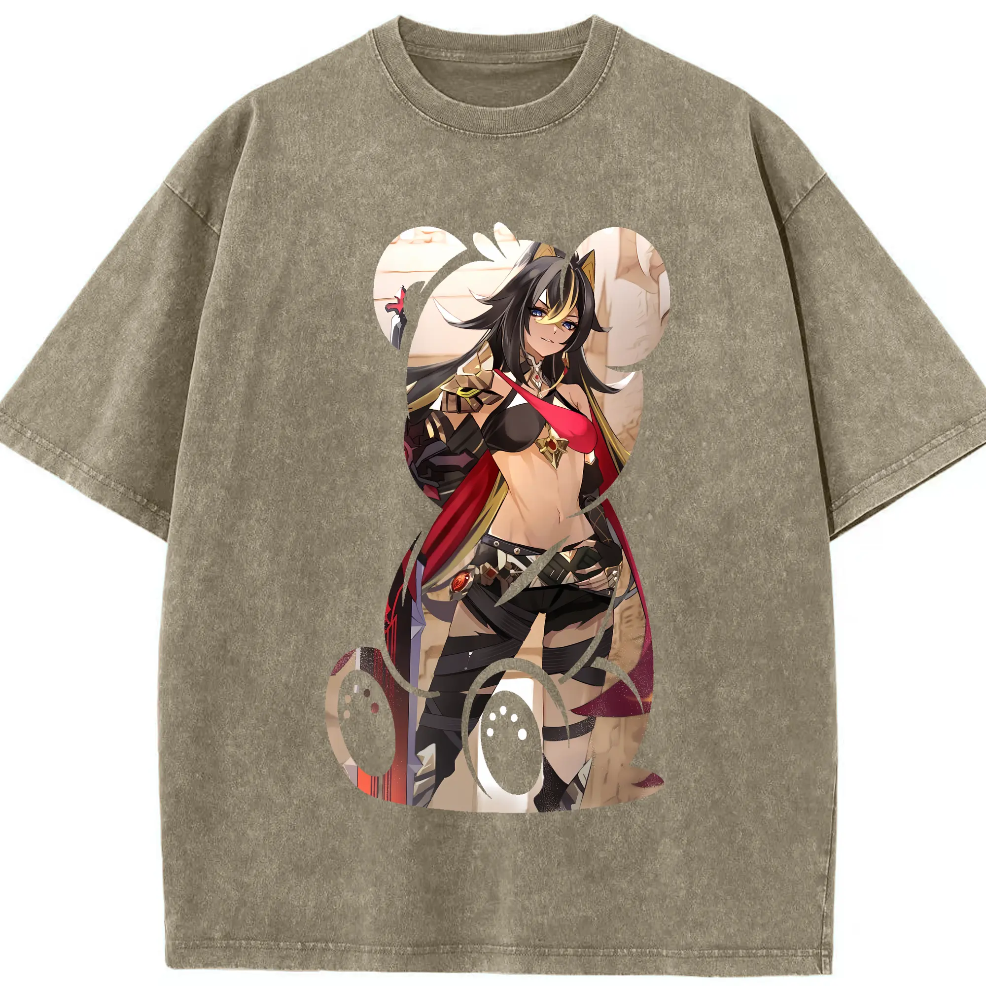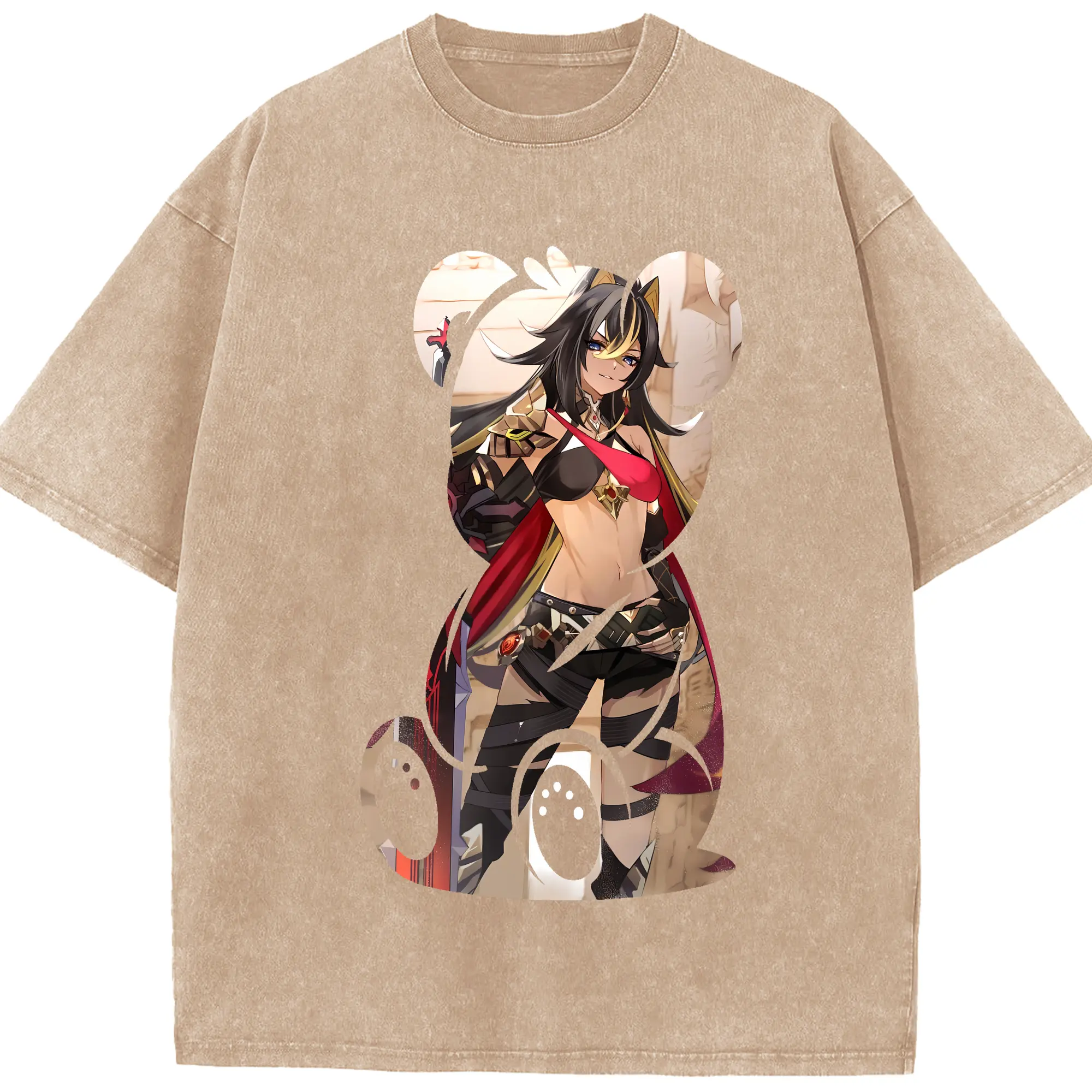 原 神 グッズ ディシア - 綿100% ヴィンテージ風 半袖Tシャツ ・ 背面プリント ・ 柔らか肌触り ・ 通気性 快適 ・ スポーツ カジュアル 外出用