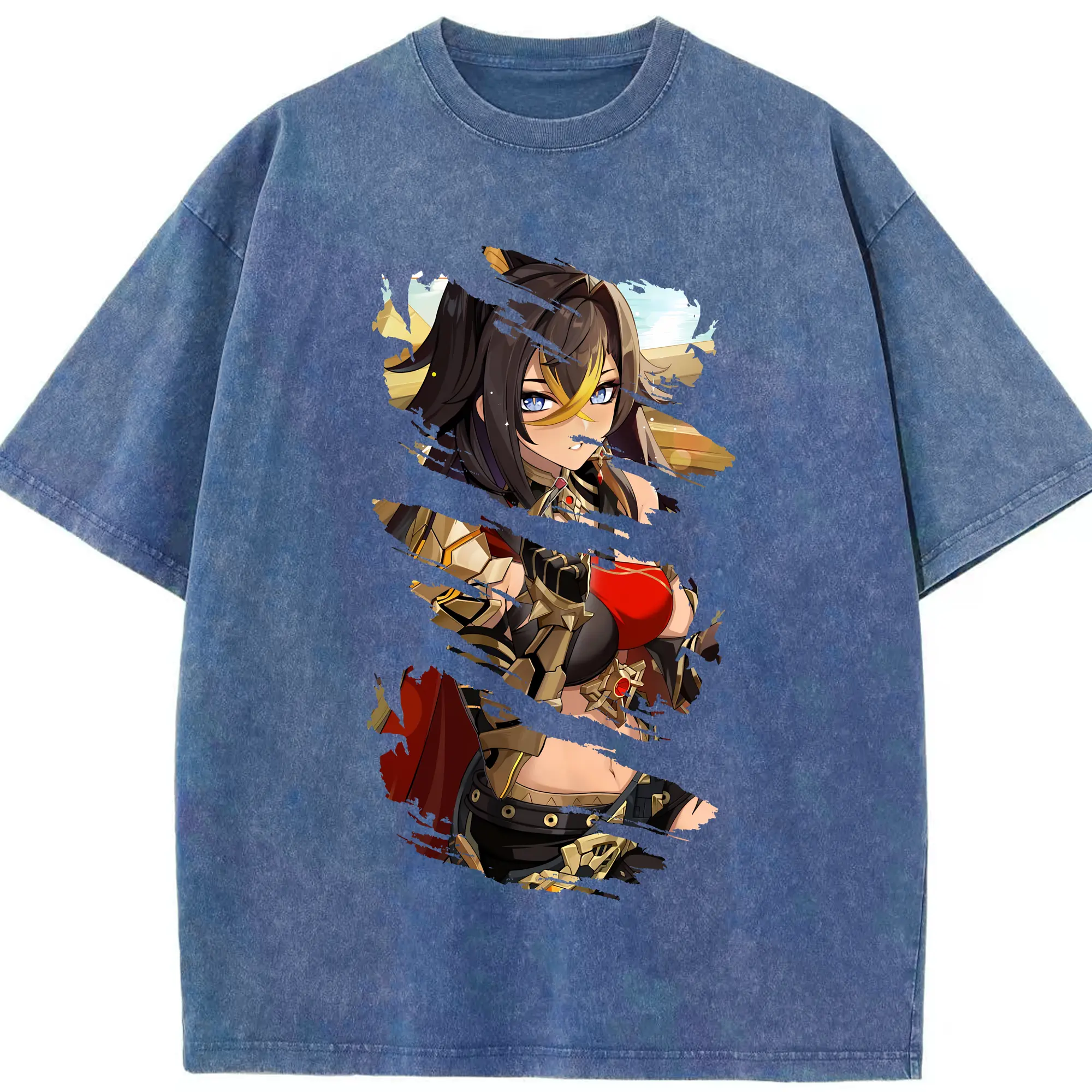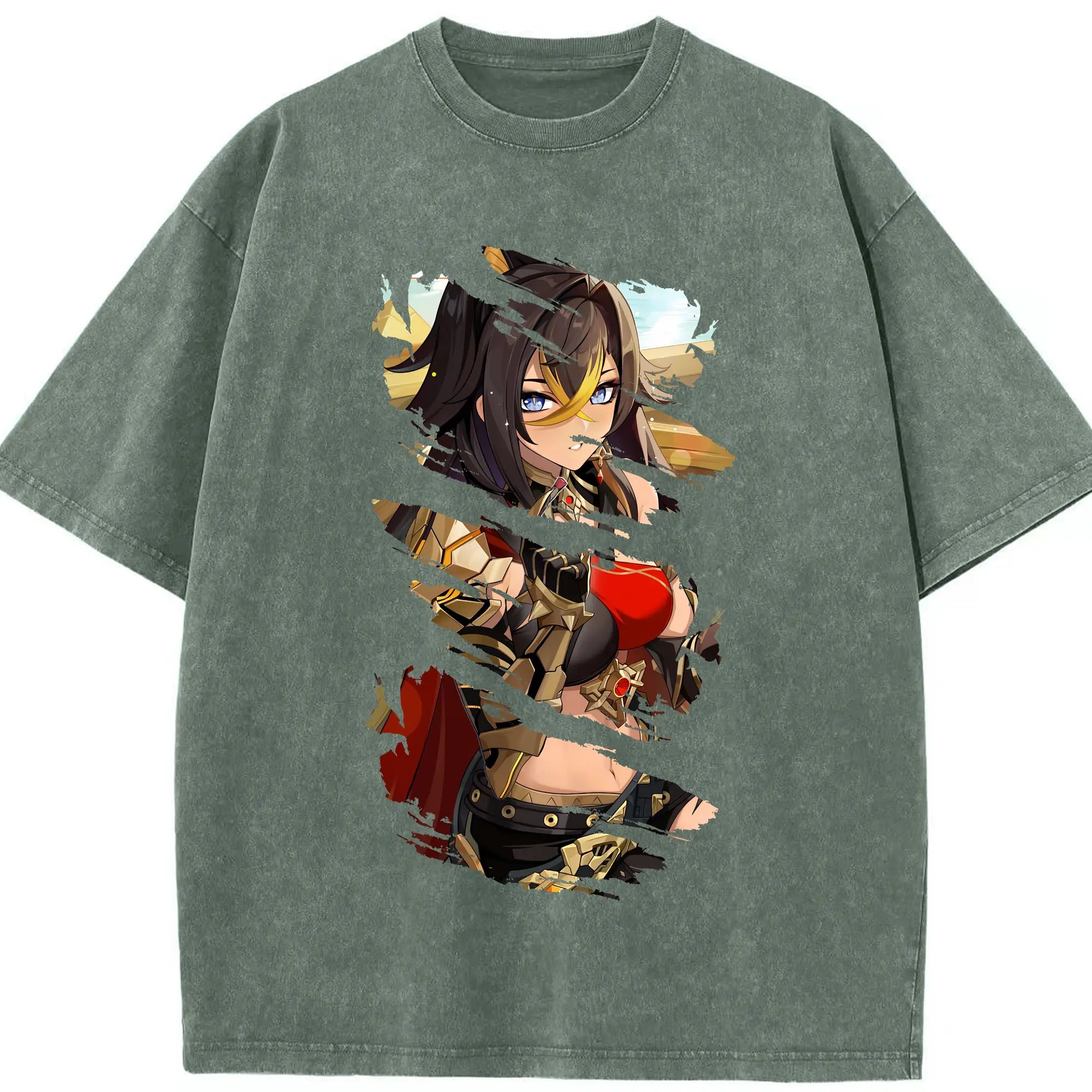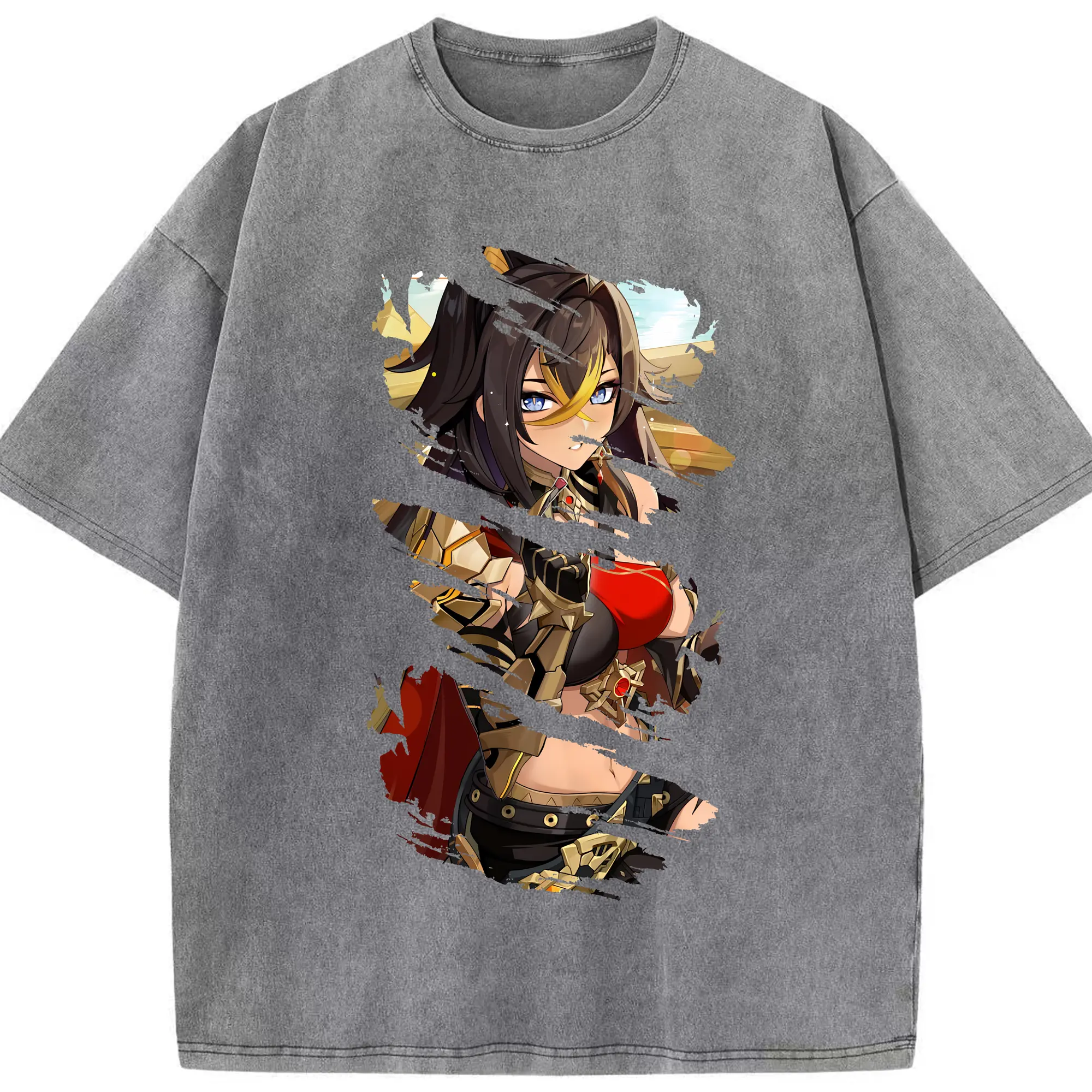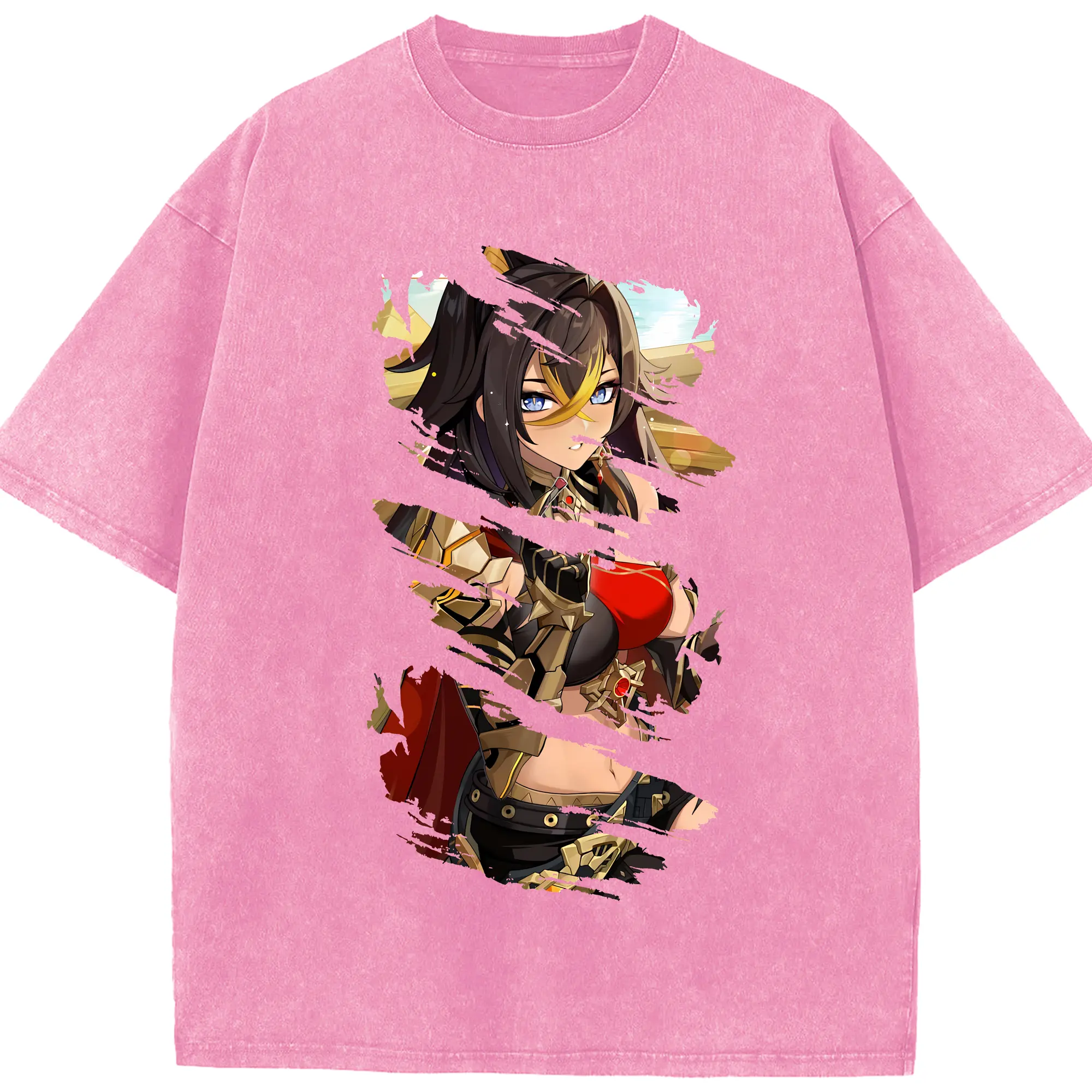 原 神 グッズ ディシア - 綿100% ヴィンテージ風 半袖Tシャツ ・ フロントプリント ・ 柔らか肌触り ・ 通気性 快適 ・ スポーツ カジュアル 外出用