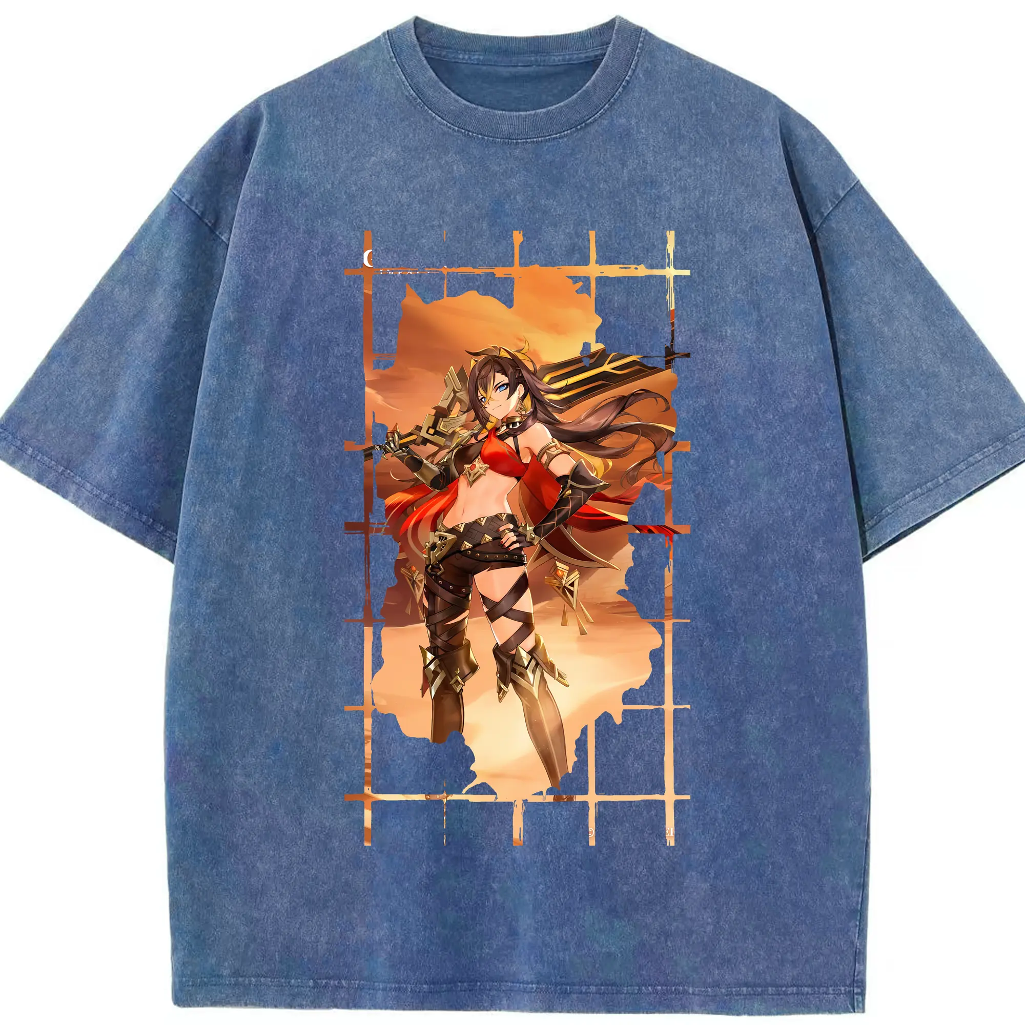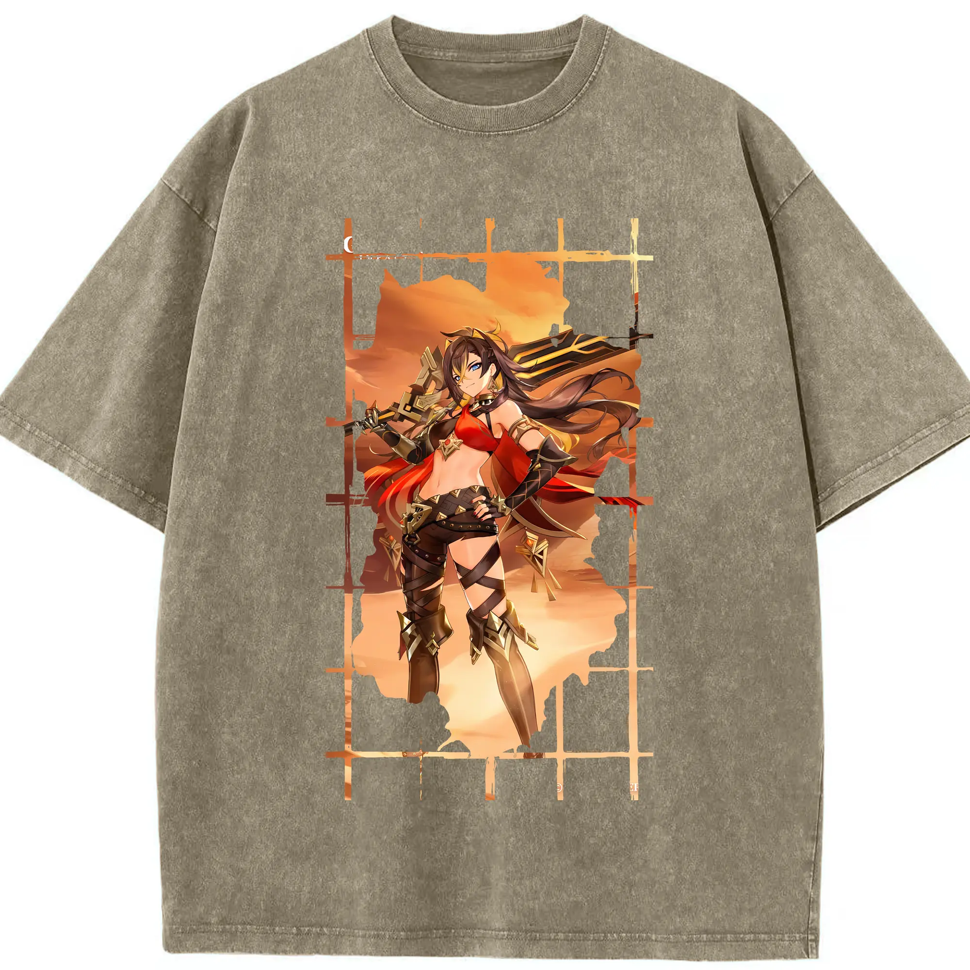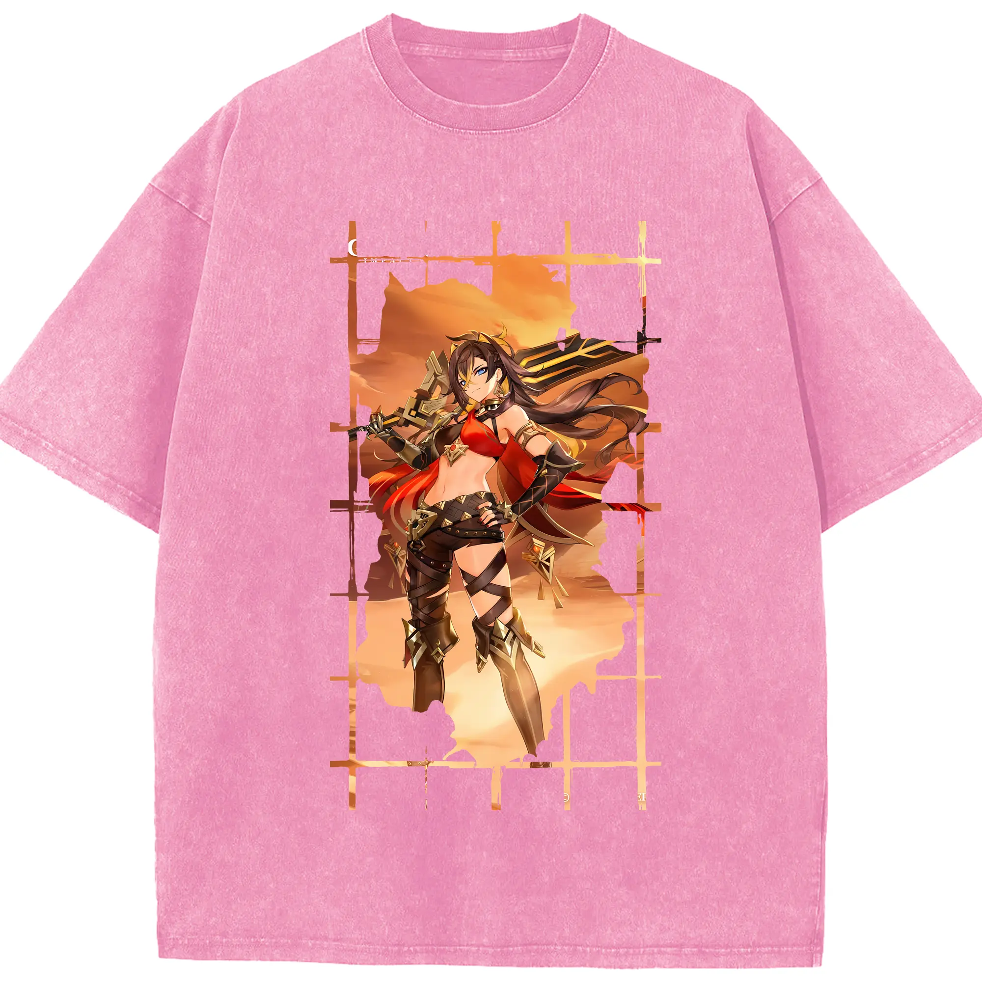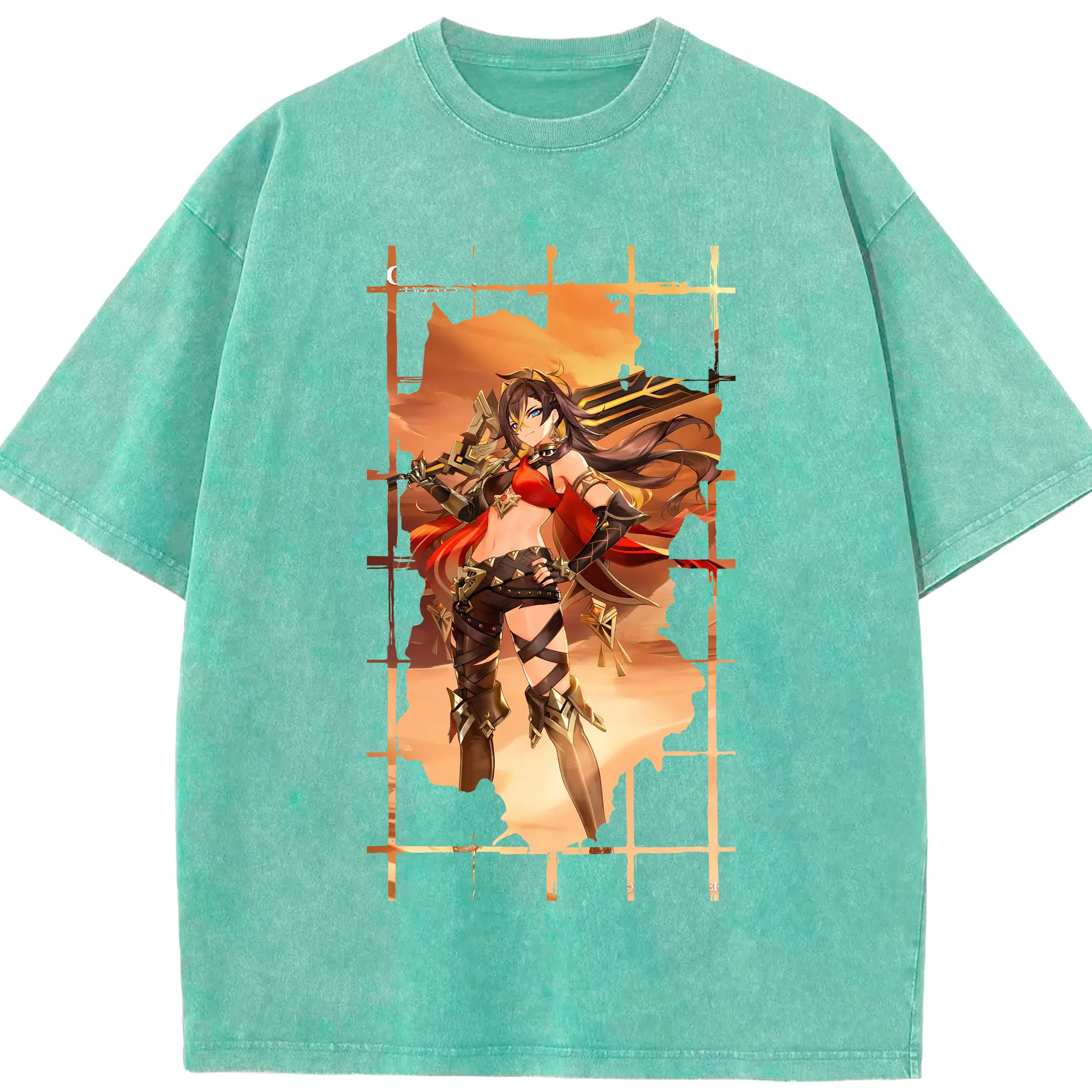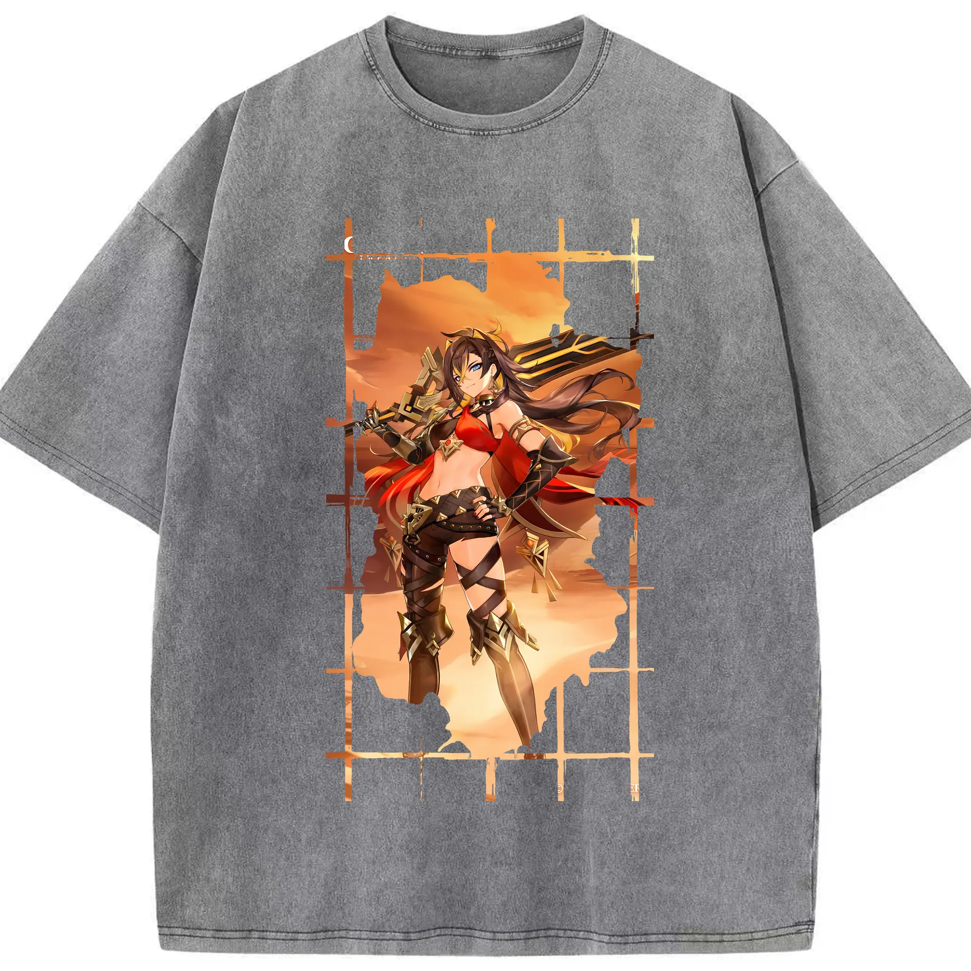 原 神 グッズ ディシア - 綿100% ヴィンテージ風 半袖Tシャツ ・ 背面プリント ・ 柔らか肌触り ・ 通気性 快適 ・ スポーツ カジュアル 外出用