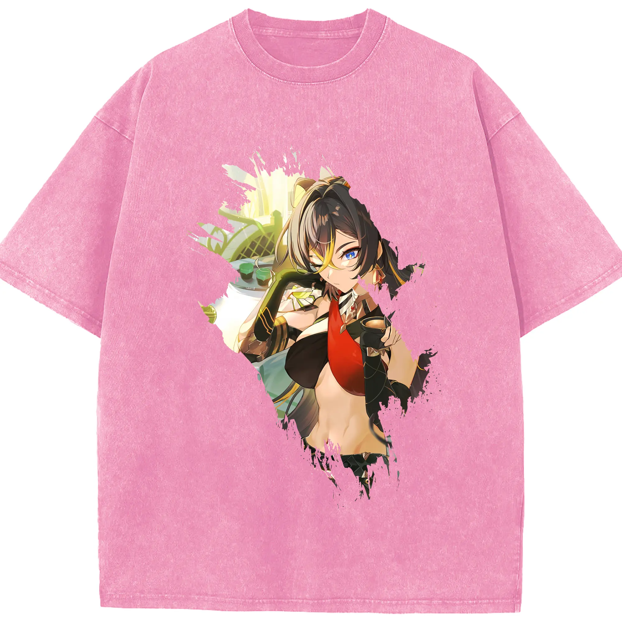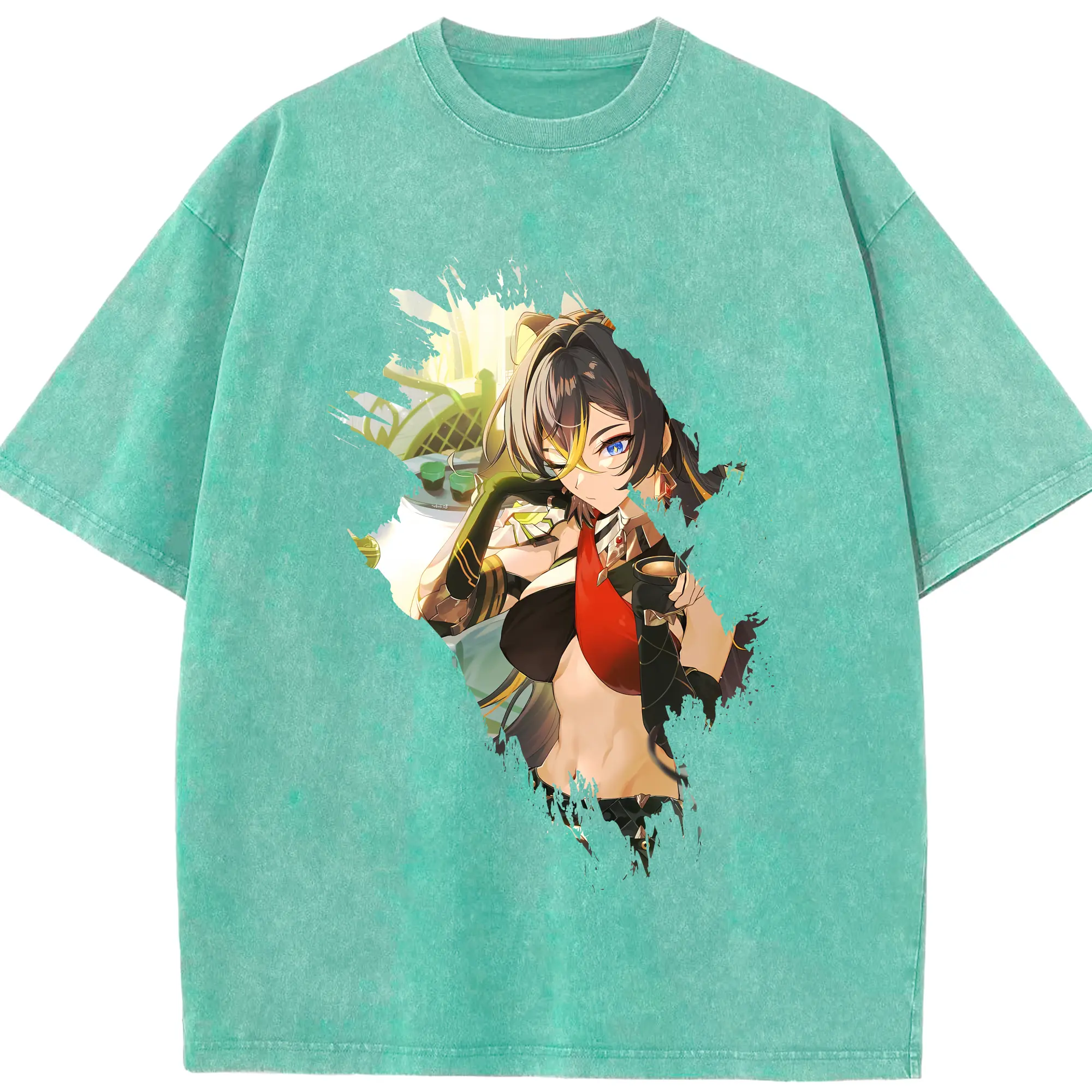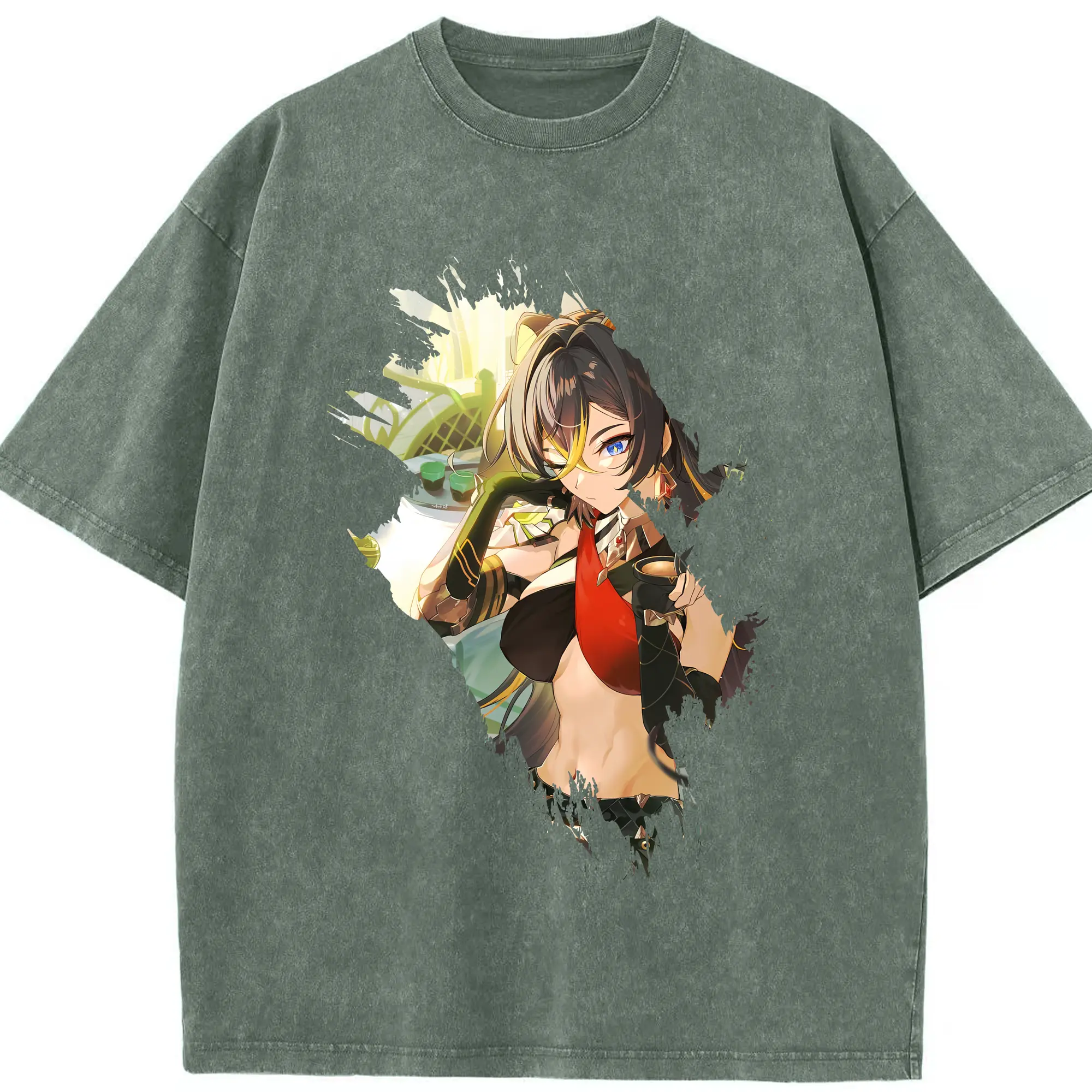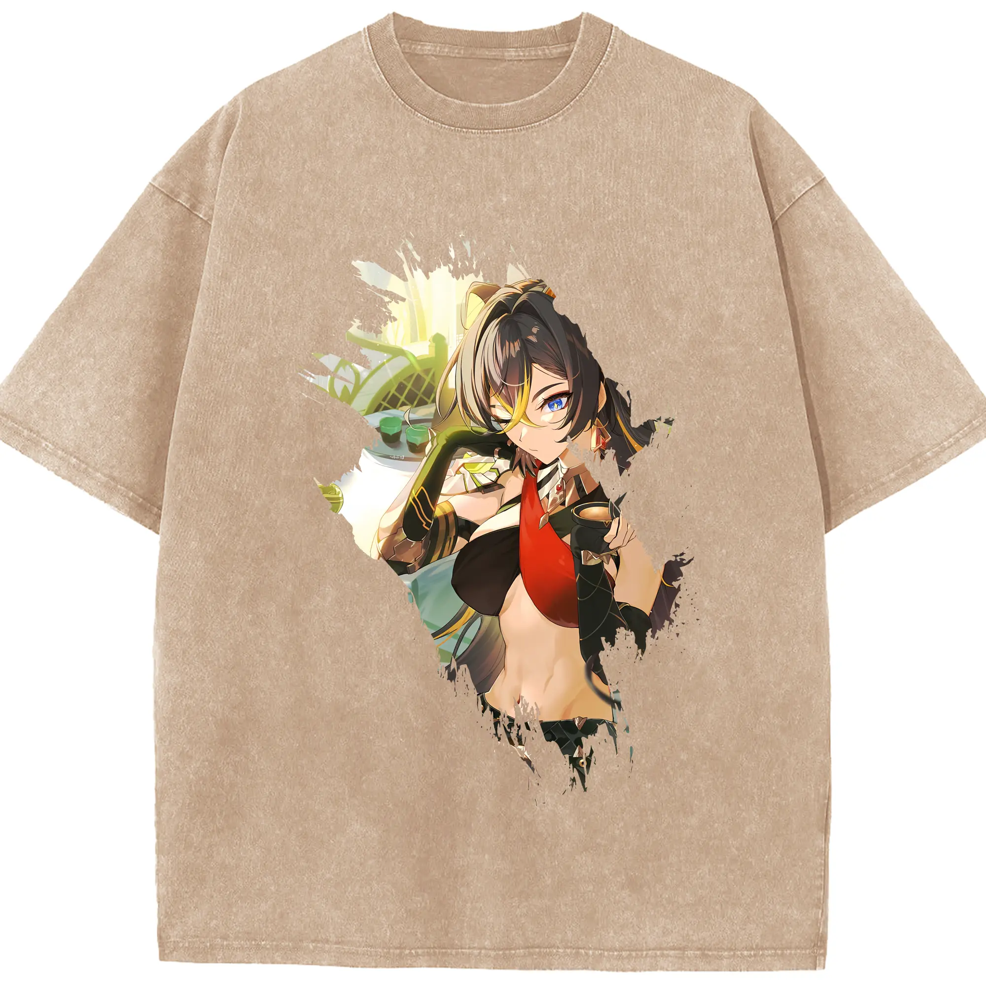 原 神 グッズ ディシア - 綿100% ヴィンテージ風 半袖Tシャツ ・ 背面プリント ・ 柔らか肌触り ・ 通気性 快適 ・ スポーツ カジュアル 外出用