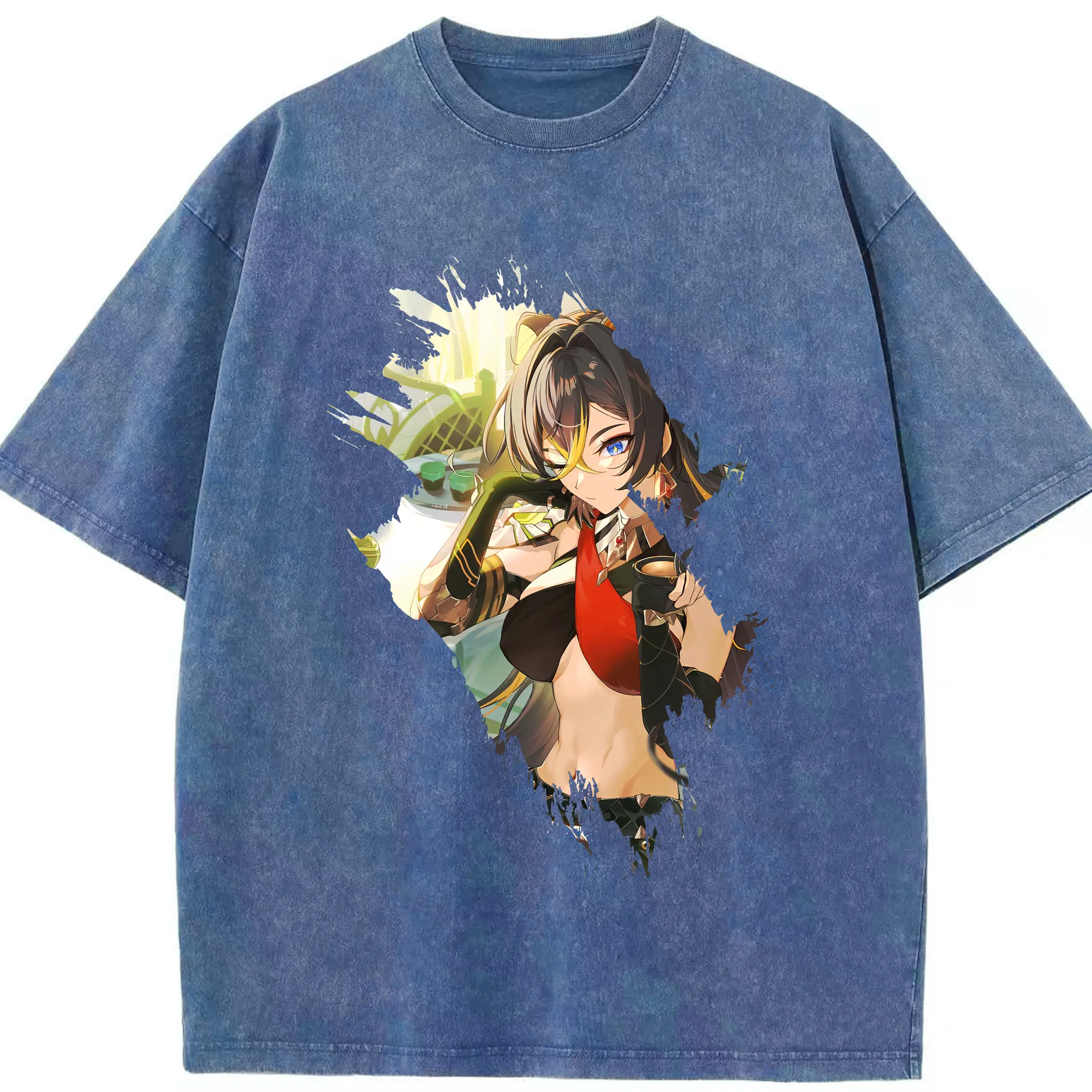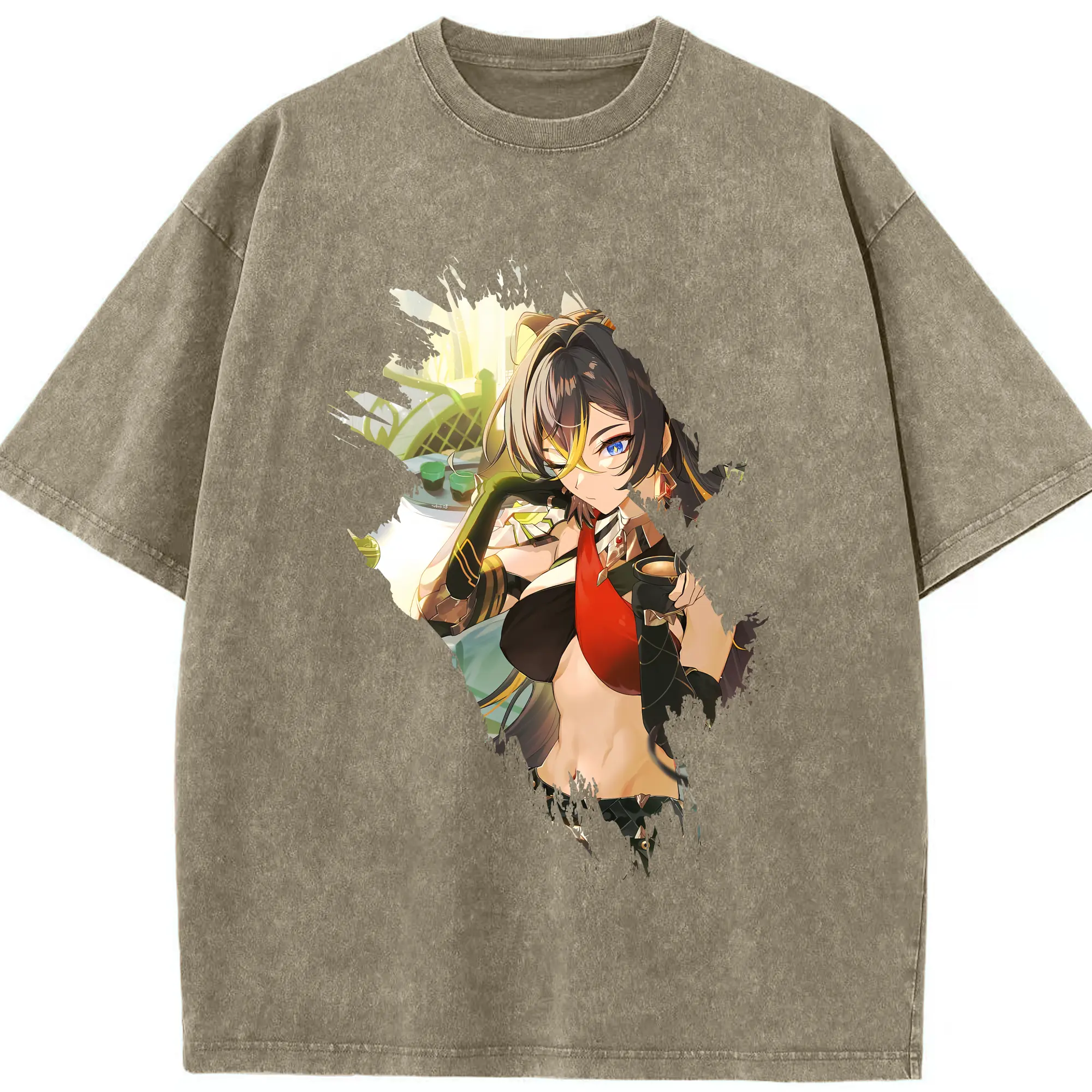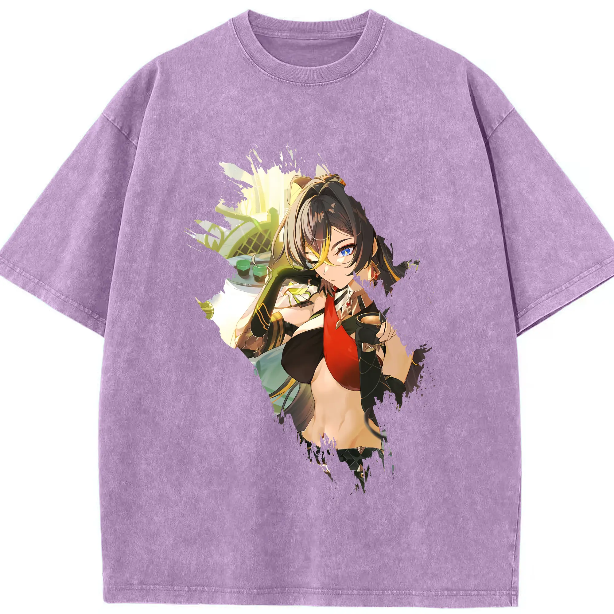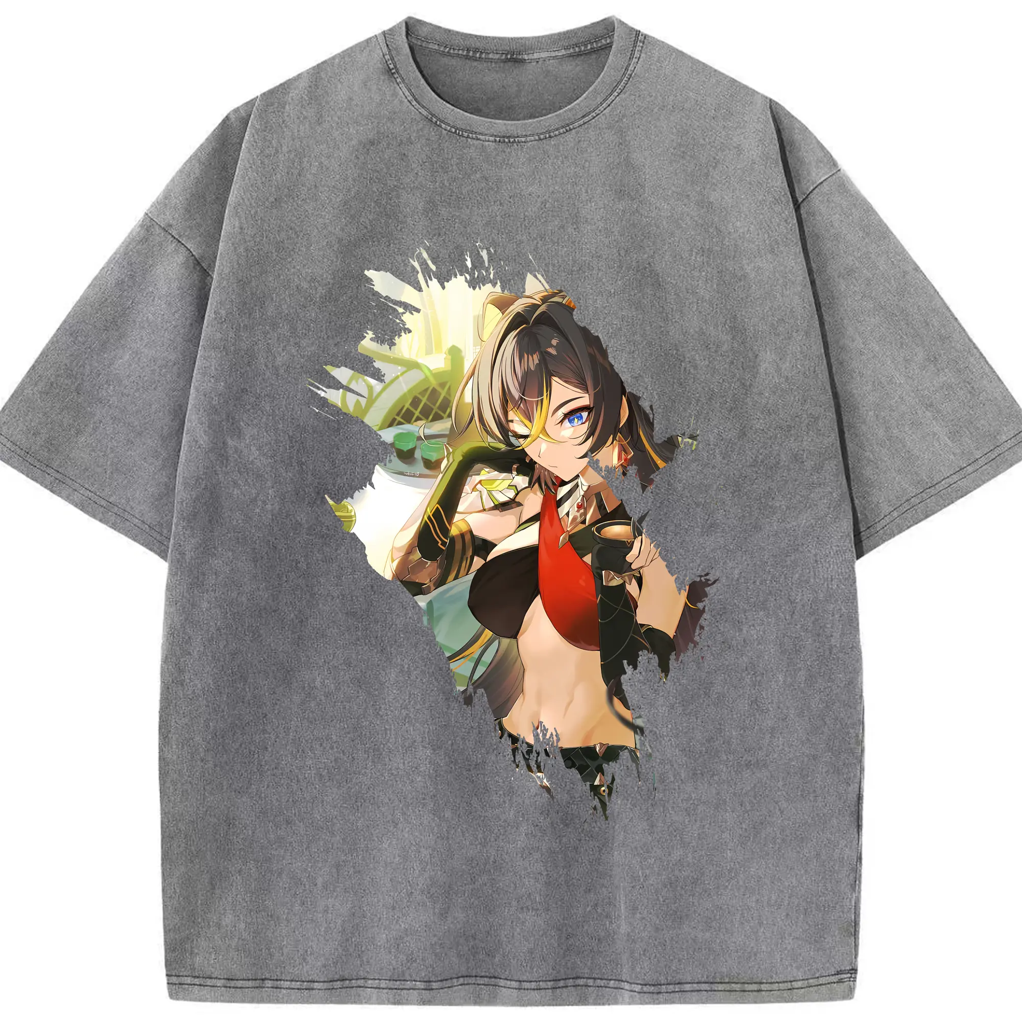 原 神 グッズ ディシア - 綿100% ヴィンテージ風 半袖Tシャツ ・ 背面プリント ・ 柔らか肌触り ・ 通気性 快適 ・ スポーツ カジュアル 外出用