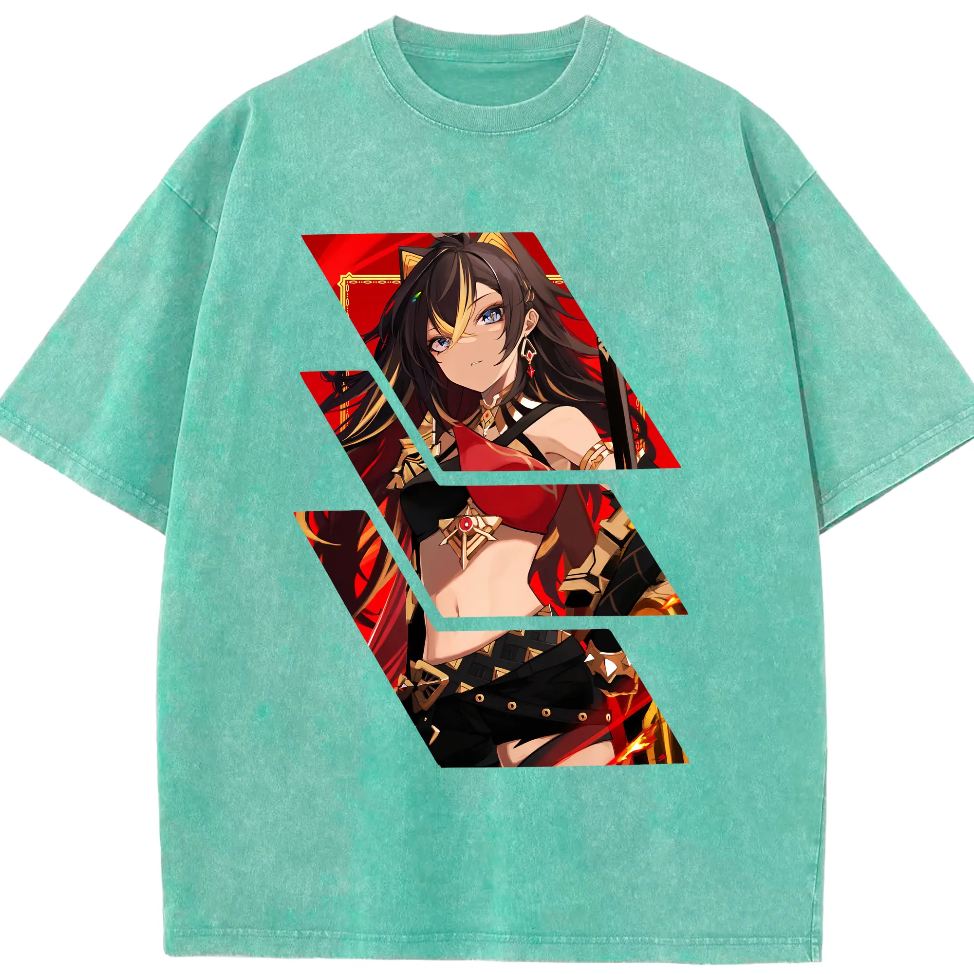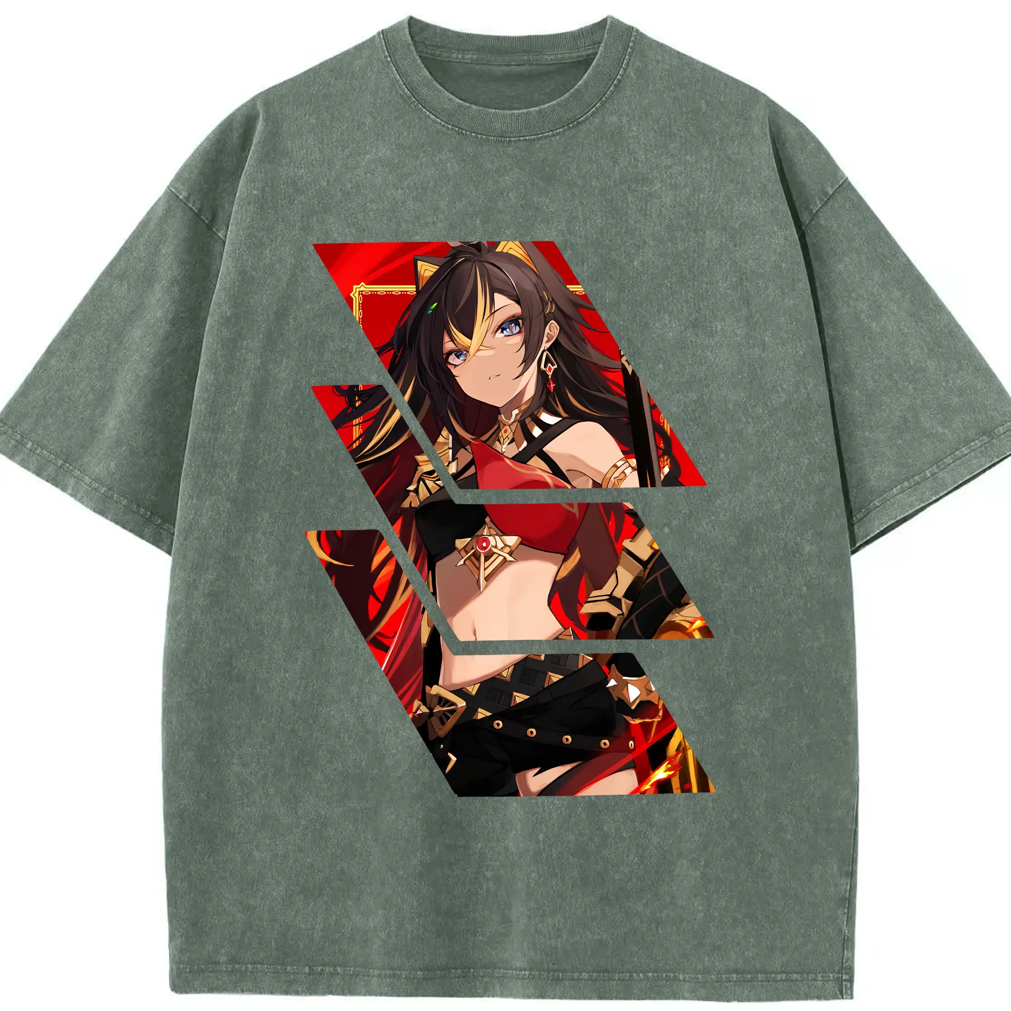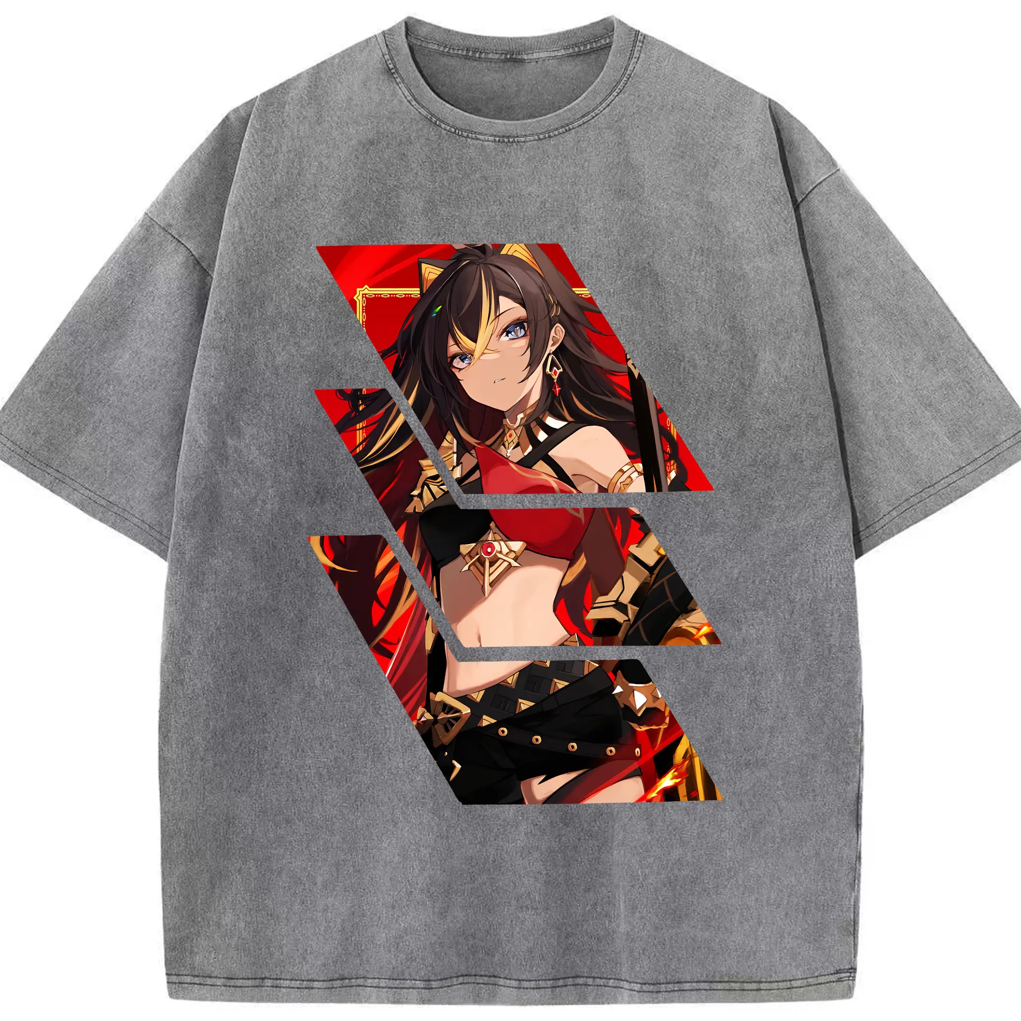 原 神 グッズ ディシア - 綿100% ヴィンテージ風 半袖Tシャツ ・ 背面プリント ・ 柔らか肌触り ・ 通気性 快適 ・ スポーツ カジュアル 外出用