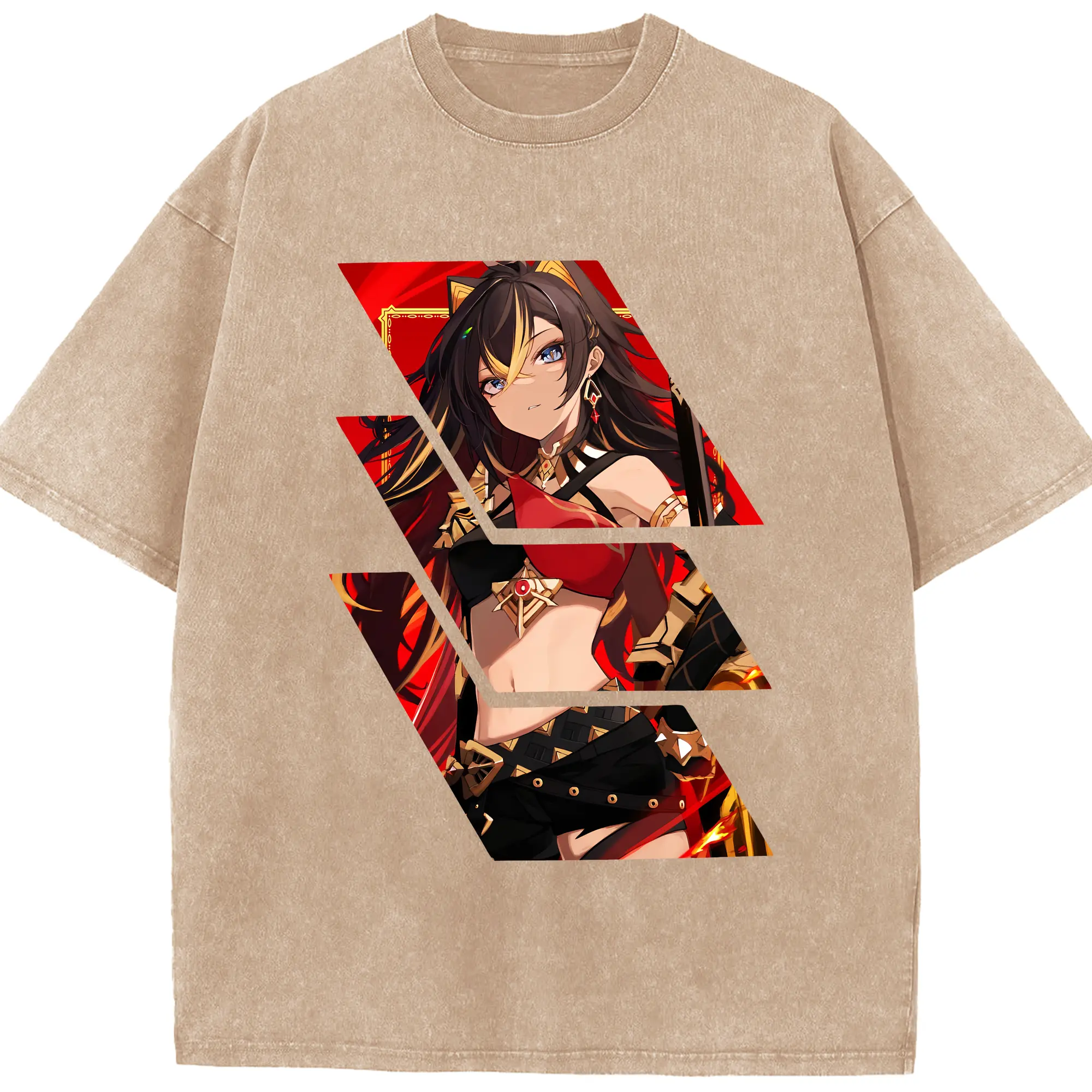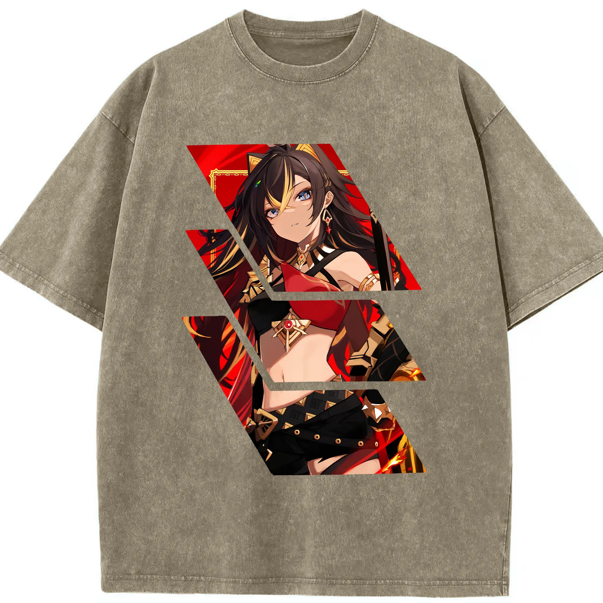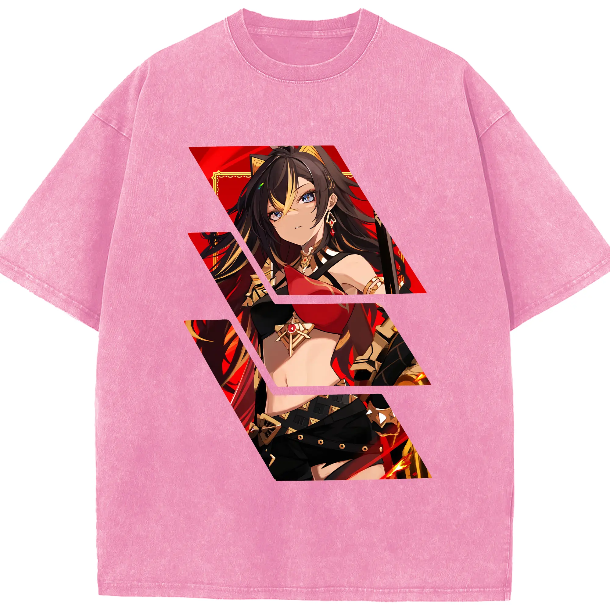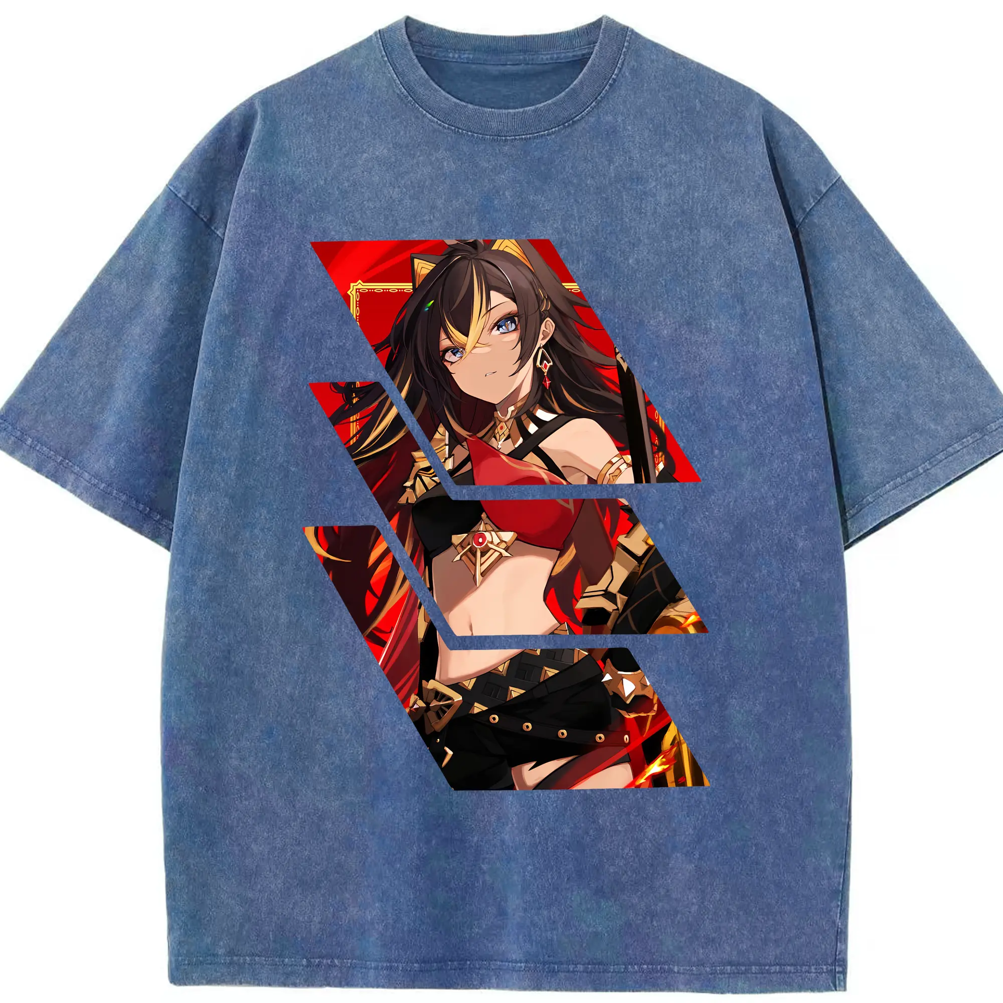 原 神 グッズ ディシア - 綿100% ヴィンテージ風 半袖Tシャツ ・ 背面プリント ・ 柔らか肌触り ・ 通気性 快適 ・ スポーツ カジュアル 外出用
