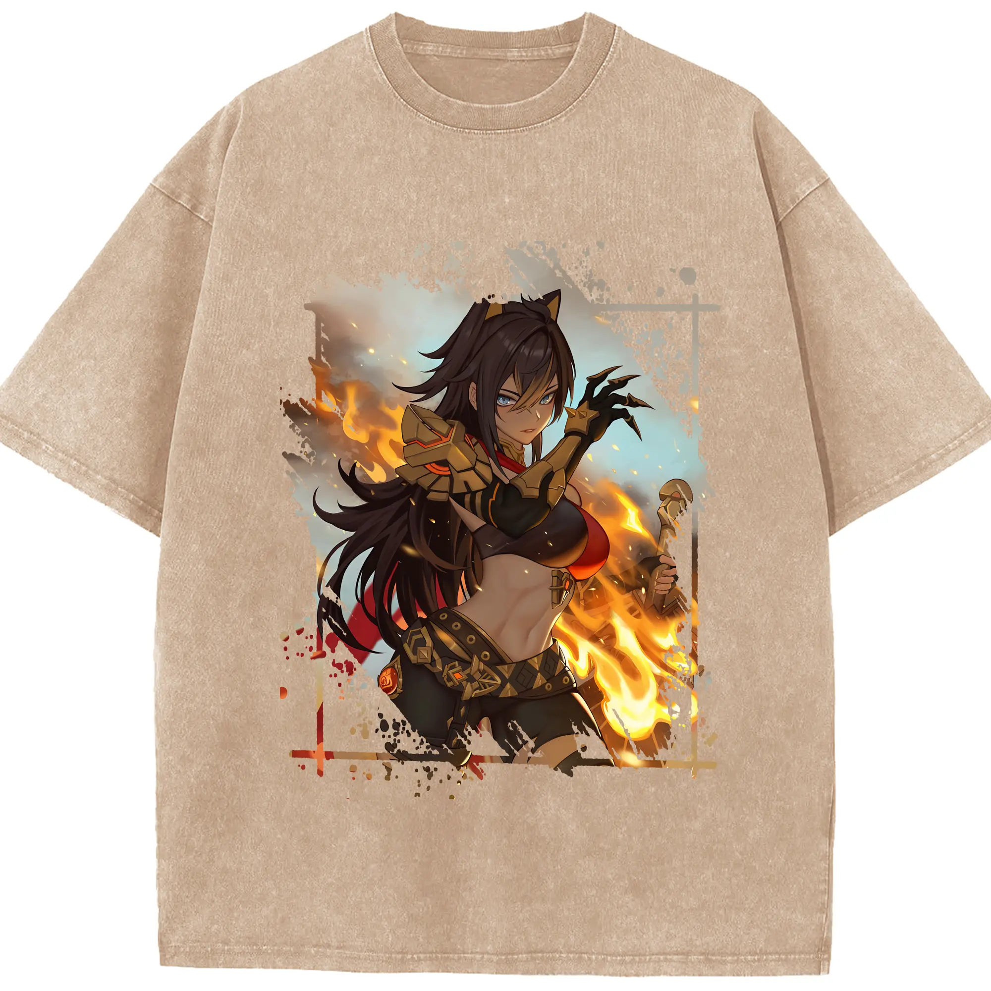 原 神 グッズ ディシア - 綿100% ヴィンテージ風 半袖Tシャツ ・ 背面プリント ・ 柔らか肌触り ・ 通気性 快適 ・ スポーツ カジュアル 外出用