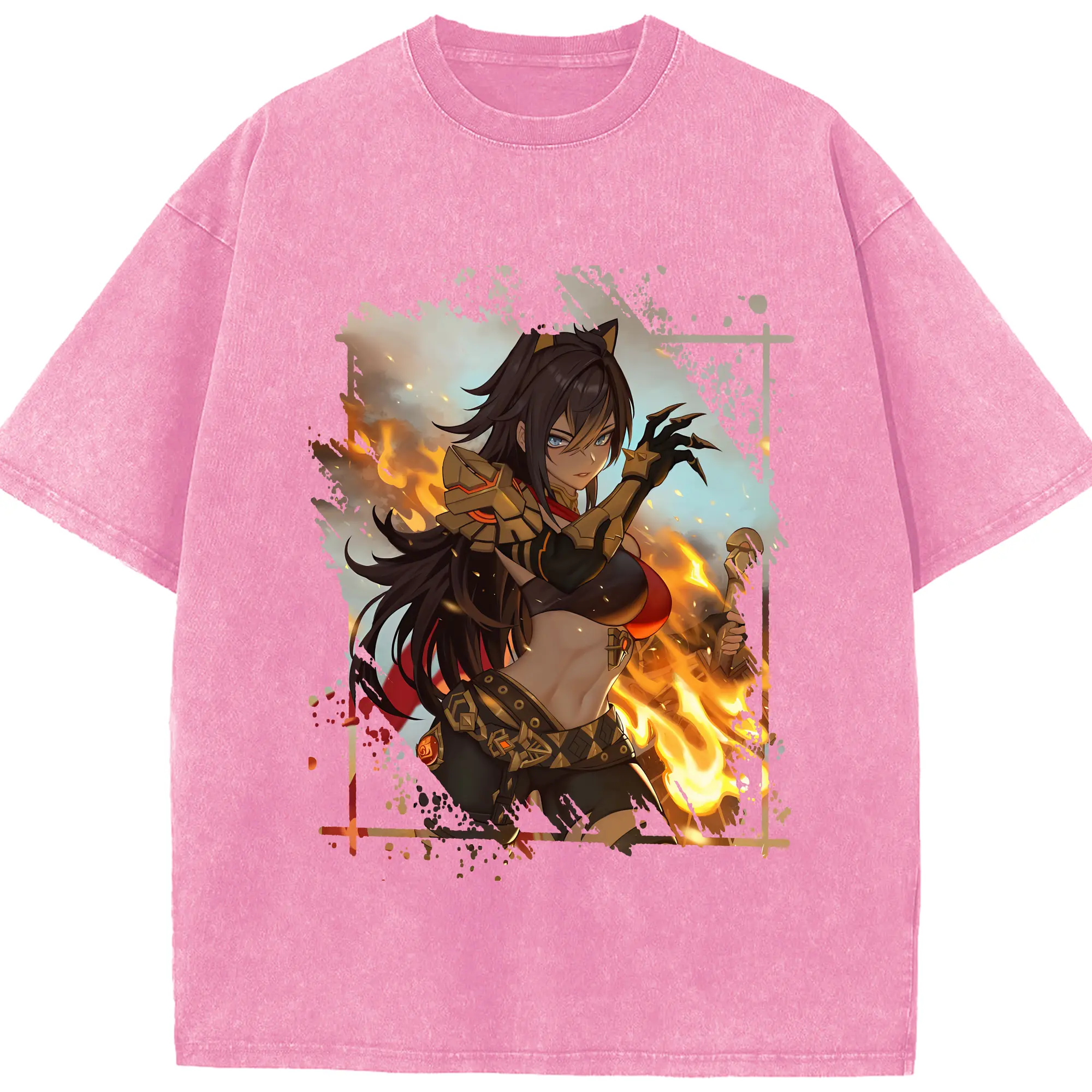 鬼滅の刃 グッズ,竈門 禰豆子 - 綿100% ヴィンテージ風 半袖Tシャツ ・ フロントプリント ・ 柔らか肌触り ・ 通気性 快適 ・ スポーツ カジュアル 外出用