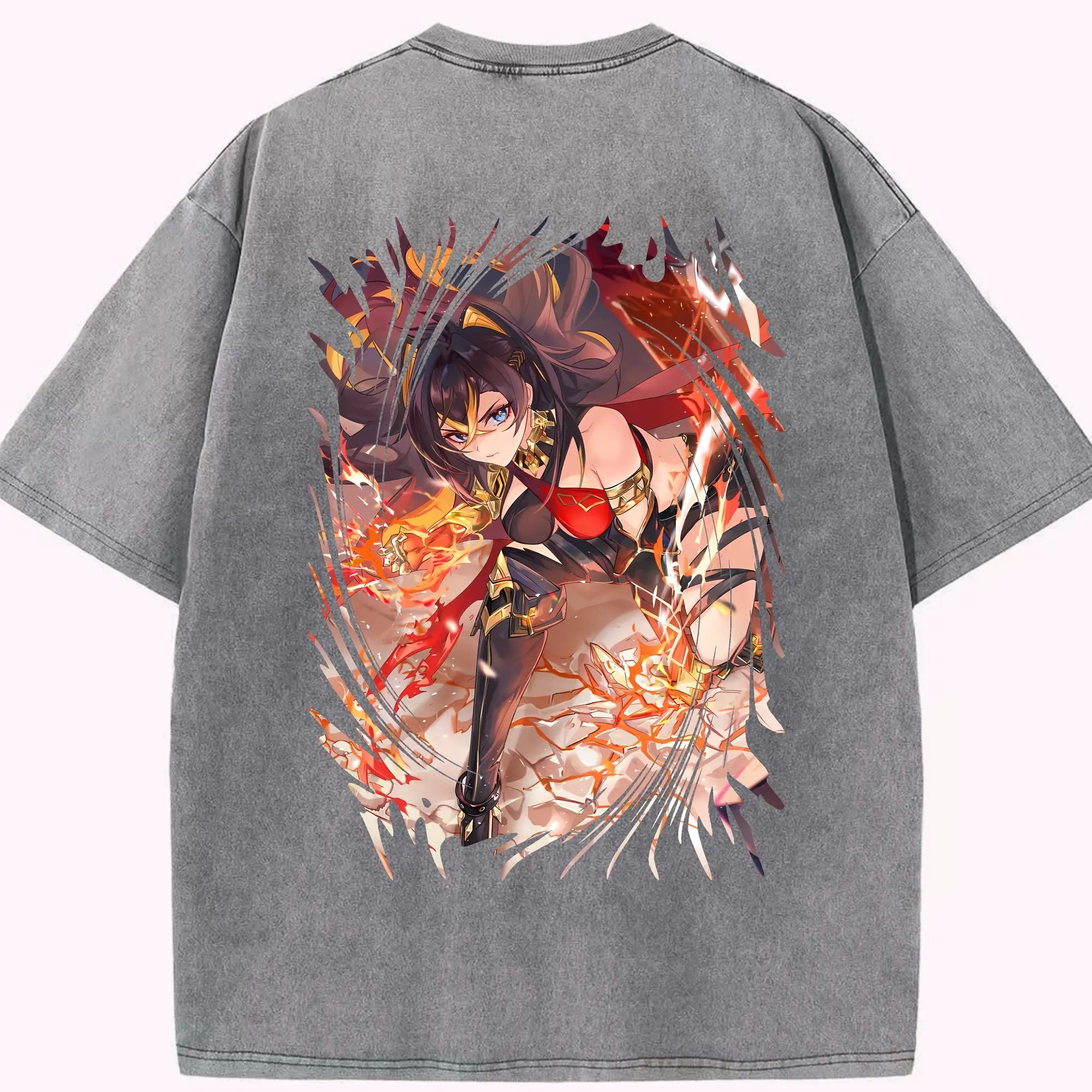 フェアリーテイル グッズ グレイ・フルバスター - 綿100% ヴィンテージ風 半袖Tシャツ ・ 背面プリント ・ 柔らか肌触り ・ 通気性 快適 ・ スポーツ カジュアル 外出用