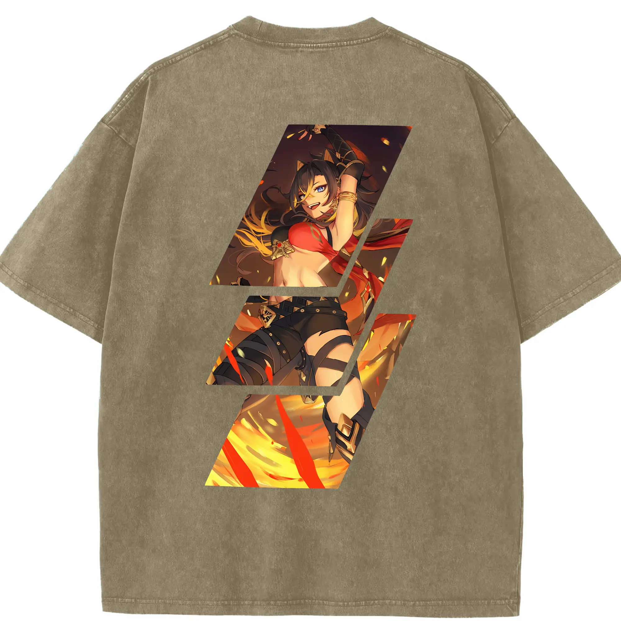 原 神 グッズ ディシア - 綿100% ヴィンテージ風 半袖Tシャツ ・ フロントプリント ・ 柔らか肌触り ・ 通気性 快適 ・ スポーツ カジュアル 外出用