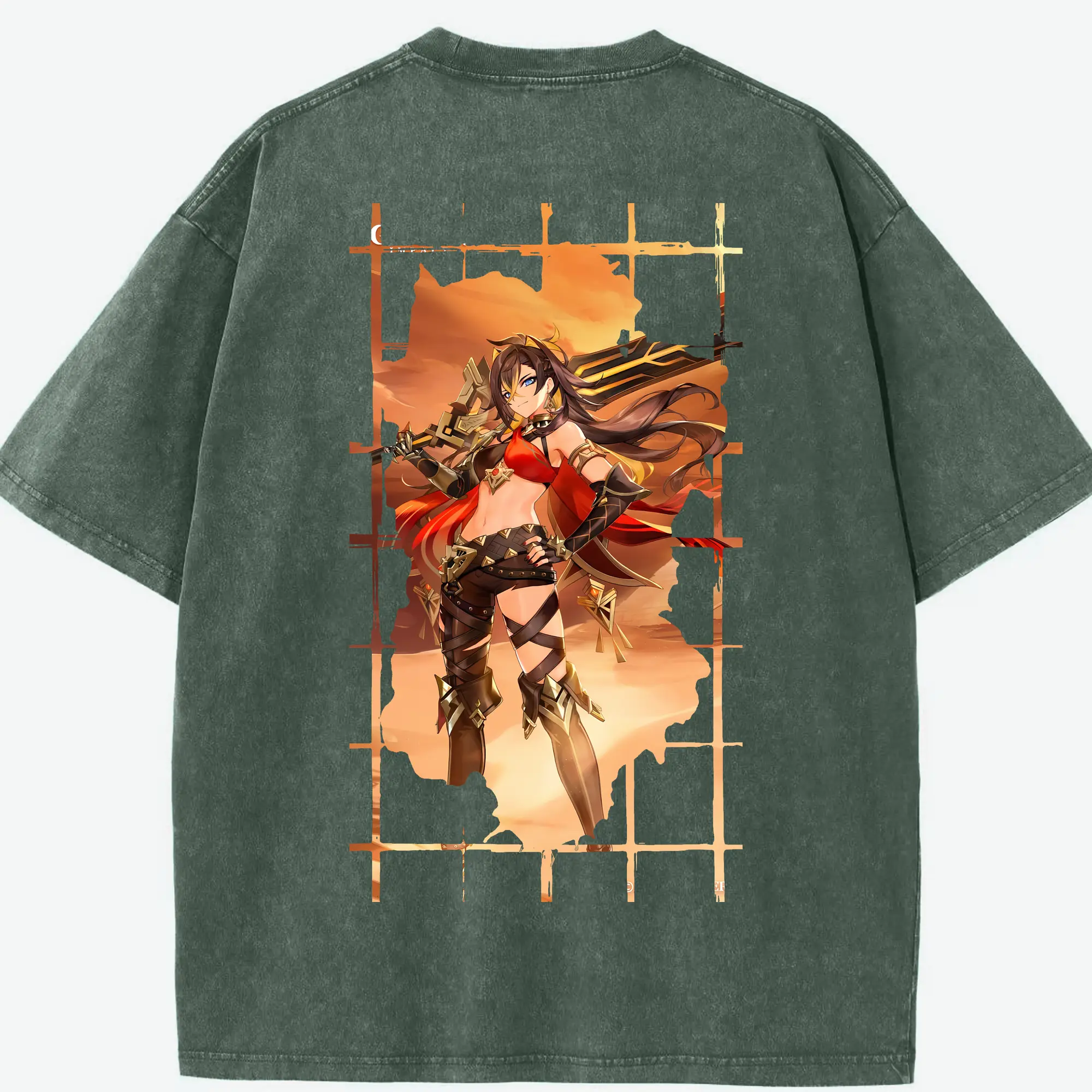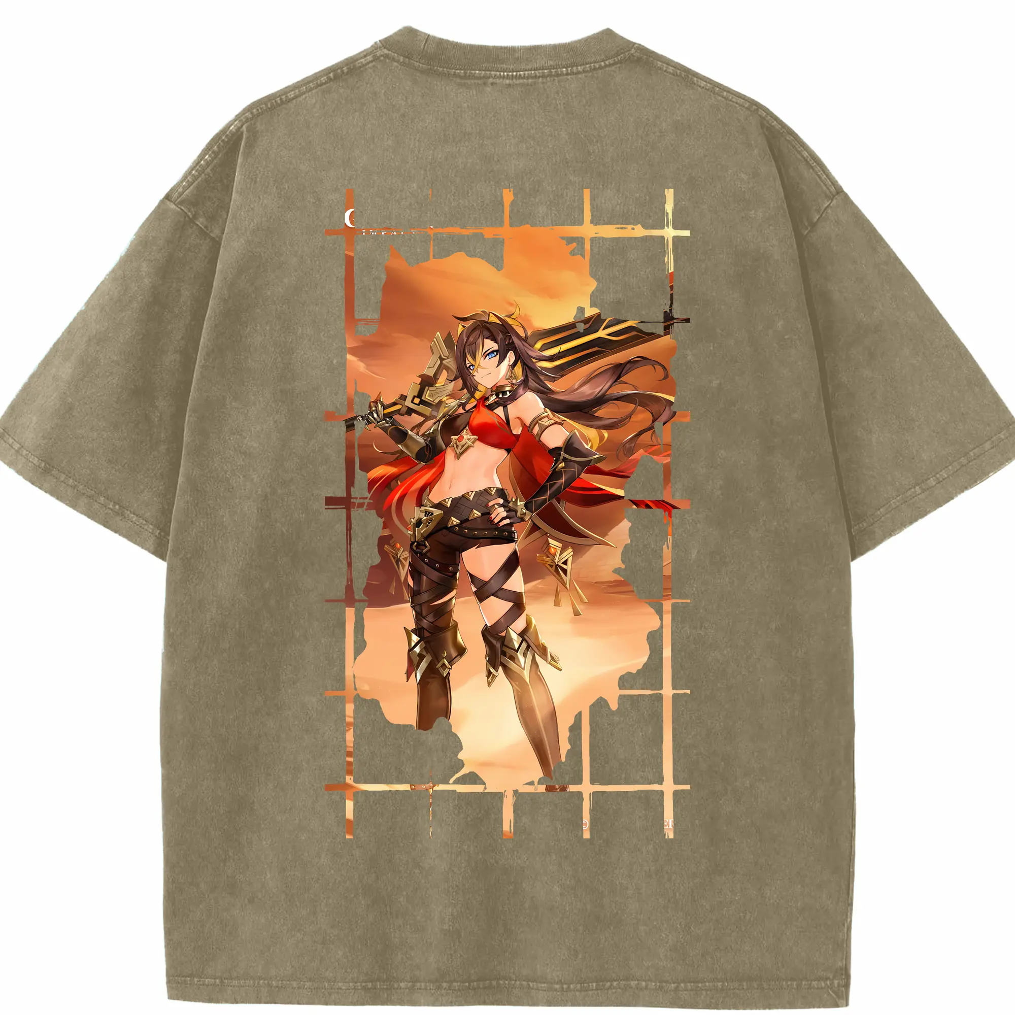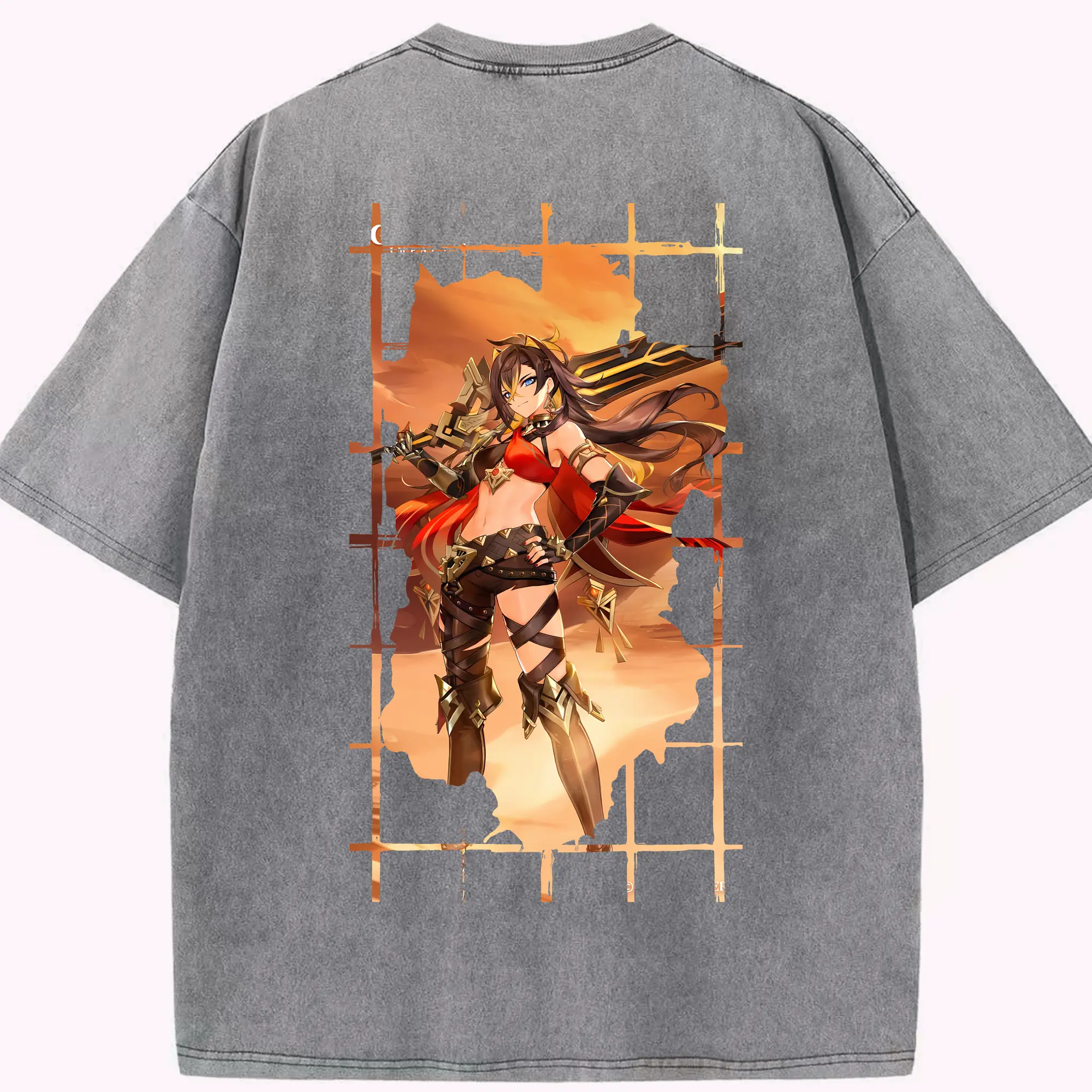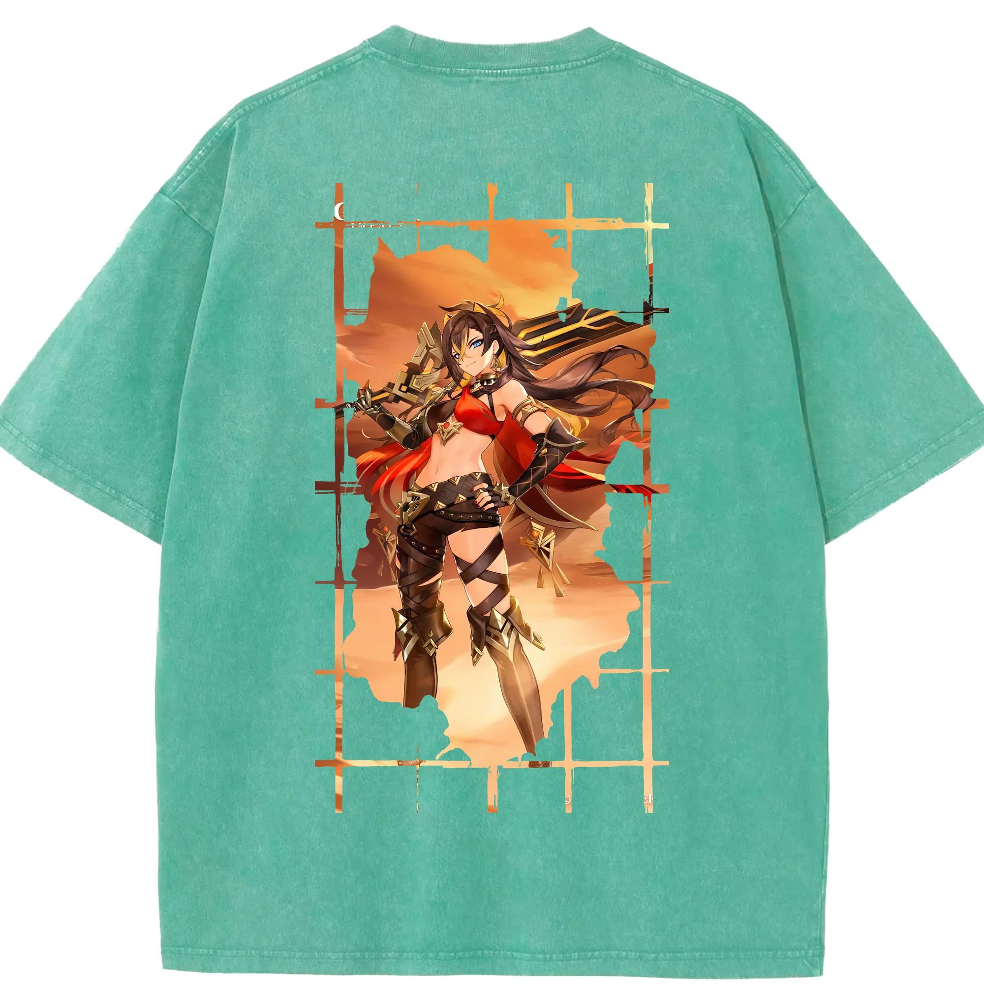原 神 グッズ ディシア - 綿100% ヴィンテージ風 半袖Tシャツ ・ フロントプリント ・ 柔らか肌触り ・ 通気性 快適 ・ スポーツ カジュアル 外出用