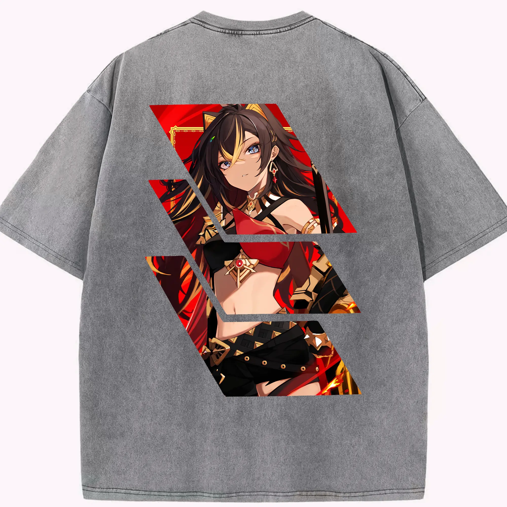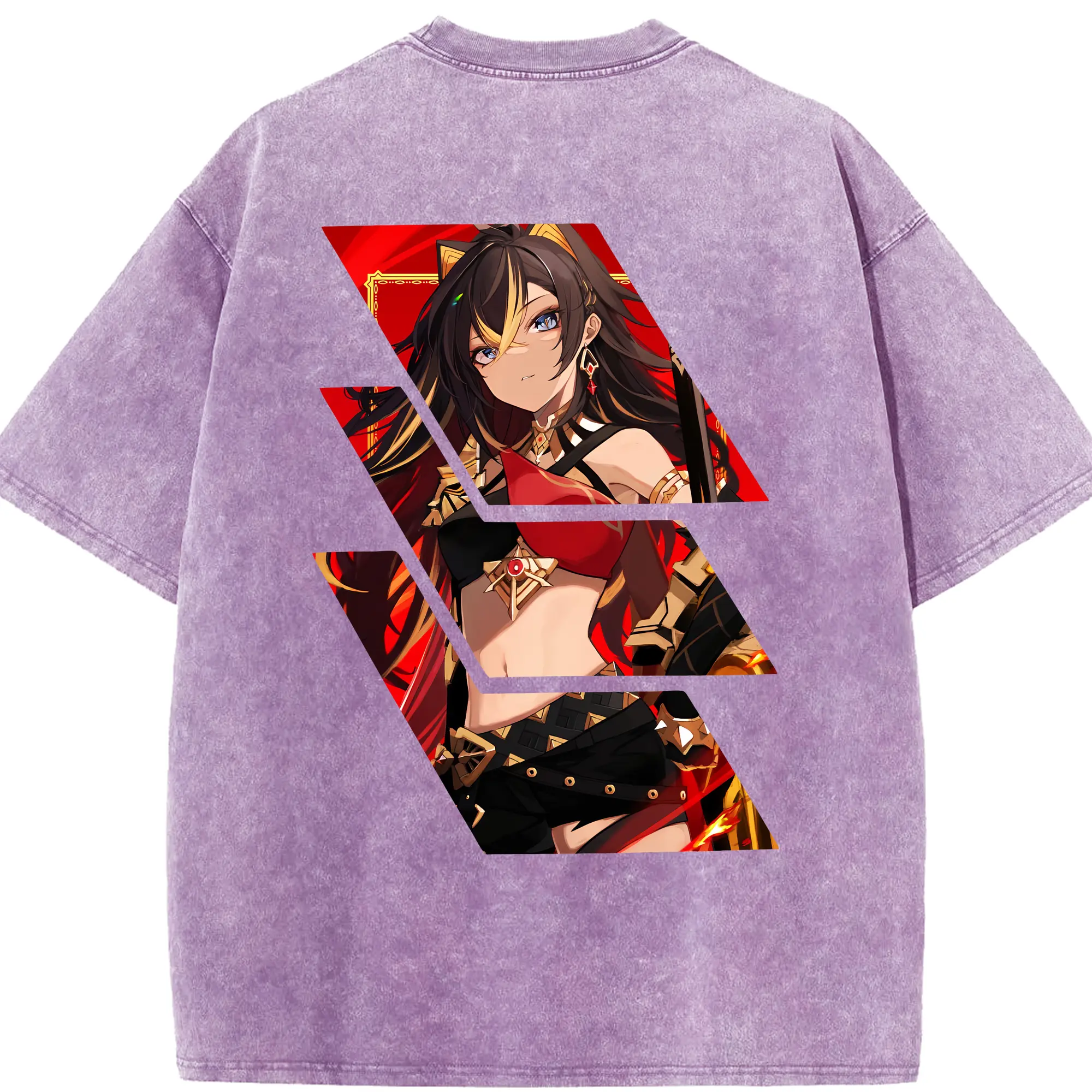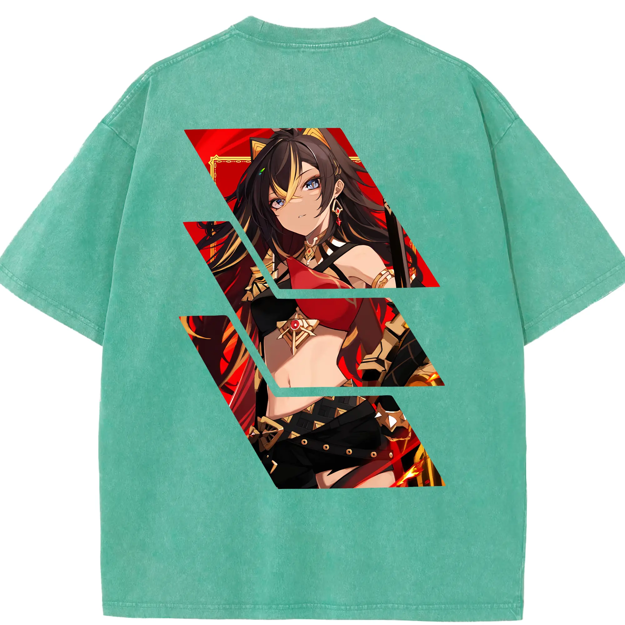 原 神 グッズ ディシア - 綿100% ヴィンテージ風 半袖Tシャツ ・ フロントプリント ・ 柔らか肌触り ・ 通気性 快適 ・ スポーツ カジュアル 外出用